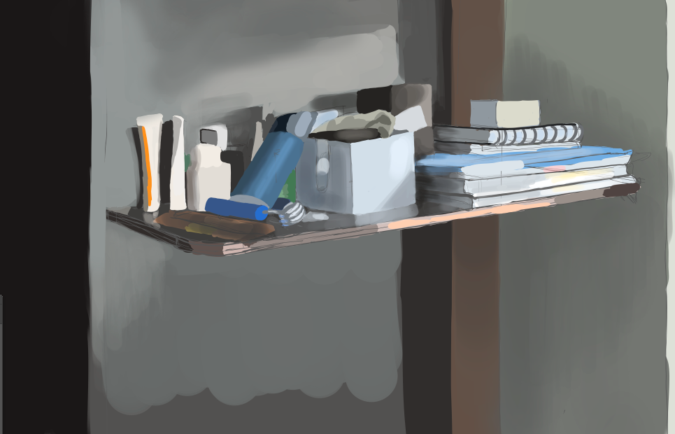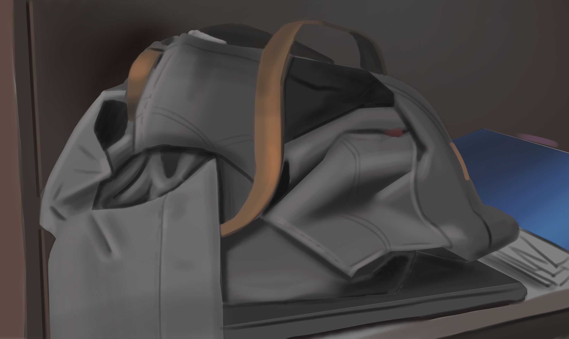 Сегодня поздно вернулся, успел не очень много. Завтра дорисую - это мои джинсы на полке.