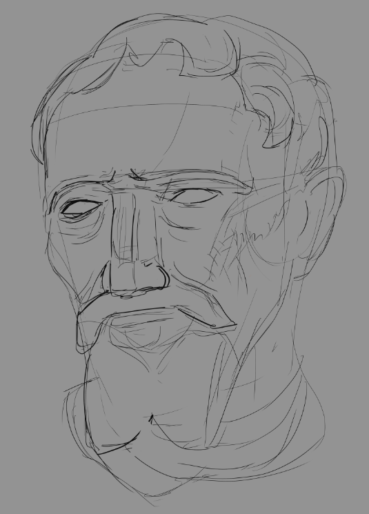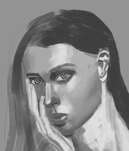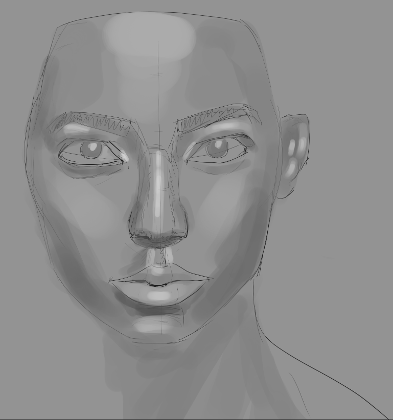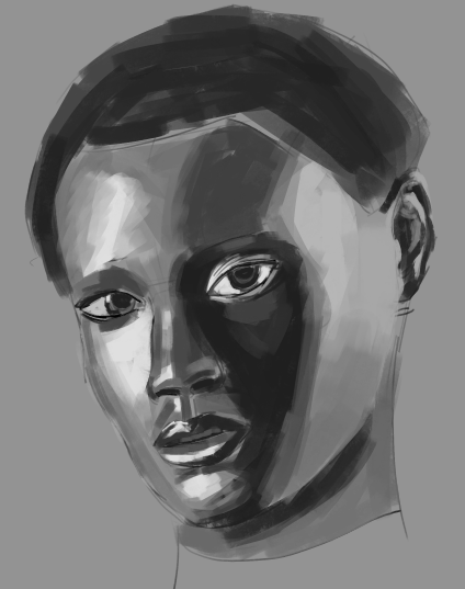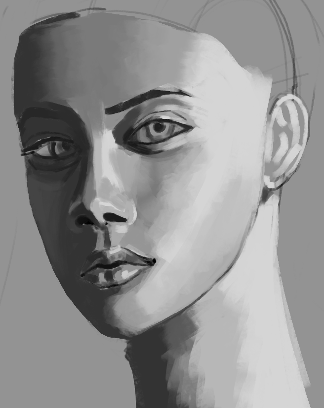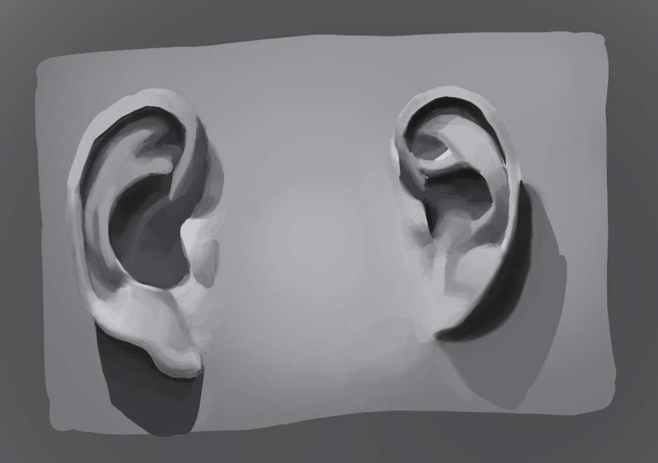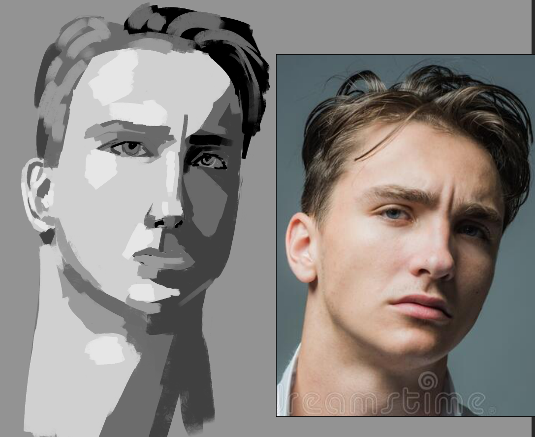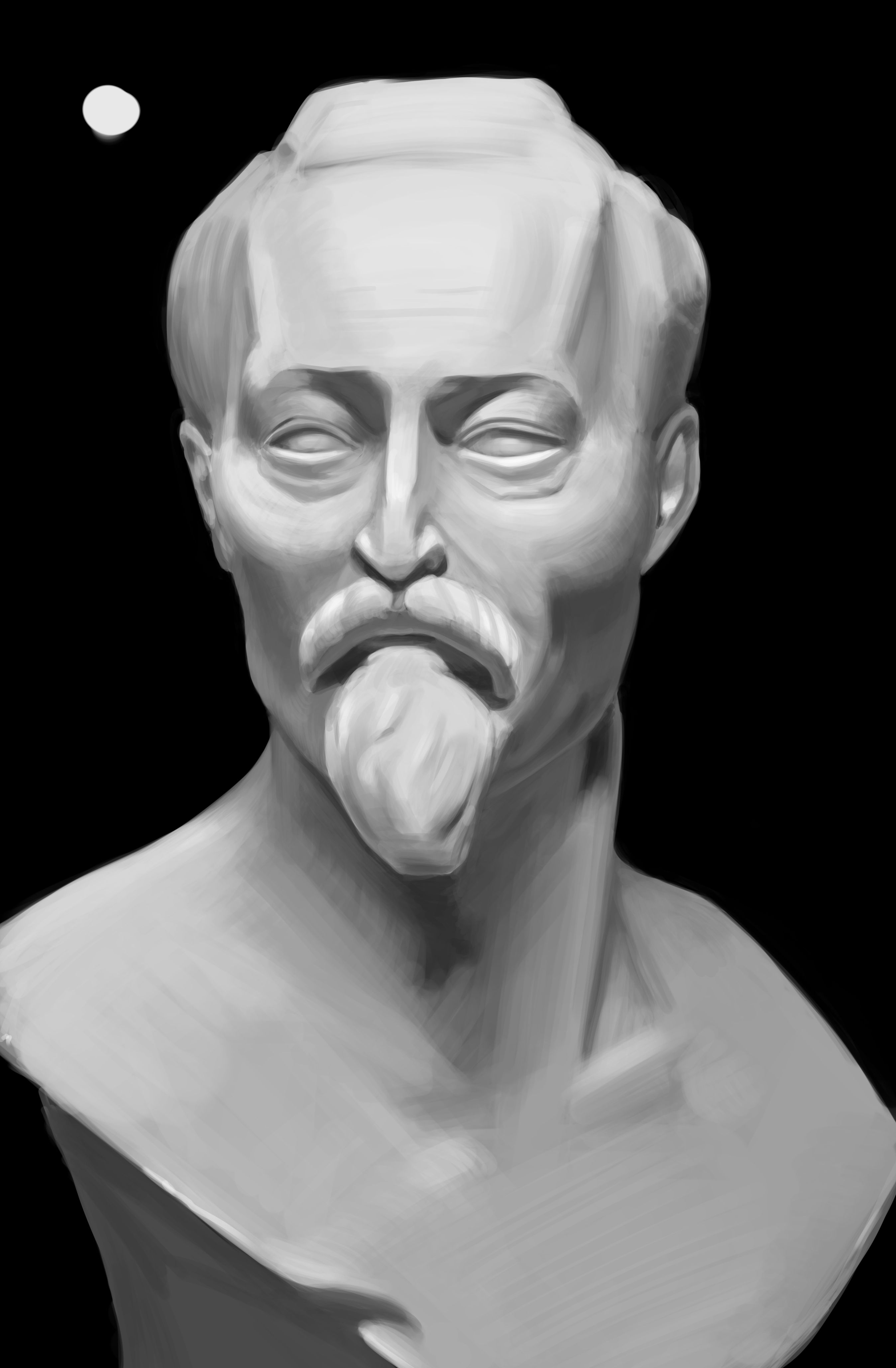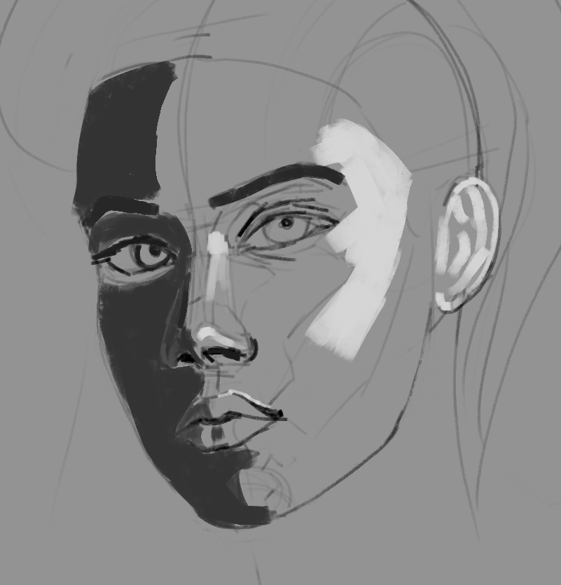 Предыдущий анон прав, я по треду прошелся и ты хватаешься за всё, лишь бы не за основы. Пол года прошло, а ты так и не научился разбивать на плоскости, в основном, потому что пропустил рисование кубов. Голова, она как куб, у неё будет светлая и темная сторона. Найди нормальных референсов гипсов и начни с них, раз уж кисти усвоил немного. Один источник света и белые фигуры, а как заучишь как тень падает на примитивы, поймешь какие тона будут темнее, а какие светлее.