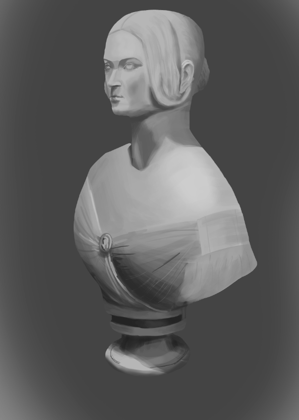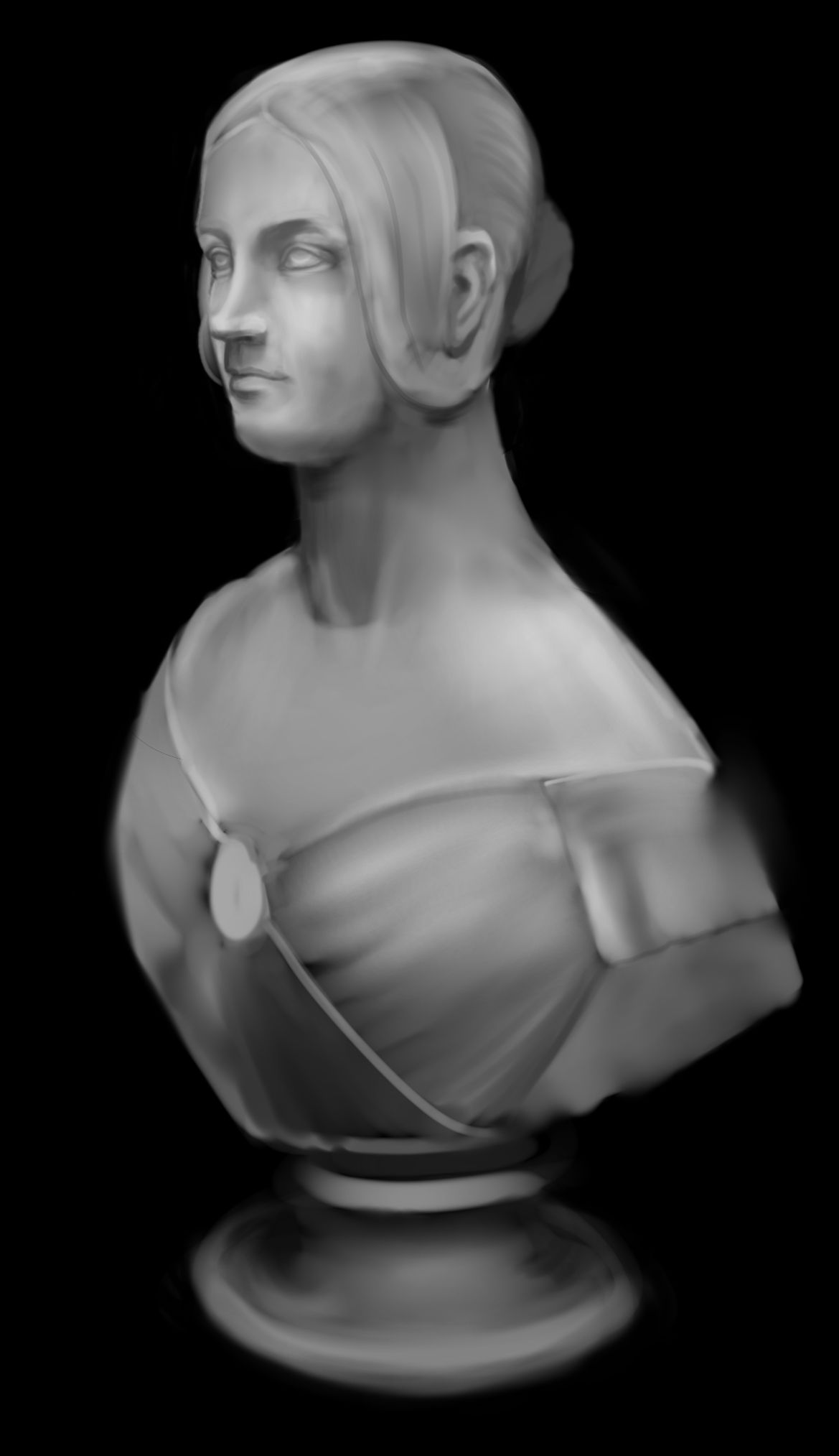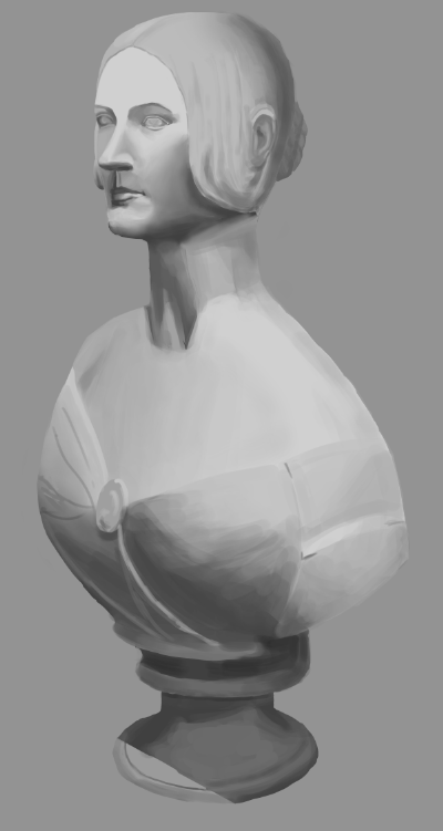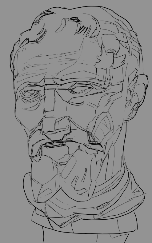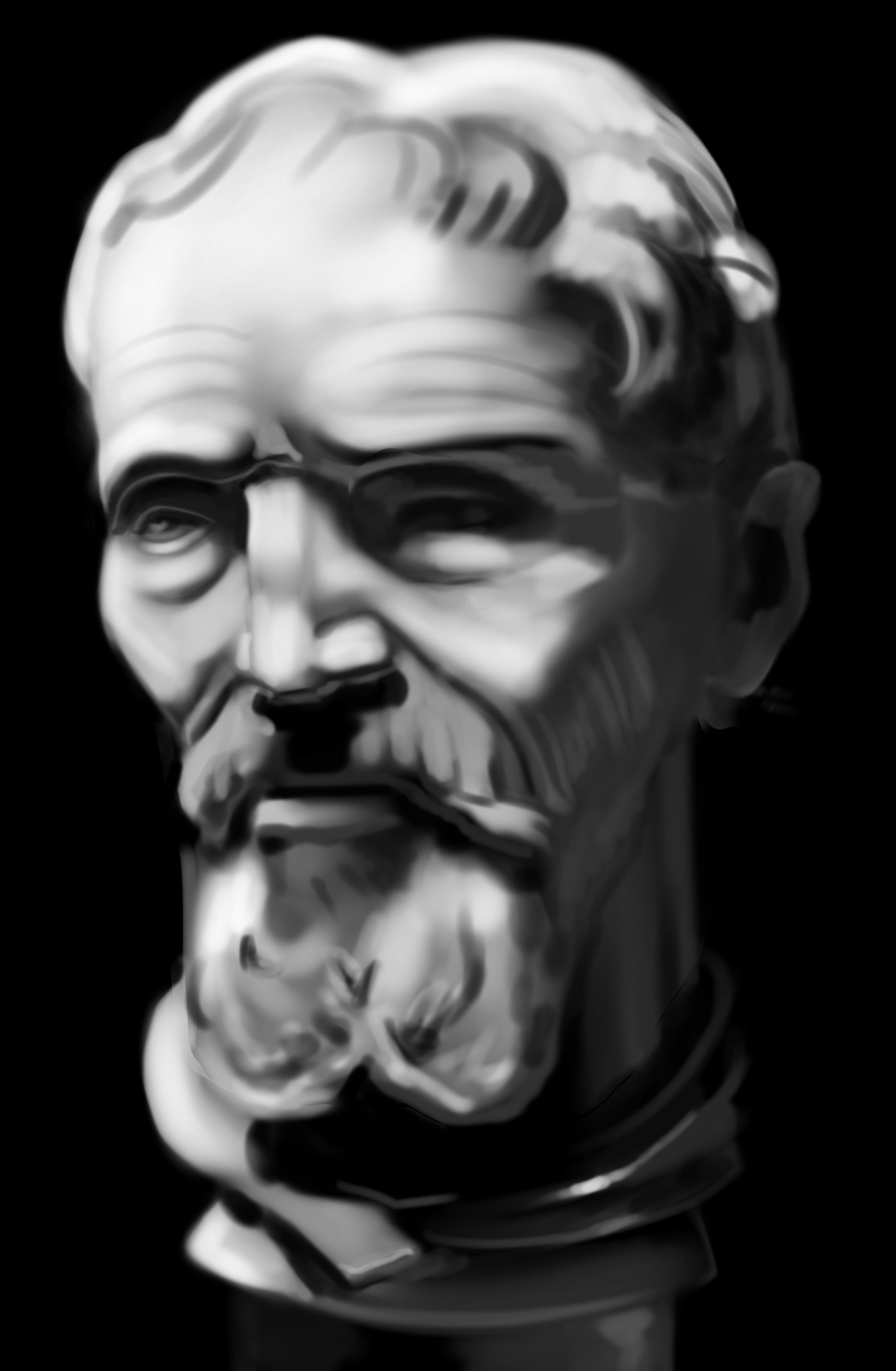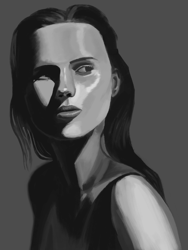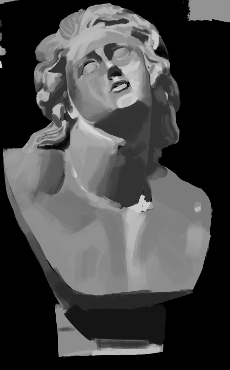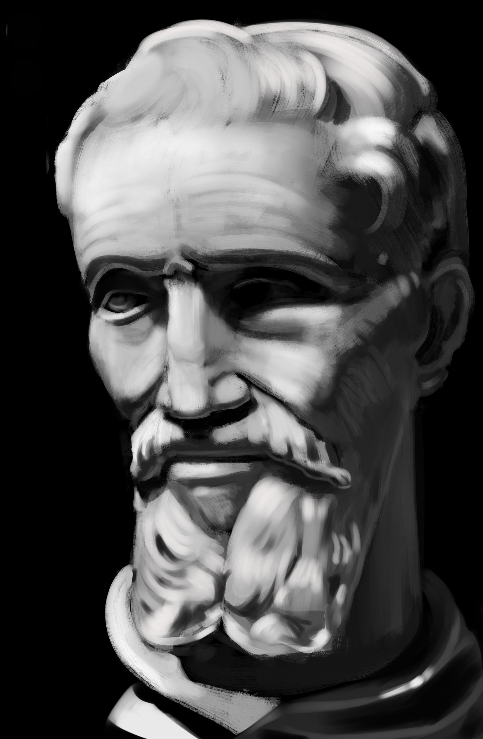 Предыдущий анон прав, я по треду прошелся и ты хватаешься за всё, лишь бы не за основы. Пол года прошло, а ты так и не научился разбивать на плоскости, в основном, потому что пропустил рисование кубов. Голова, она как куб, у неё будет светлая и темная сторона. Найди нормальных референсов гипсов и начни с них, раз уж кисти усвоил немного. Один источник света и белые фигуры, а как заучишь как тень падает на примитивы, поймешь какие тона будут темнее, а какие светлее.