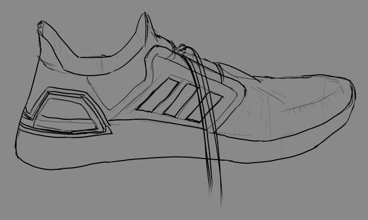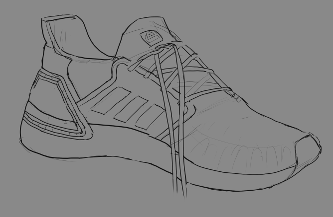 По-моему он немного неправильно повернут, но может это у тебя кроссовок такой просто. Ты нарисовал его в изометрии, попробуй спереди его нарисовать, сверху-сбоку и т.д. Рисуя в изометрии, ты мало чему научишься.