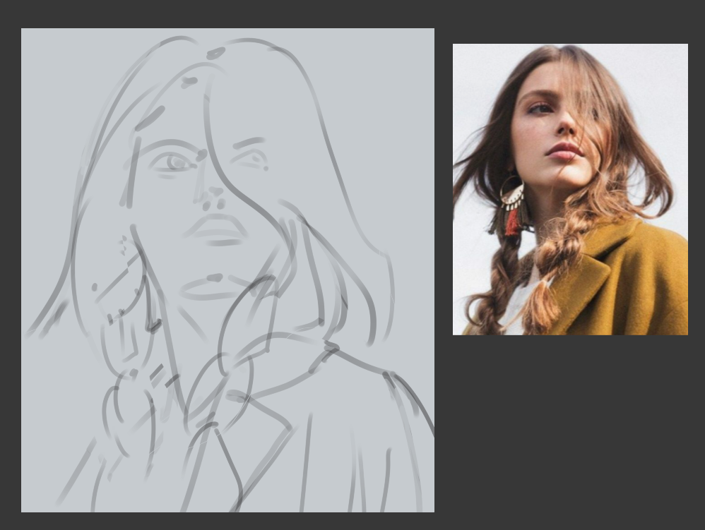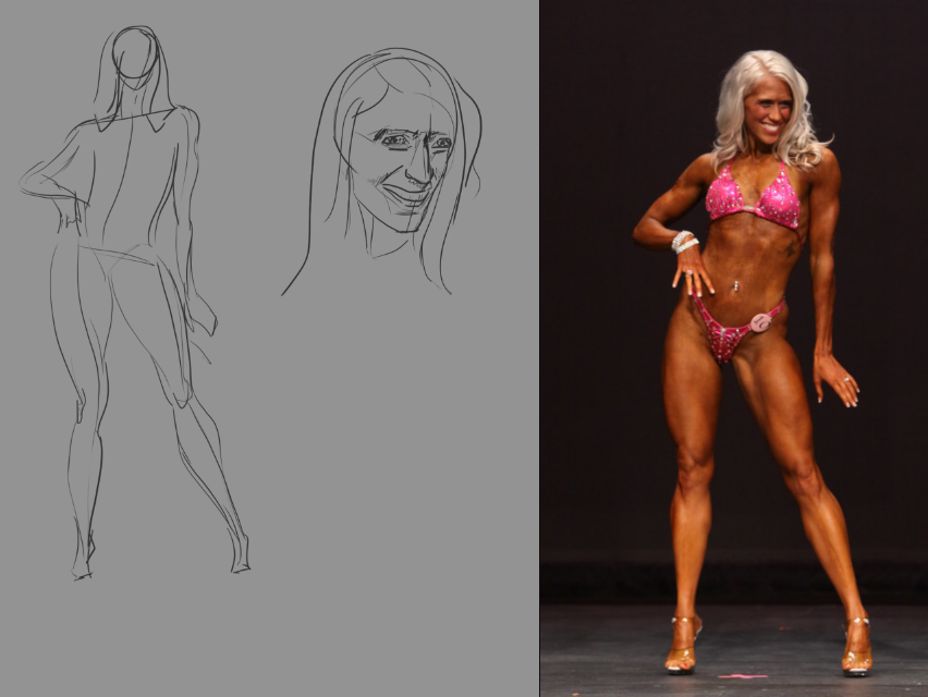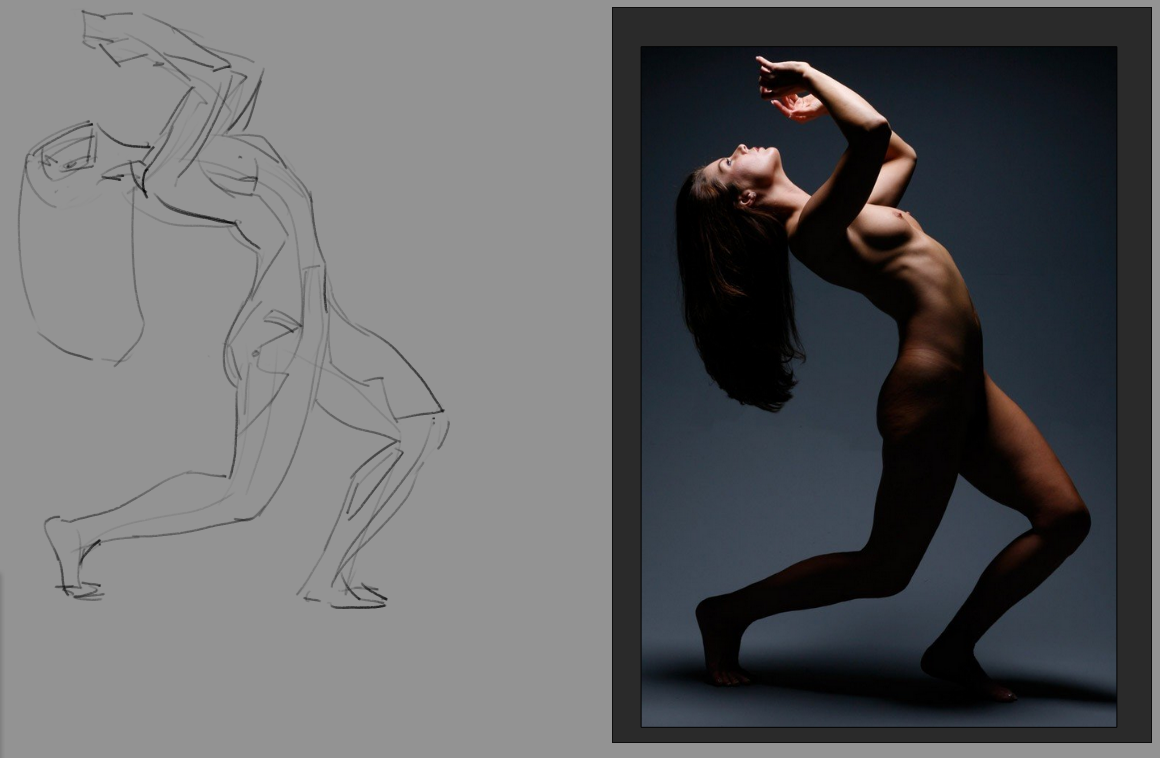 Сделал фигурный набросок и попробовал нарисовать тянку еще раз.