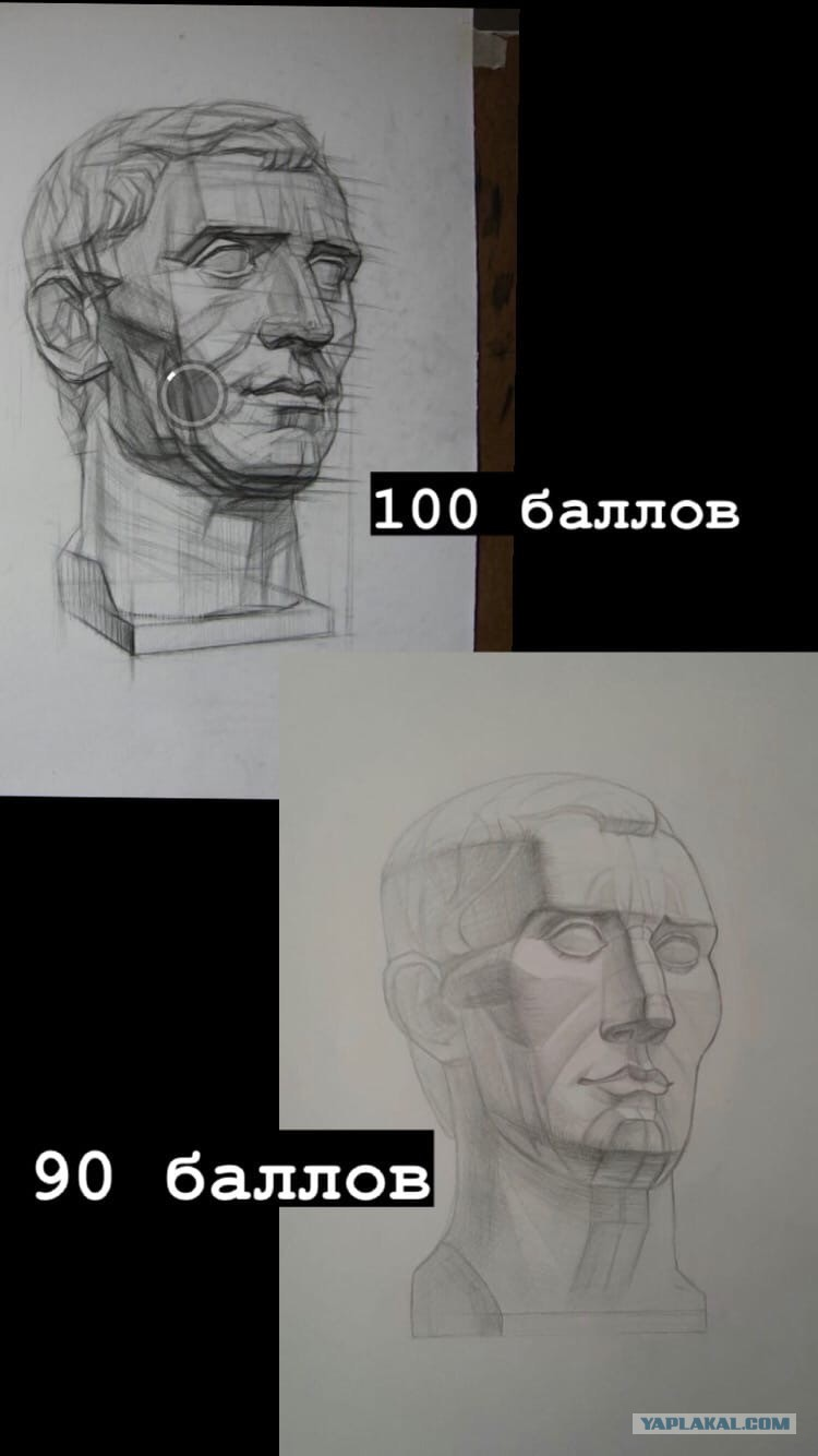 Всё гораздо проще, учиться на худ идут отбитые дегенераты и адепты нуботреда, в итоге кого-то приходится набирать из криворучек, представь что у тебя весь курс это работы как на 90 и хуже, и полтора человека как на 100. И как ты будешь это говно оценивать? Ты же не поставишь всем остальным низкий балл, вот и приходится изъёбываться