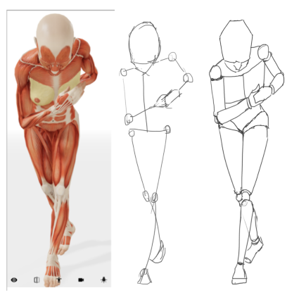 >>840177 Правое плечо находится позади ключиц, а не спереди. Торс четко наклонен назад чтобы сбалансировать оттянутую назад ногу. Ступни на твоем пике просто висят в пространстве, лично я себе рисую плоскость пола чтобы их проще было рисовать.