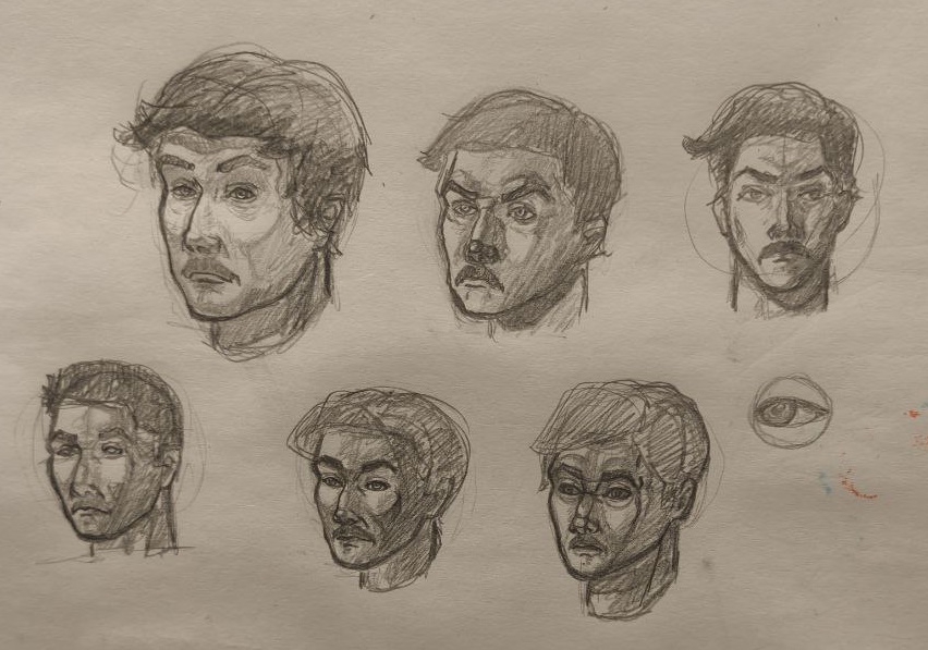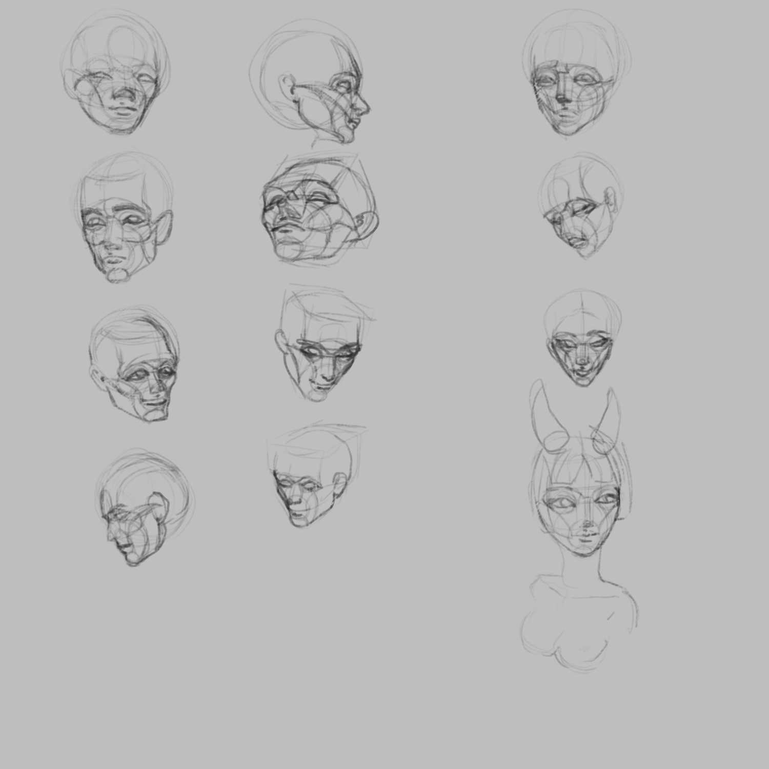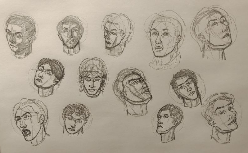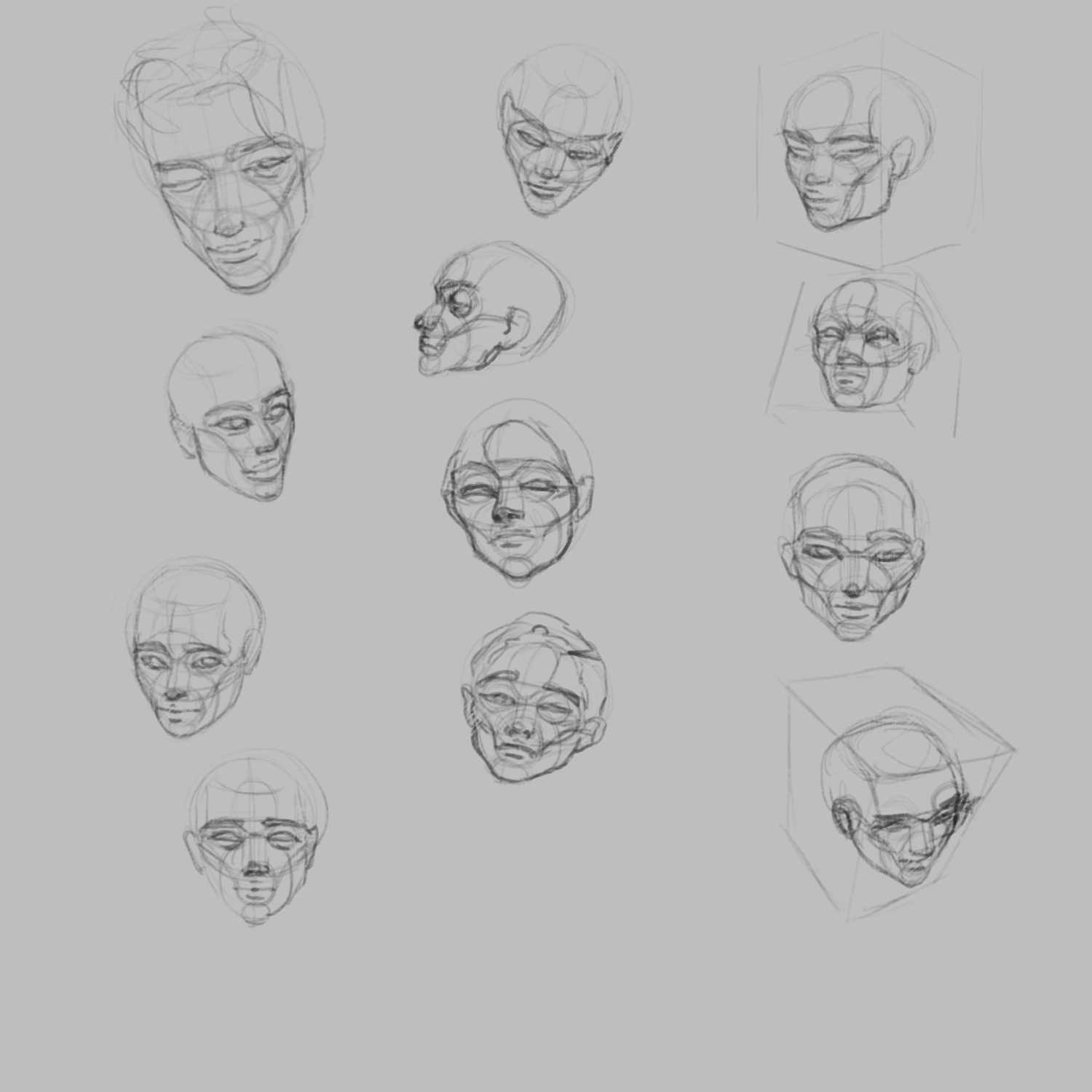 Кучка летающих усатых голов. Первая с Джоэла с кадра. Чувствую, куда-то меня уносит в пропорциях, не пойму куда. Нижнюю часть лица что-ли слишком наружу выношу. Окей фейс какой-то выходит постоянно, как бы от него избавиться.