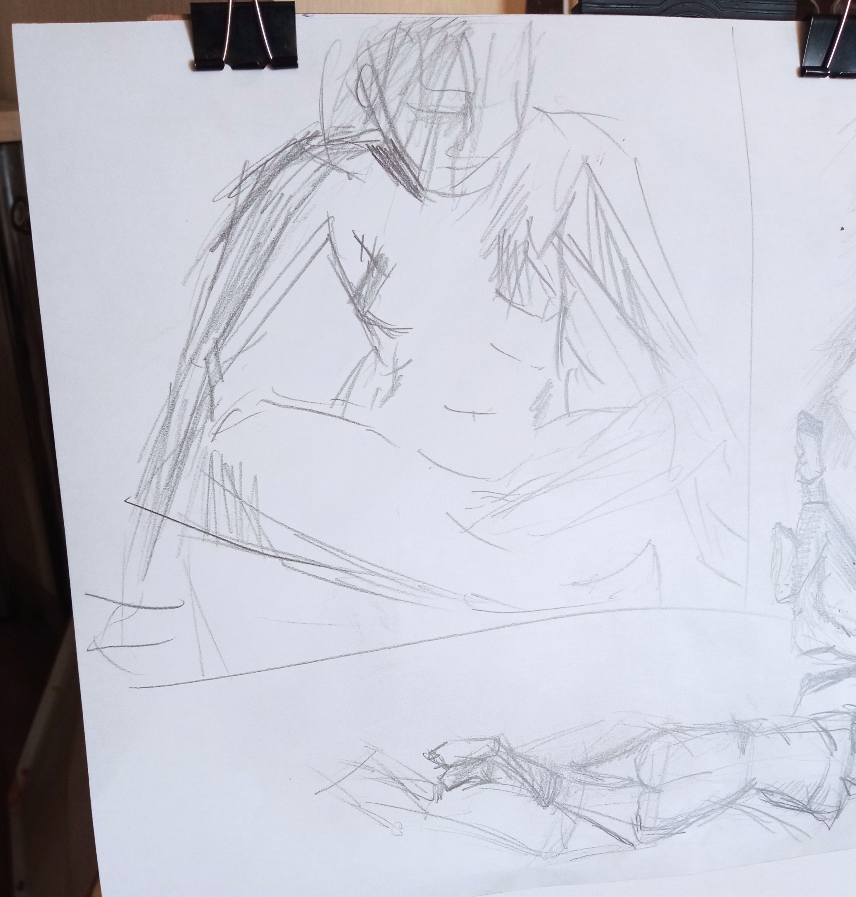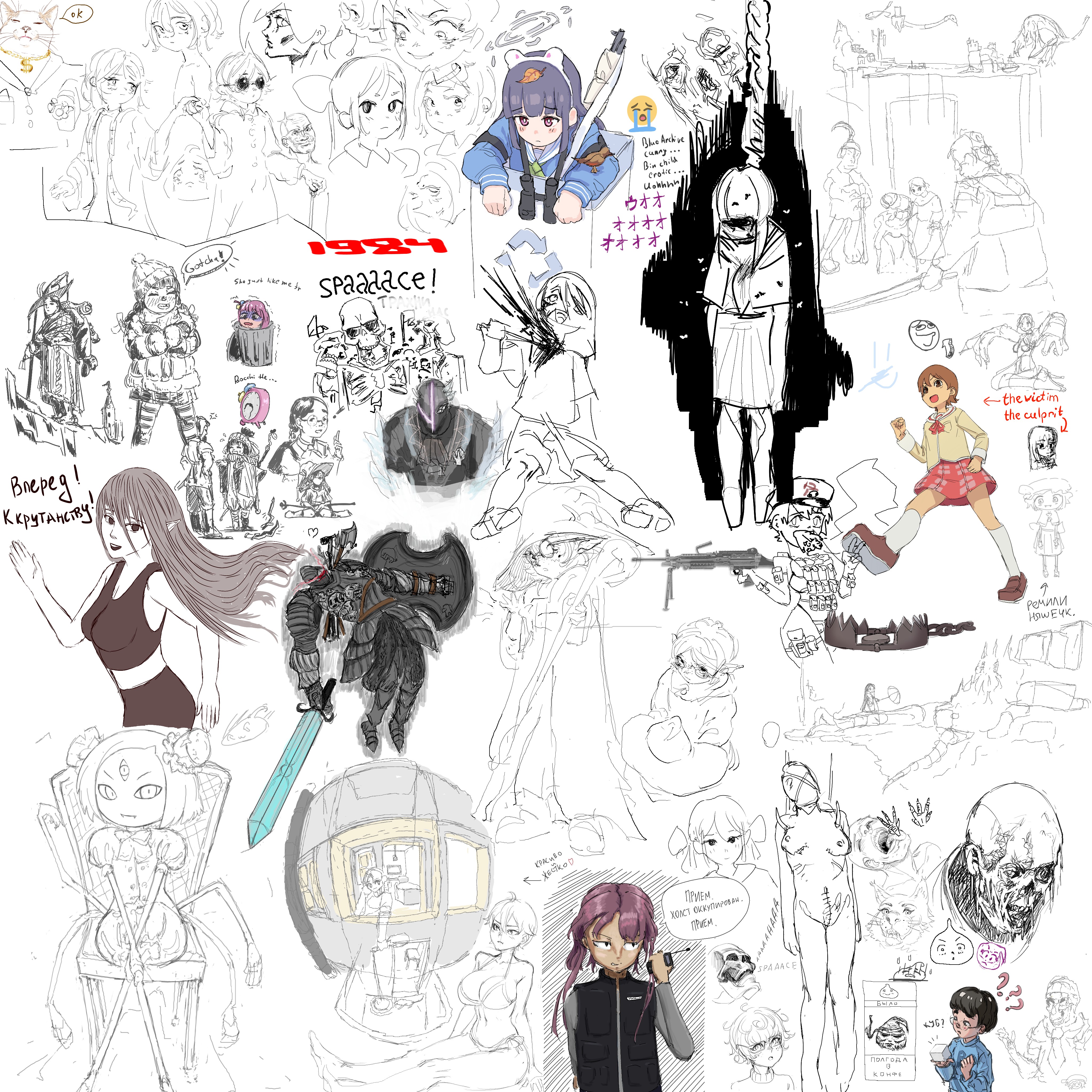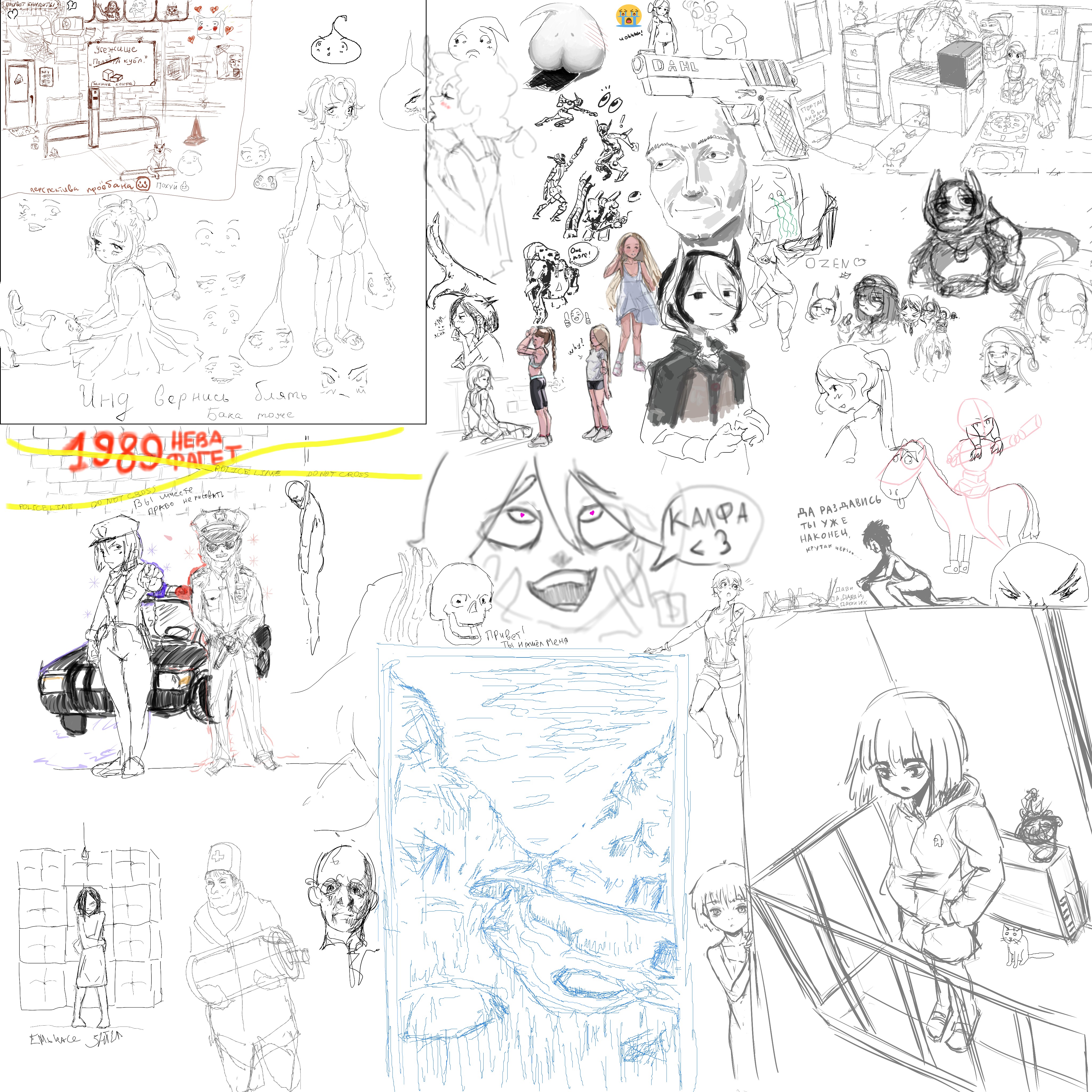 >>840131 Все наброски с живой натуры. Рисую на А3 200гр листах с обеих сторон все рисунки в кучу. Потом в ФШ порезал. Бумага стоит дешево если покупать в рисовальных магазинах большими листами и потом резать на форматы. Там рублей 50 стоимость А1 листа, и соответственно 14р за А3. Рисование в традишке отлично ставит руку. Вообще считаю что любому вкатуну нужно хватать А2 или А3 и идти ебашить натюрморты пол года.