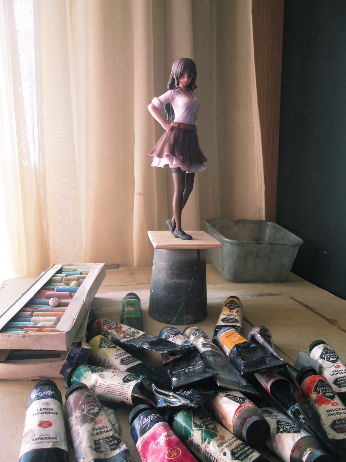 Закатываешь всё в один тон без выебонов с тенями и высветлениями. Там два-три прохода акрилом хватит. Берёшь коробку с обычной сухой пастелью, крошишь нужный тебе цвет в пыль(я тупо на шкурке натираю), и этой пылью накладываешь тени супермягкой кистью, прямо как макияж бабы на еблет накатывают. Пастель охуенно легко размазывается в мягкие переходы, если наборщил то тупо вытирается без следов. Когда доволен результатом просто матовым лаком из баллончика аккуратно издалека облучатель чтобы пастель приклеилась намертво. Самый примитивный способ добавить теней и оживить фигурку, любой другой это пропорционально больше ебли. Японцы так же сами пастелью красят, только вместо акрила лаком для ногтей заливают тому шо необучаемые долбоёбы застрявшие в развитии на 50 лет, не знаю что есть краски получше.