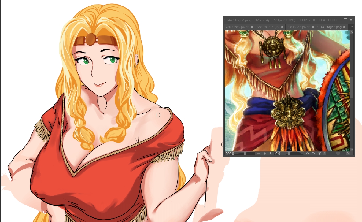 >>851147 >>851150 Так, пока не занят, сам обсосу свою работу. Из плюсов: -наконец то кое-как настроил кисти с закосом под традишку --тупо скачал палитру от производителя красок и скопипастил все цвета, чтобы работать в безопасной зоне (см.вкладку), но все равно корректирую насыщенность во встроенном редакторе на последних шагах ---все перечисленное позволило полностью сконцентрироваться на рисовании, из за чего на один рисунок уходит один день вместо трех ранее ----имитация традишки выгодно отличается от голой цифры насыщенностью информации форм, линий, цвета