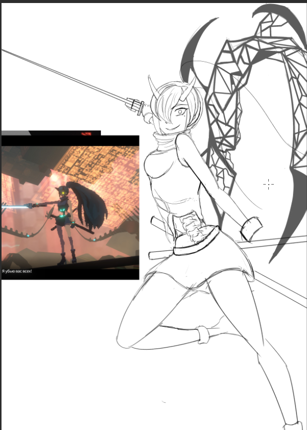 Из минусов: -гребанный мозг, гребанное сознание, на вопрос, что нарисовать, продолжает выдавать женское тело разной степени обнаженности, в результате нет никакого импакта, какой к черту импакт от ростовой фигуры с дежурной улыбкой и взглядом на зрителя? Короче, надо вникать в идею и динамичные ракурсы, аминь.