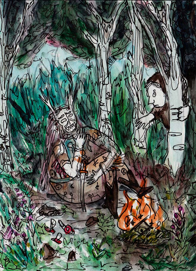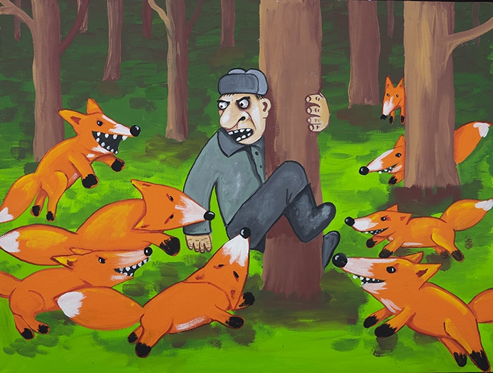 Работа делалась буквально по часовой стрелке, ближе к большому дереву уже проще было с краской работать и мазки чуть более уверенные стали.