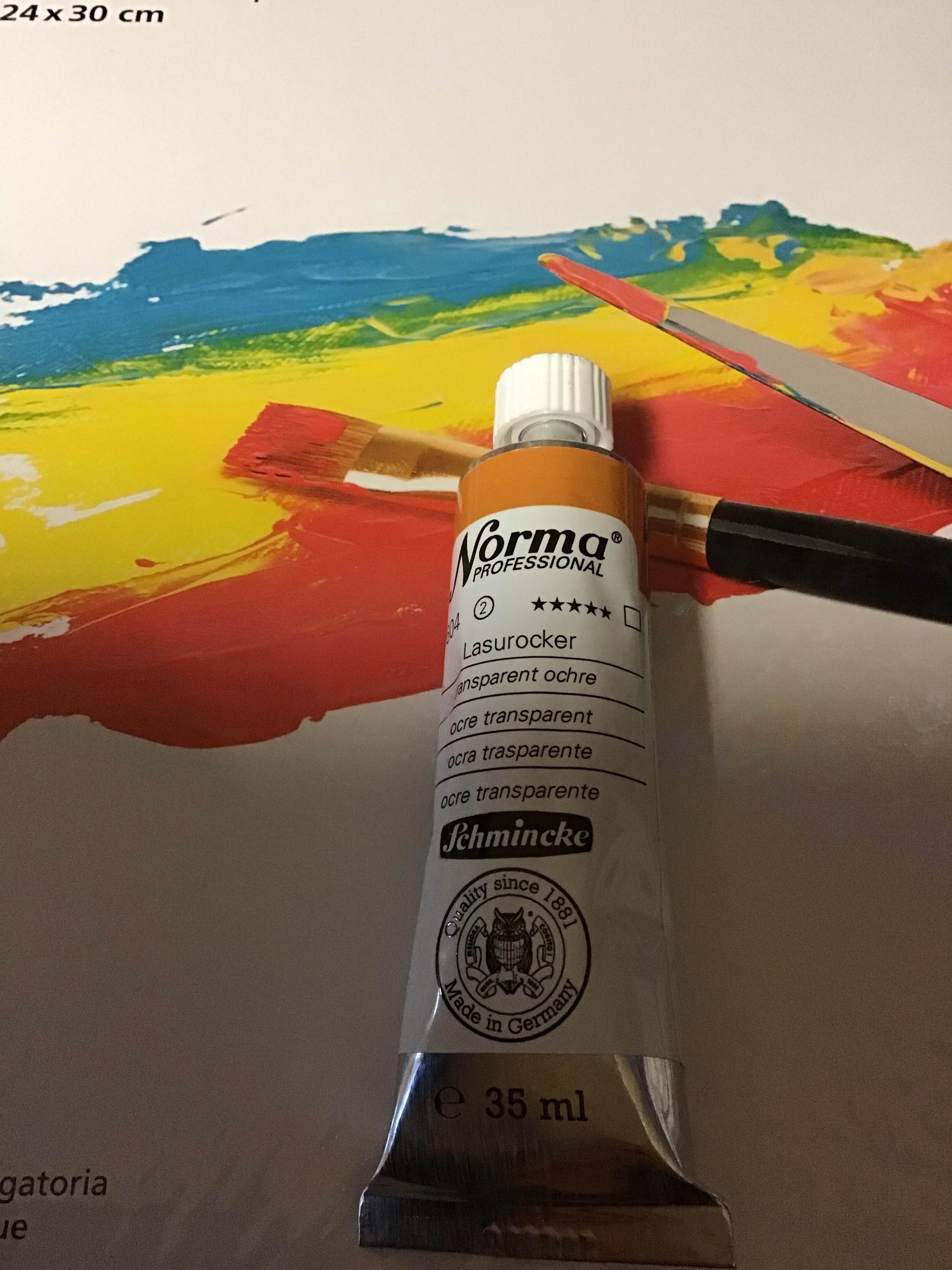 >>843421 Пздц, нашел на озоне все таки твой PY 35, пиздец охуел от цены, тюбик 46 мл стоит около косаря. В общем как погода наладится получше, попробую вылезти в пару магазинчиков для художников, и там чекнуть. Либо же на похуе купить тот полупрозрачный, ибо один хуй чисто им я рисовать не буду, он будет всегда участвовать в замесах, а другие краски у меня все укрывистые. Да и впринципе под лессировки полупрозрачный пригодится. Пока собрал другие цвета. По советам ютубных художников, не стал брать говноьтипа Гаммы, и всякие Сонеты.