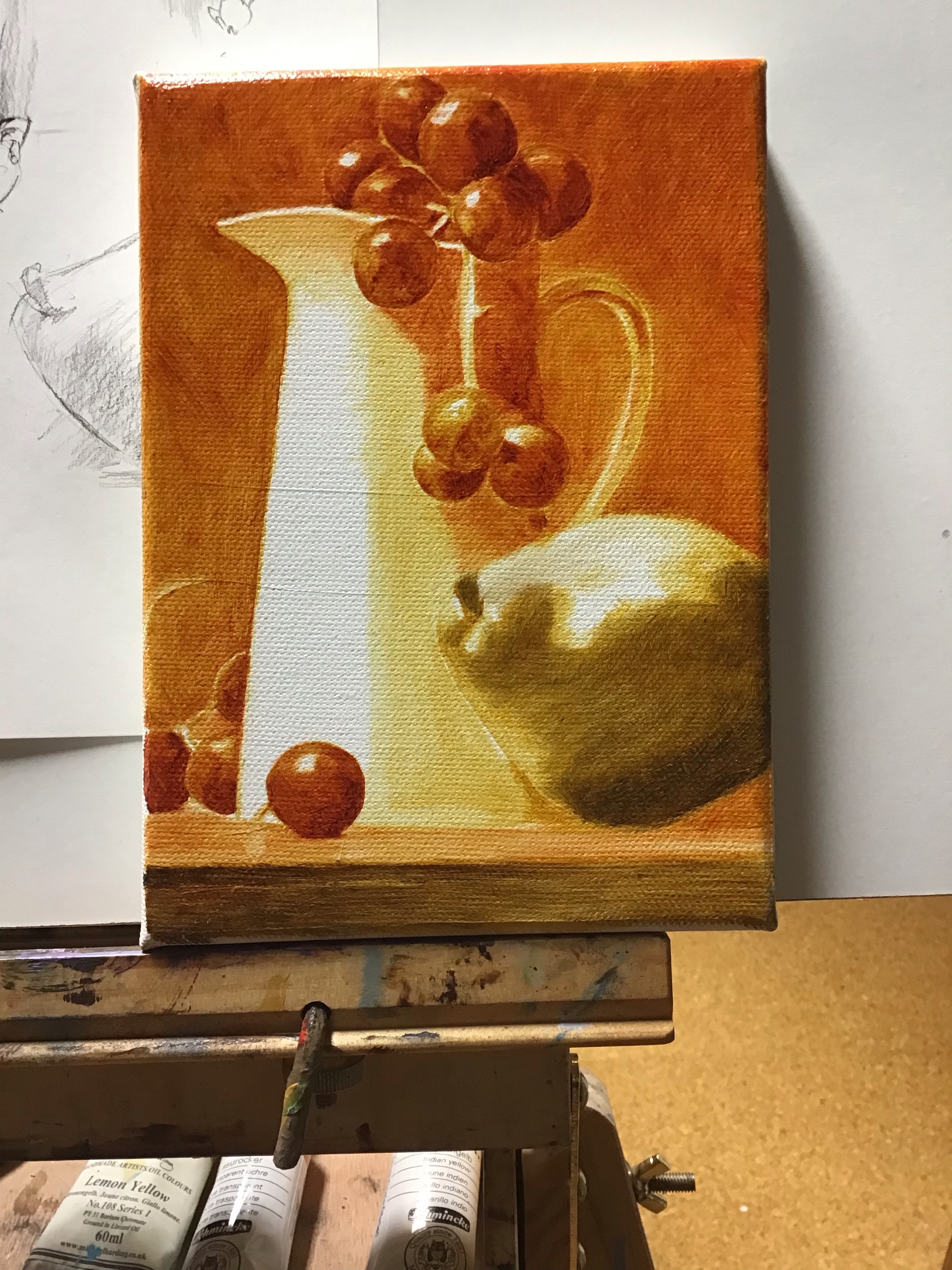 Давно уже бродила идея на обычном масле попробовать. До сих пор я им только палитру отмывал, но пока есть типа специализированный запас, буду его расходовать.