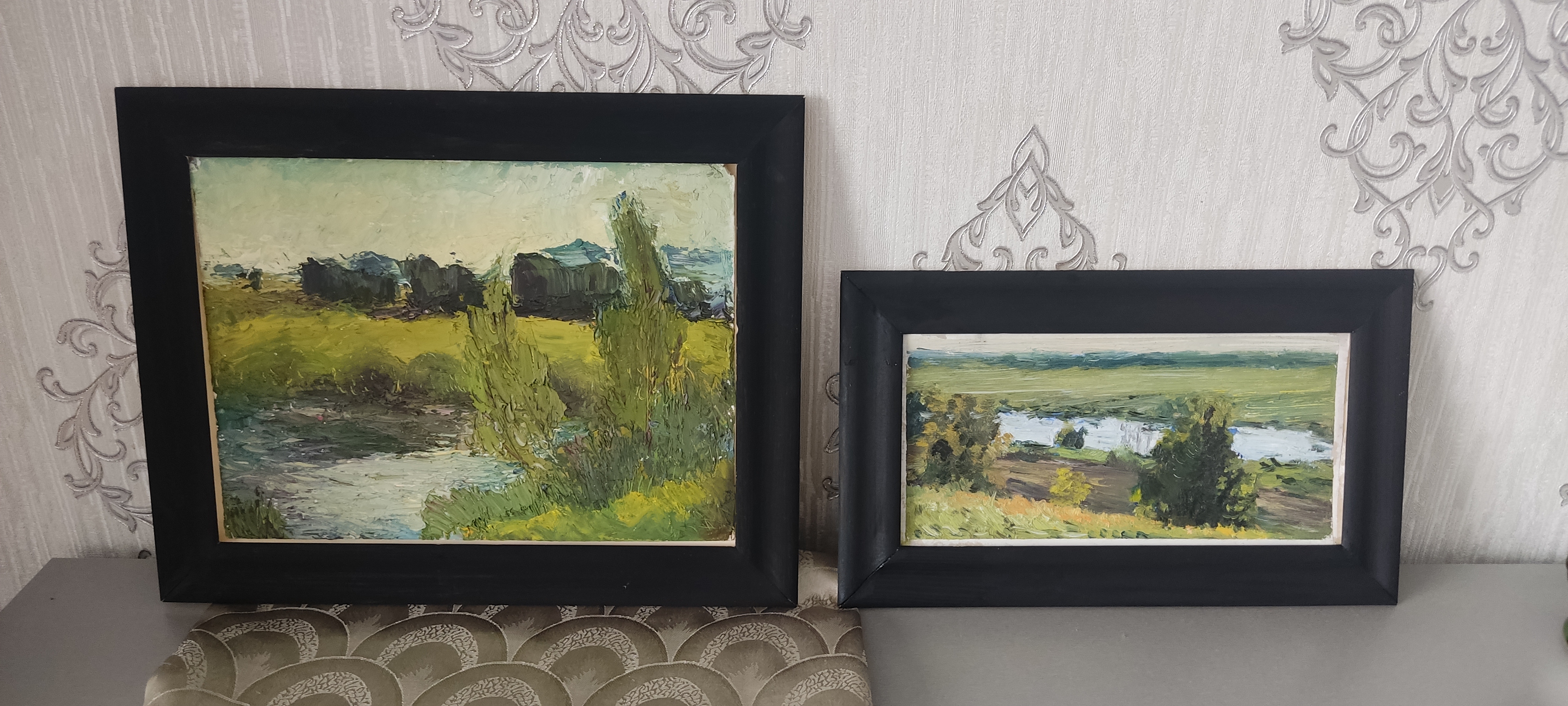 Буквально два первые холста которые я не бросил и довел до финала. Кроме них нестыдного показать нечего. Впервые взял в руки кисть около 2.5 лет назад. Холст, масло.