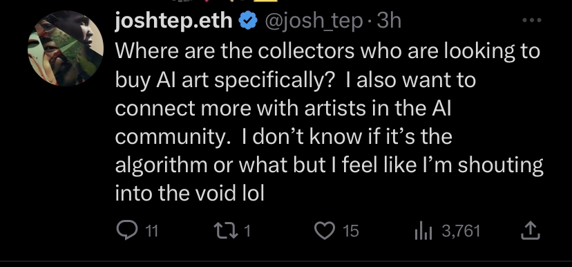 мы должны ответить человечеству "о чем 21 век" и если это война с ии - да будет так! если грусть и тоска по теплому и родному, а холодные технологие не способны нам дать этого тепла - да будет так! если способ общаться с друг другом, попытка понравиться девочке, нарисовать мем другу, показать какой ты красавчик и что умеешь, возвращение к живому общению - да будет так!