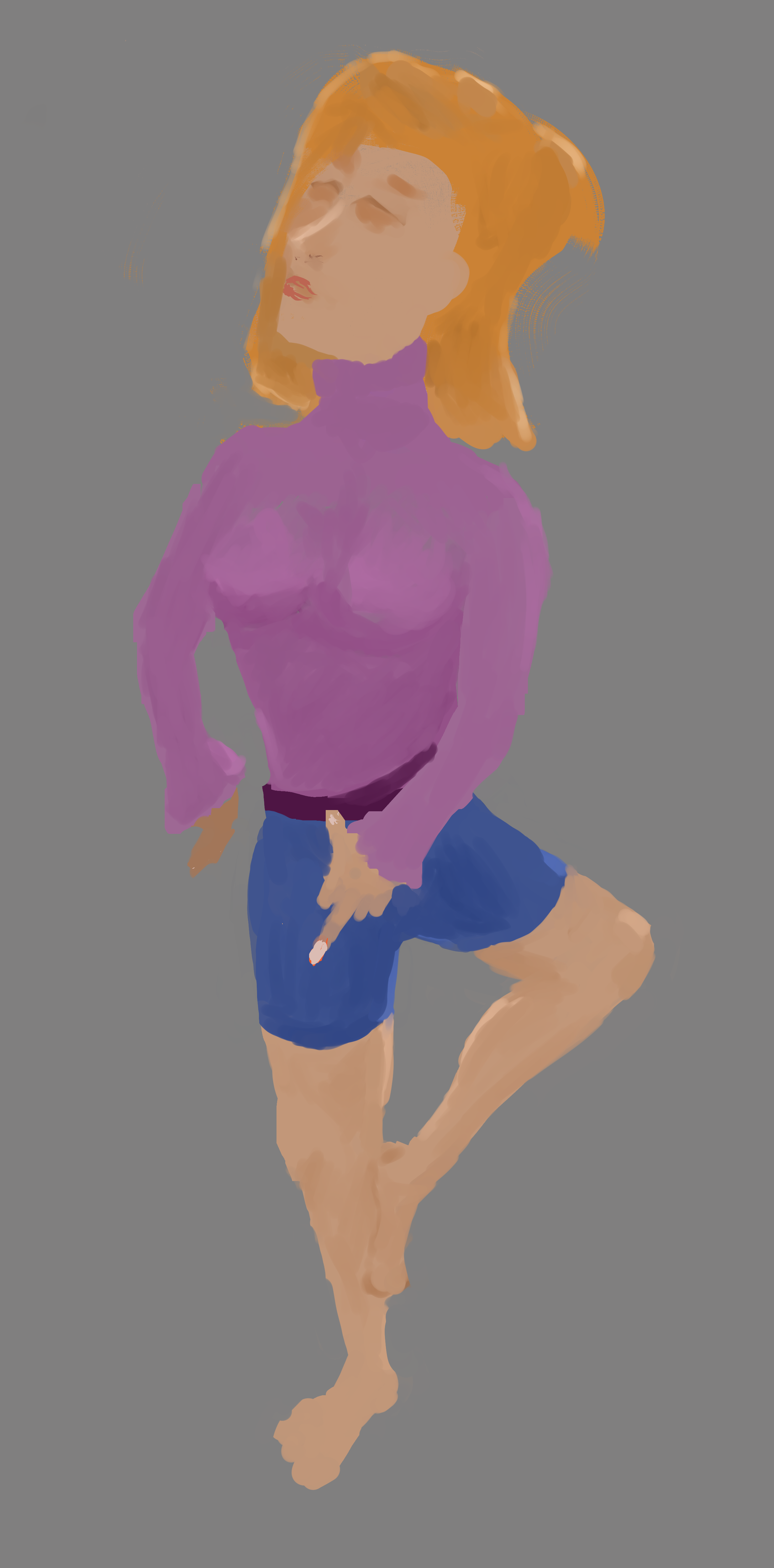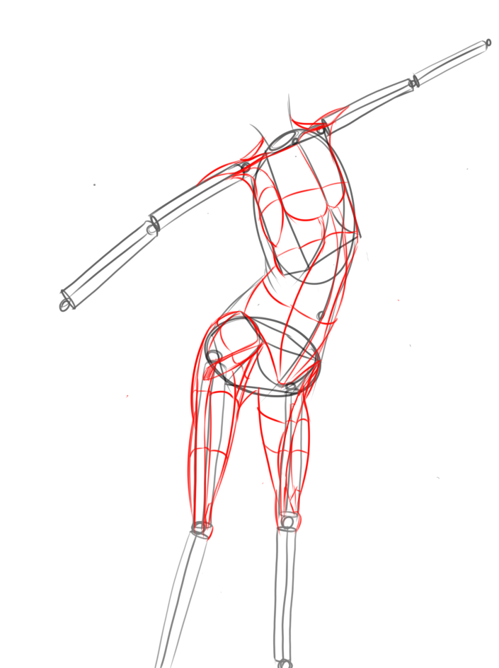 >>852333 Расстояние от таза до грудины слишком вытянуто, смотрится неестественно. Сдвинь их ближе. И да рисуй кисти стопы и голову.