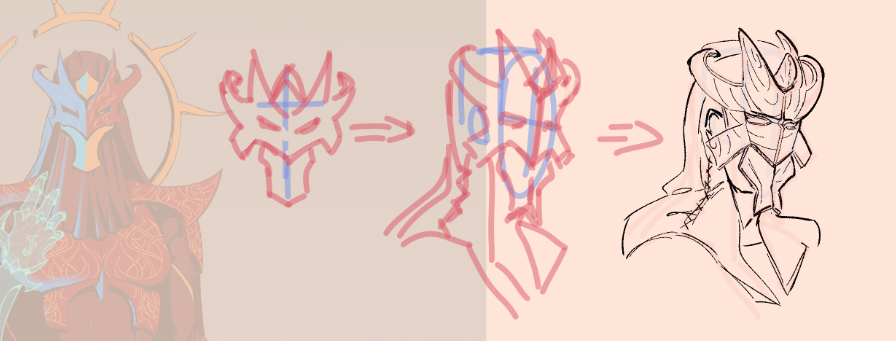 >>853098 -- первое ощущение хорошее, четко считывается силуэт видно что это пафосный мужик в красном; -- ощущение после клика на картинку, что картинка недоделанная, оче слабый рендер в первую очередь форм; -- есть игра контрастом красного с синим, но это само по себе на лекцию тянет, начну с того что насыщенность основного цвета всегда должна быть меньше чем у акцента иначе зритель не сможет этот акцент увидеть, продолжу тем что свет от руки должен быть такого же цвета как рука, разве что бледнее, + цвет ткани, а у тебя вообще синий вместо голубого, закончу тем что свет должен распространятся вокруг вдоль руки, а не просто прилипать к одной только маске, если он должен прилипать то это уже не свет, а туман или слизь какая и это надо показать; -- дяди из индустрии выедут тебе мозги ложкой, потому что персонаж не пират/не эльф/не орк/не киборг-убийца-из-киберпука и так далее, чтобы твой образ воспринимали он должен включать в себя что-то уже известное публике, у тебя очевидно какой-то злой дядя, ибо он весь острый, значит он должен со всеми как-то драться, значит у него должно быть оружие, которое сразу видно: а) если это меч, то он должен быть четко виден прямо торчать из силуэта, рука сразу лежит на нем или держит его, все увешано ремнями для ножен, сами ножны очевидно торчат, все это поясняет что он мечник и одевается чтобы махать мечом; б) если это волшебство, то рука должна не просто торчать, а она должна удерживать какую-нибудь очевидно опасную штуку, например свет дает не просто рука, а призрачные шары которые он катает в ладони перед тем как метнуть, соответственно и шмотки меняются чтобы показать как он всякими склянками свитками заклинаниями отбивается от врага прежде чем опасным жахнуть.