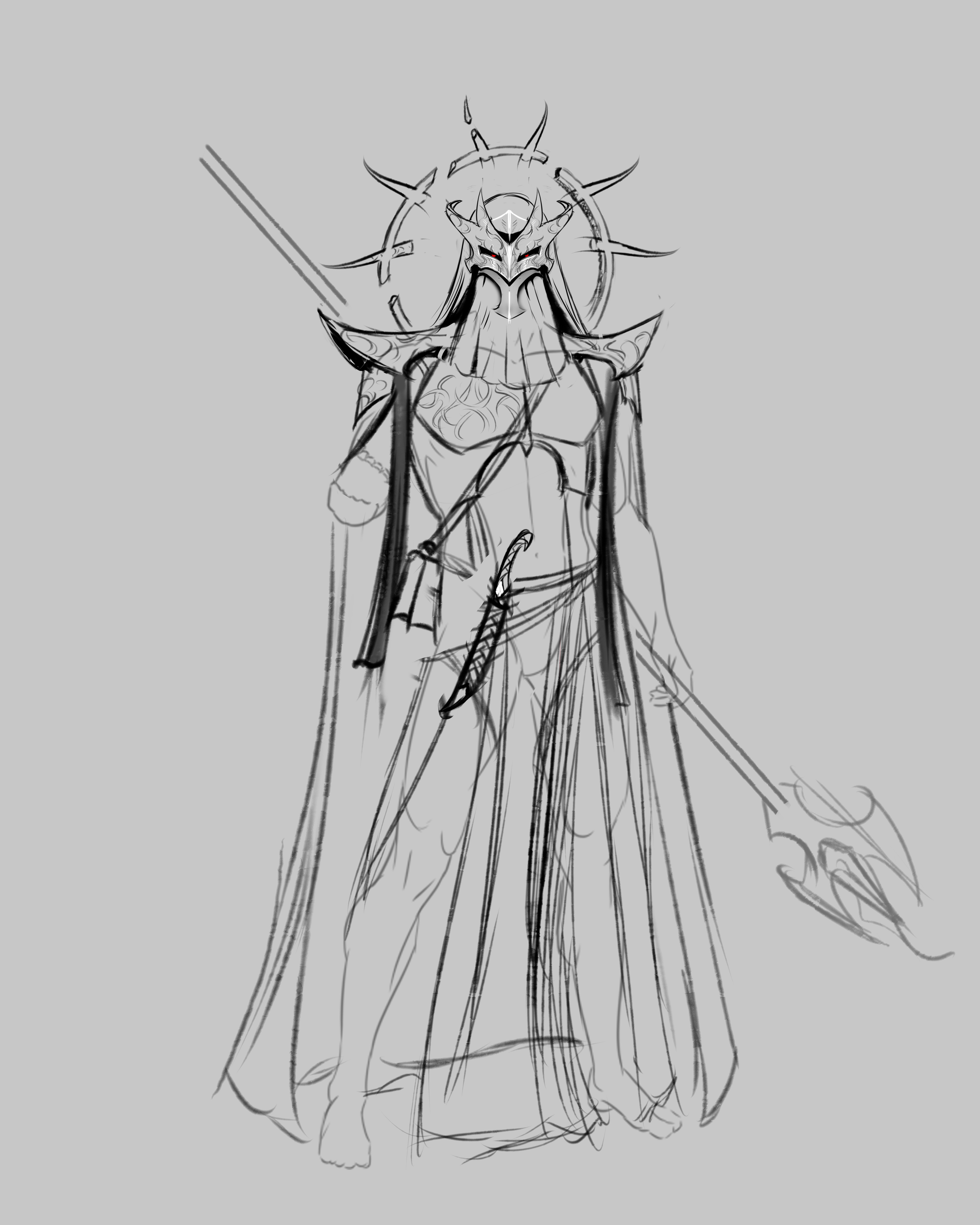 >>853165 Расписал так расписал, спасибо. В общем-то всё так как ты и сказал :( > у тебя очевидно какой-то злой дядя, ибо он весь острый, значит он должен со всеми как-то драться, значит у него должно быть оружие Вообще, изначально у него должен был быть массивный посох в другой руке. Но в процессе лайна до меня вдруг дошло, что из-за плаща он не сможет его так держать, лол. Нужно было либо плащ убирать либо посох. Пробнул потом ему еще какой-нибудь скипетр приделать, но выходило криво-косо. Всё проебал кароче. Но я понял о чем ты.