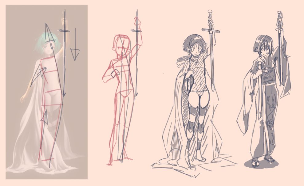 Такое случается когда у тебя задумки не было, а было просто желание быстро-быстро набросать что-то и в продакшен сразу метнуть, увы некоторые вещи не получатся без хотя бы минимальной задумки и продумывания в процессе рисования. Вот рисуешь ты позу и сразу думаешь, он вскинул руку, он хочет испугать или наоборот понтанутся, значит он стоит скрывая или наоборот показывая руку и ты сразу всю позу выстраиваешь так чтобы передать эту информацию. То же самое и с оружием и с ролью мужика, он злодей и потому стоит гордо и смотрит презрительно или он антигерой, который называет героя тем чем он является и потому не может с ним подружиться, значит он стоит независимо и открыто/закрыто по отношению к зрителю. Из таких вот моментов, мини-историй которые ты вписываешь в изображение и получается концепт-арт.