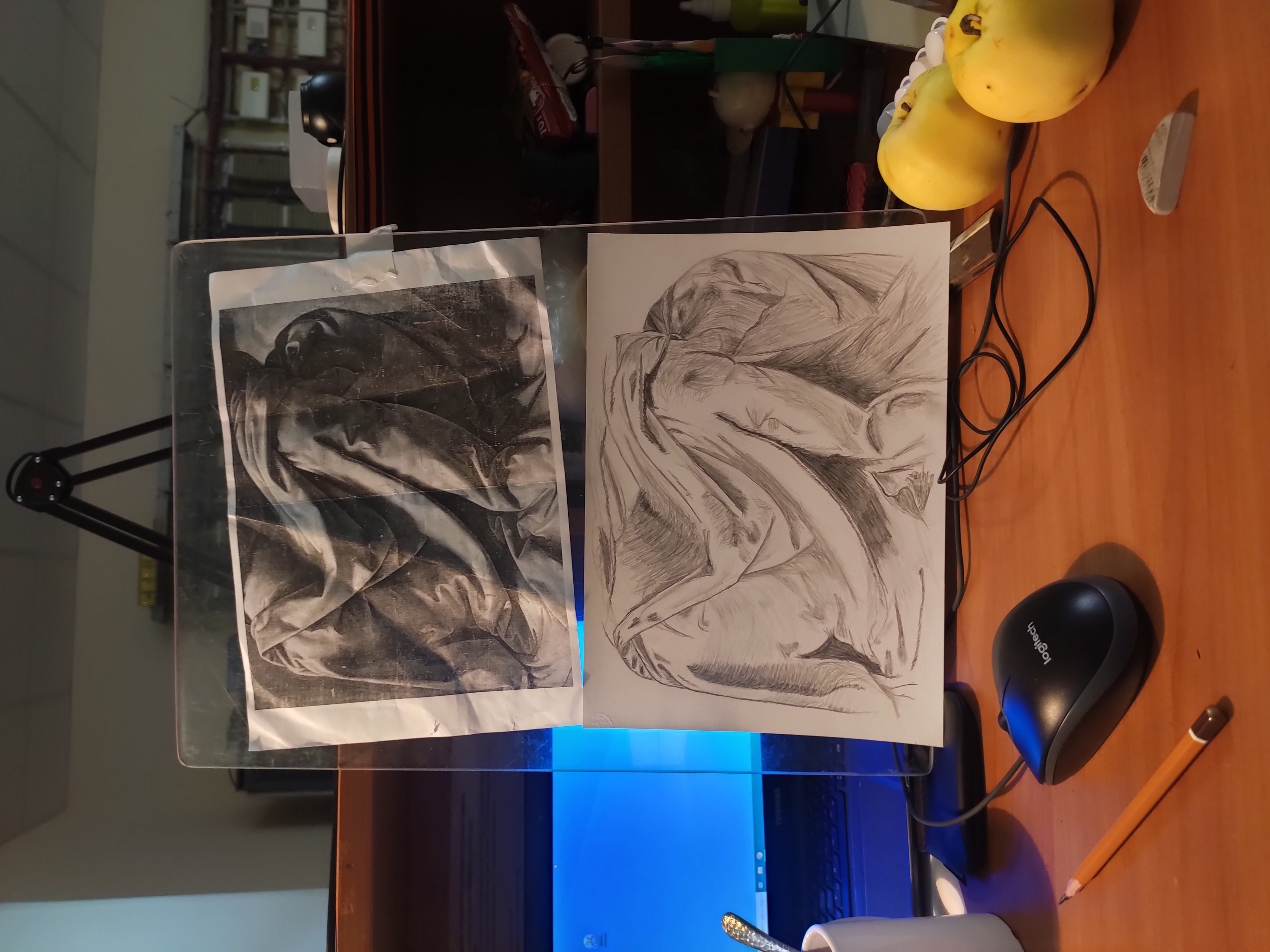>>851896 Не слушай эту >>851902 чепушню. Не надо тебе не куда откатываться. Продолжай пилить такие вот наброски. Залог успеха в колличестве. Пили пили и ещё раз пили. Набивай руку. Попробуй купить скульптурный пластелин. И полепи разные части тела, голову руки ноги. Это поможет ещё лучше прочувствовать объем. Прокачка быстрее пойдёт. Твой рисунок не закончен тут особо нечего исправлять. Вижу только что левое предплечье короче правого. Видишь ты не нарисовал стопы и кисти и голову? Это потому что их сложнее всего рисовать. А ты возьми и нарисуй 300 мини набросков кистей и 300 рук и 300 головы. Без особой прорисовки просто в разных положениях. Поставьте лампу и с ними видео на телефон свою руку с разных ракурсов. Потом это видео ставь на паузу в разных моментах и рисуй. 300х300х300. Каждый набросок 3:4 минуты. Глянь ещё рыжкина Александра. Можно короткие видосы про стопы голову и кисти рук. Потом можно часовые лекции с разборами. А эту чепушню не слушай