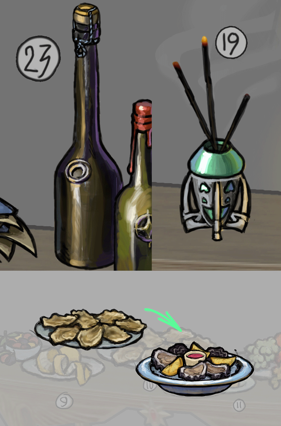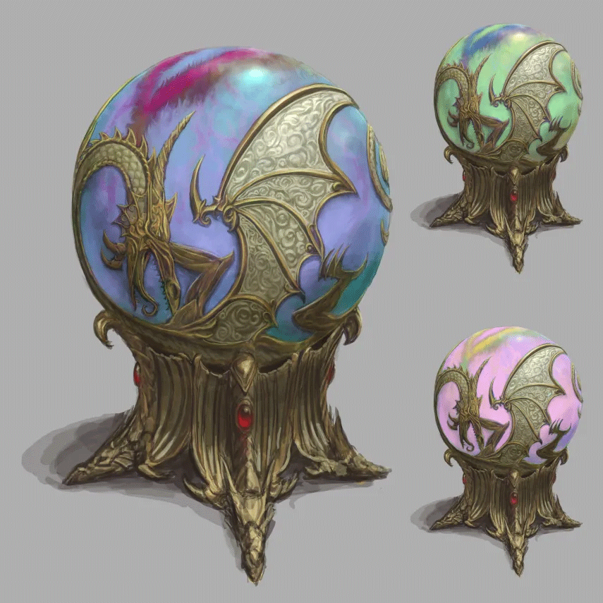 >>902953 Голову немного изменил. Нарисовал работягам на хелуин два плаща и какой-то артефакт в виде магического драконьего глаза на подставке. На последней варианты возможного ингейм освещения шара и подставки.