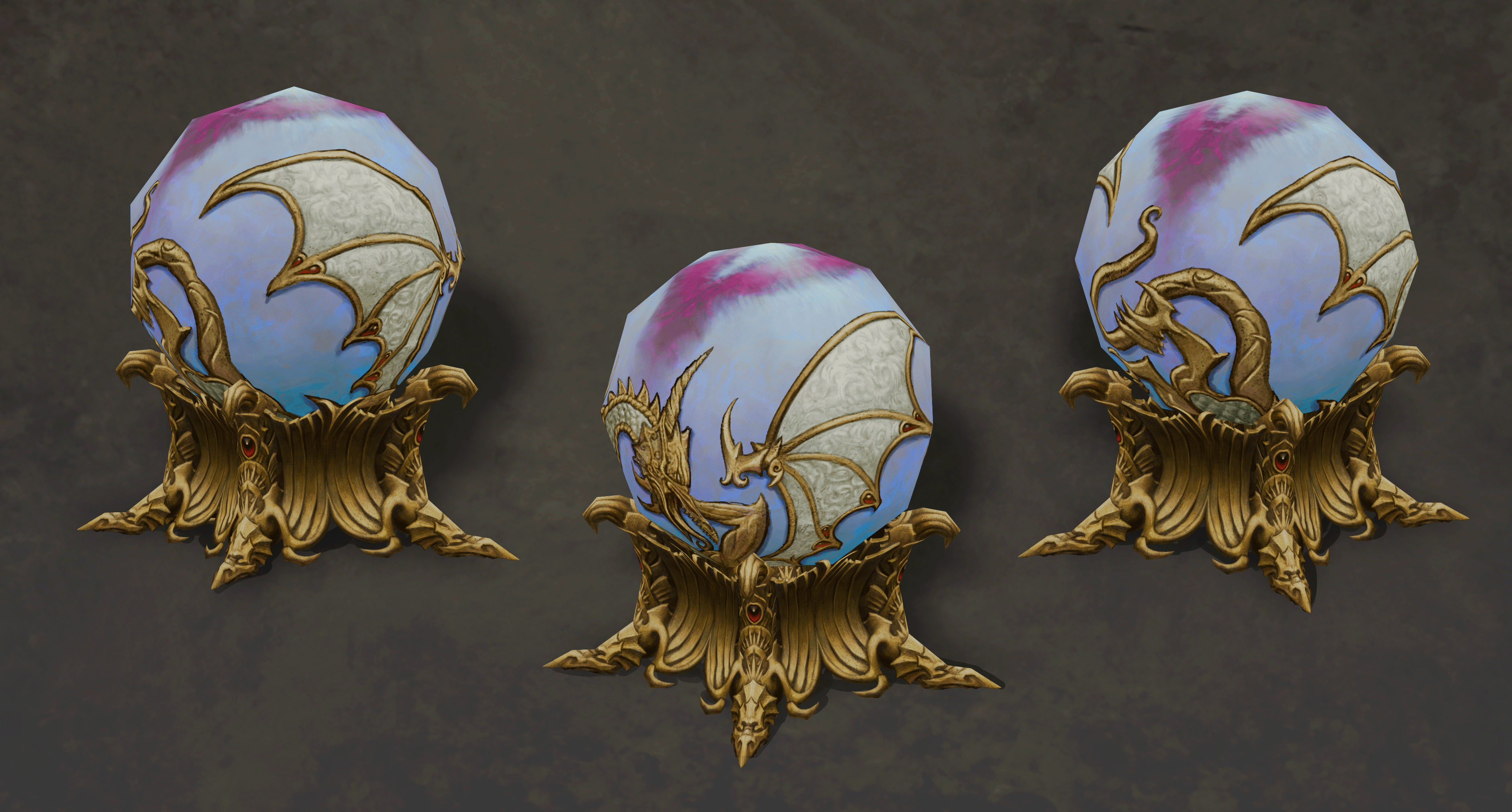 >>903676 >Типа это вроде часть подставки Нет это не часть подставки. Это ювелирное оформление сферы. Там гильоше и филигрань. Задача пропса — оформление столов в городе высших эльфов. Какой-то древний магический артефакт который исследуют неписи. Для игрока он не юзабелен.
