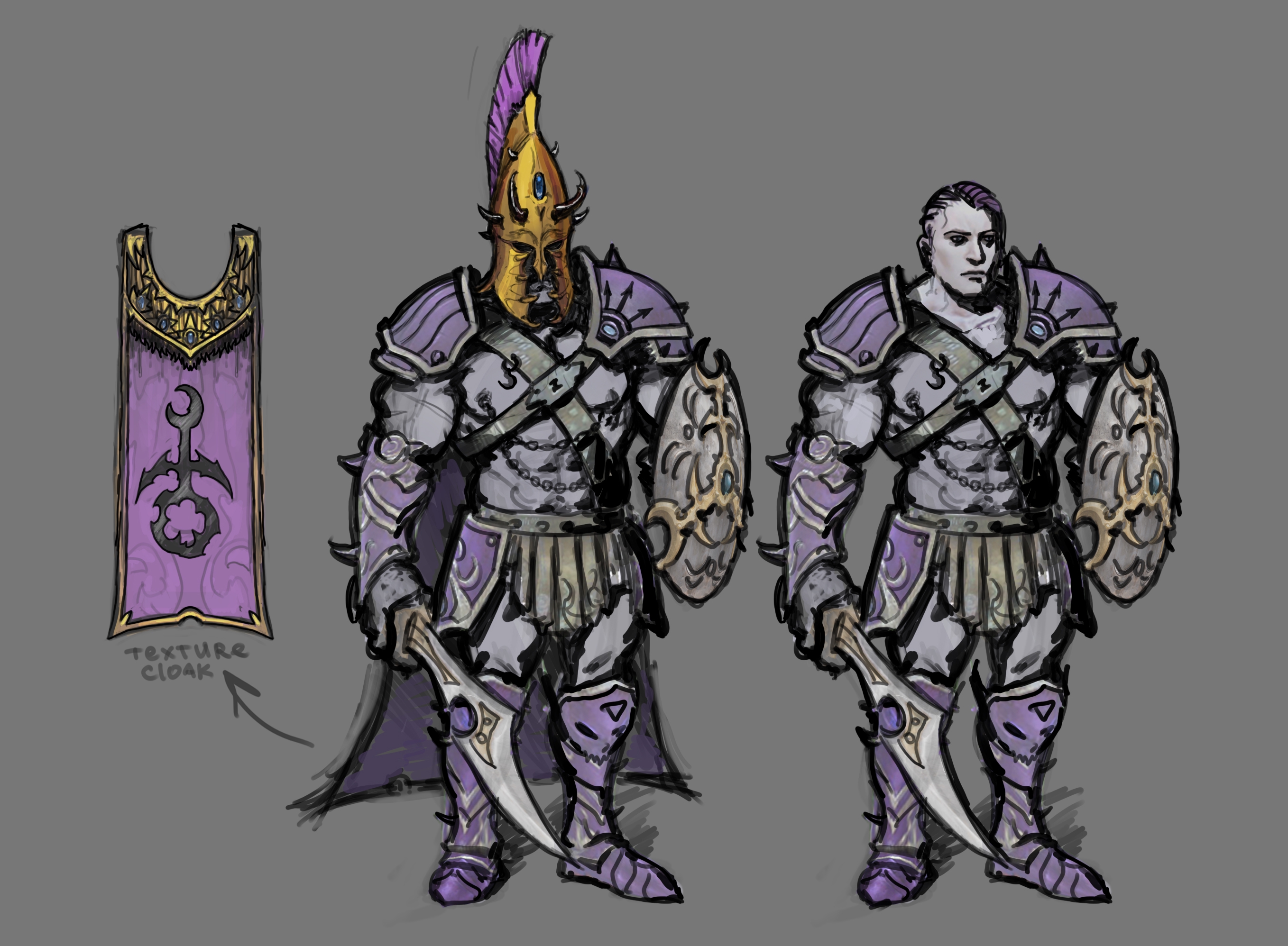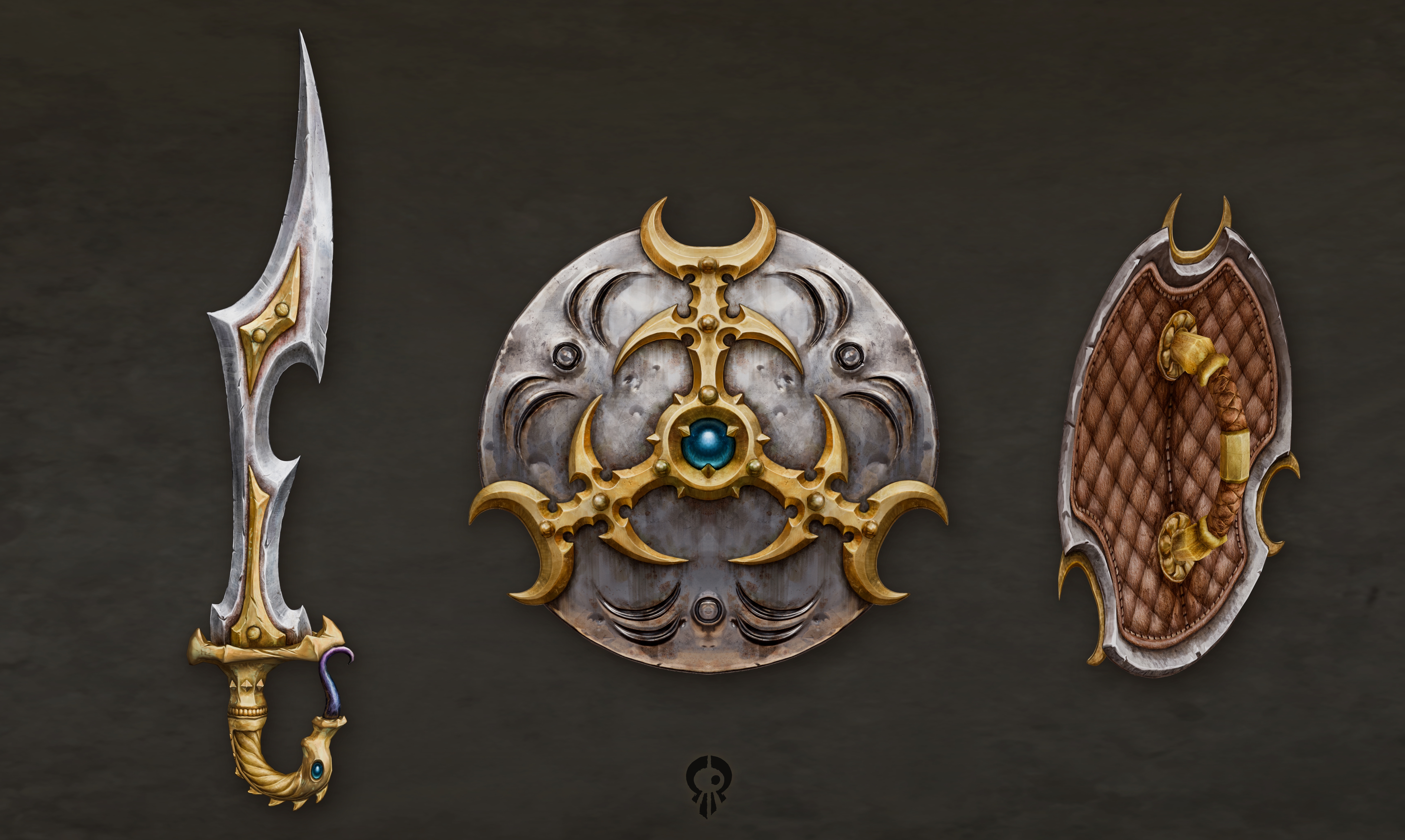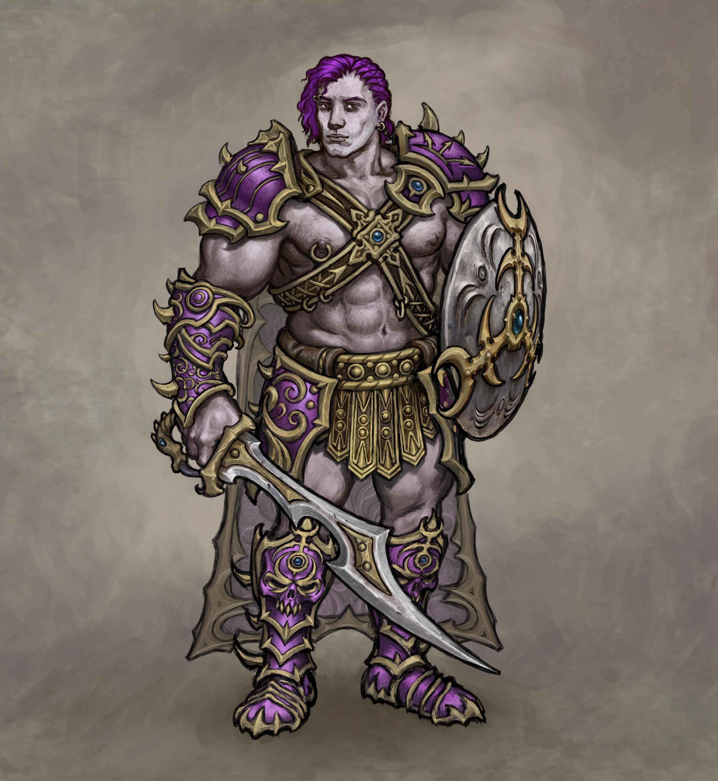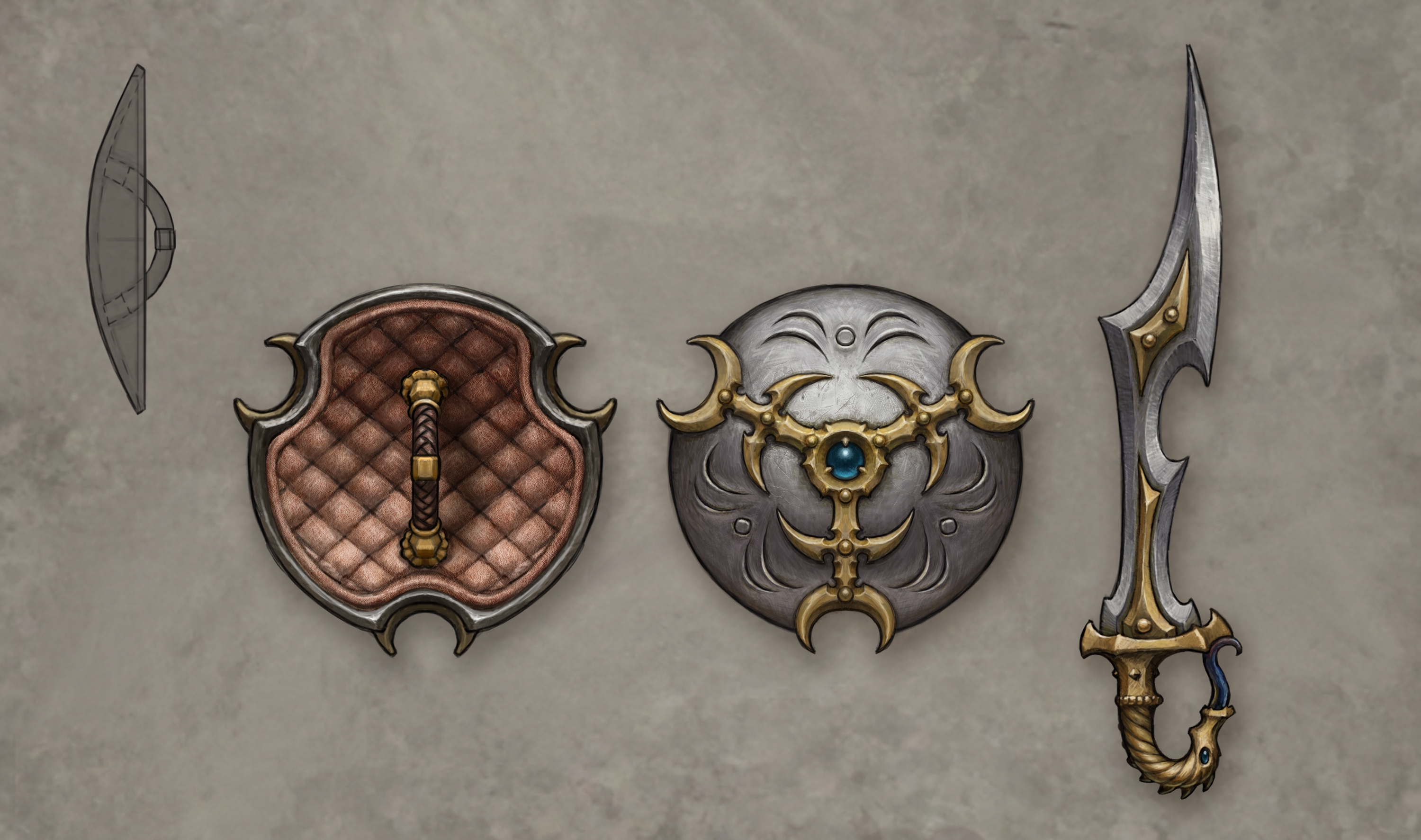 >>909276 >>910852 Доделал меч и щит для этого чемпиона. Ну и внёс пару штрихов в изначальный концепт персонажа. Переосмыслил броню и прочее. Если будет настроение может дорендерю его и будет почти полноценная работа по персонажке.