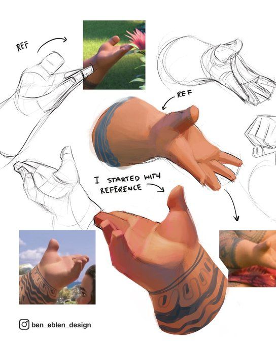 >>906037 И еще по цвету, у тебя получается зеленый монохром. Лучше не уходи в синий в тенях, получается грязный цвет. Погугли монохромные цветовые палитры, похожие фото, поколорпикай оттуда. >>905866 пропорции неправильные, деревянность смотри соотношения крупных форм ладони. ИРЛ руки на фото далеко не пластичные, им надо усиливать пластичность, это важней чем пытаться аутистически повторять фотореф. Не нужно рисовать пальцы каждый отдельно. И если с фото рисуешь, выбирай позы которые изначально выразительны. Но опять таки не повторяй один в один, включи анализ, твоя цель сделать красиво и выразительно, а не копировать. Советую глянуть Sinix how to draw hands, он там поясняет.