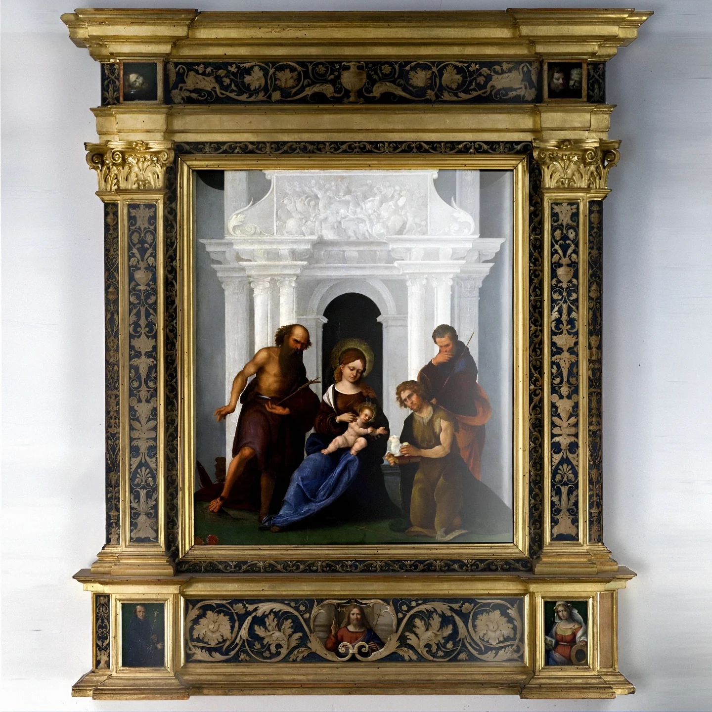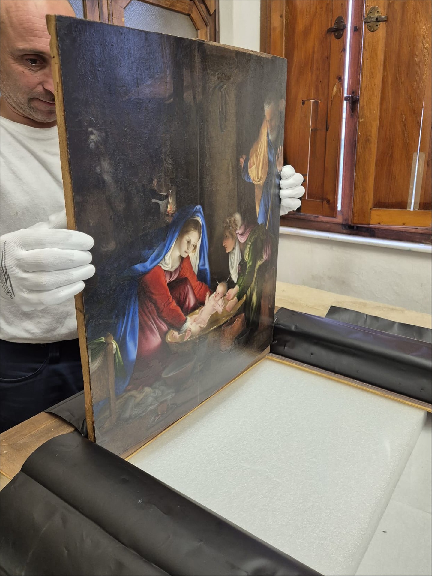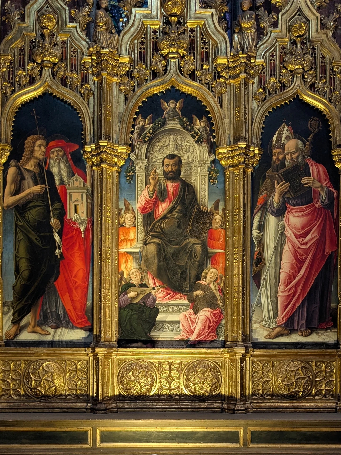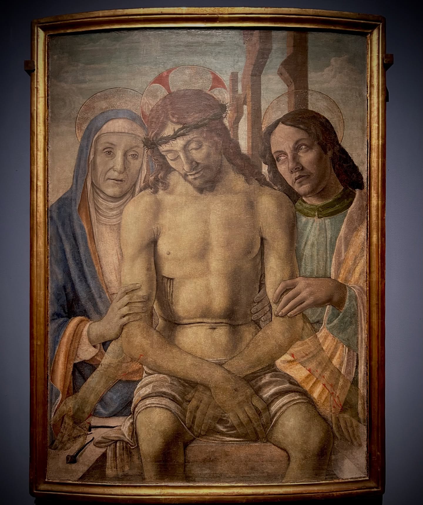 - Оригинальная рама: Одной из важнейших находок стало восстановление центральной рамы XV века. Физико-химический анализ выявил под поздними слоями оригинальный полихромный декор, который был бережно расчищен.