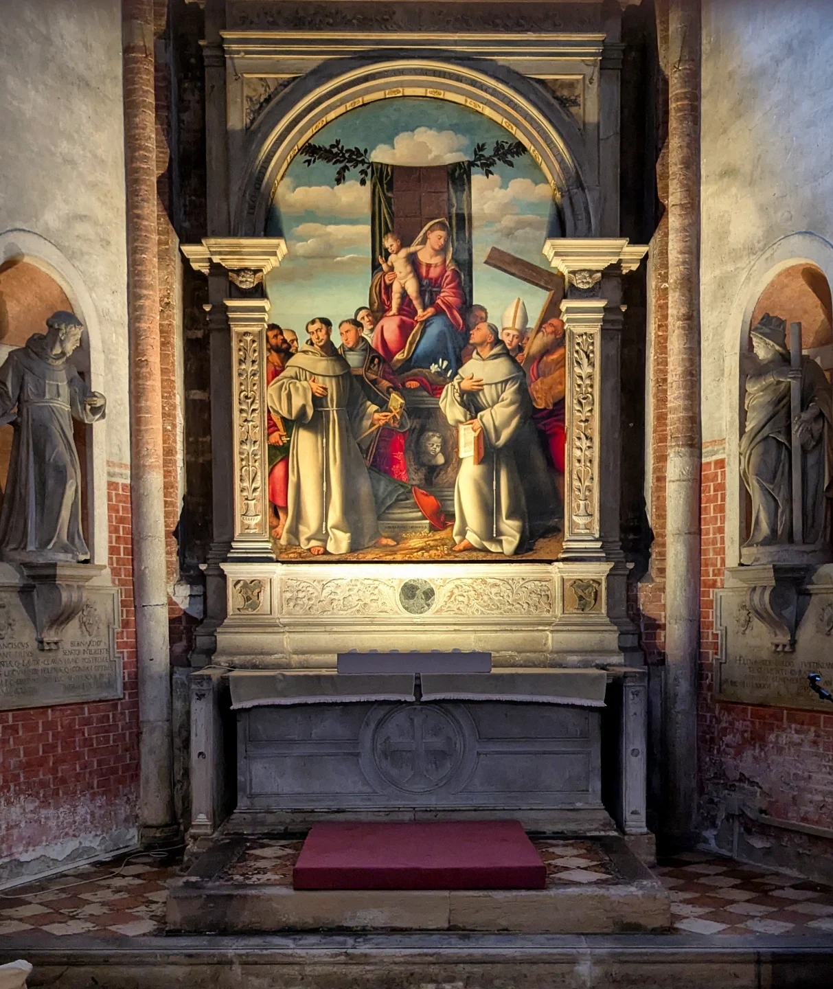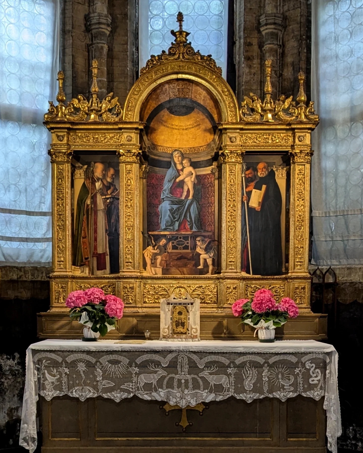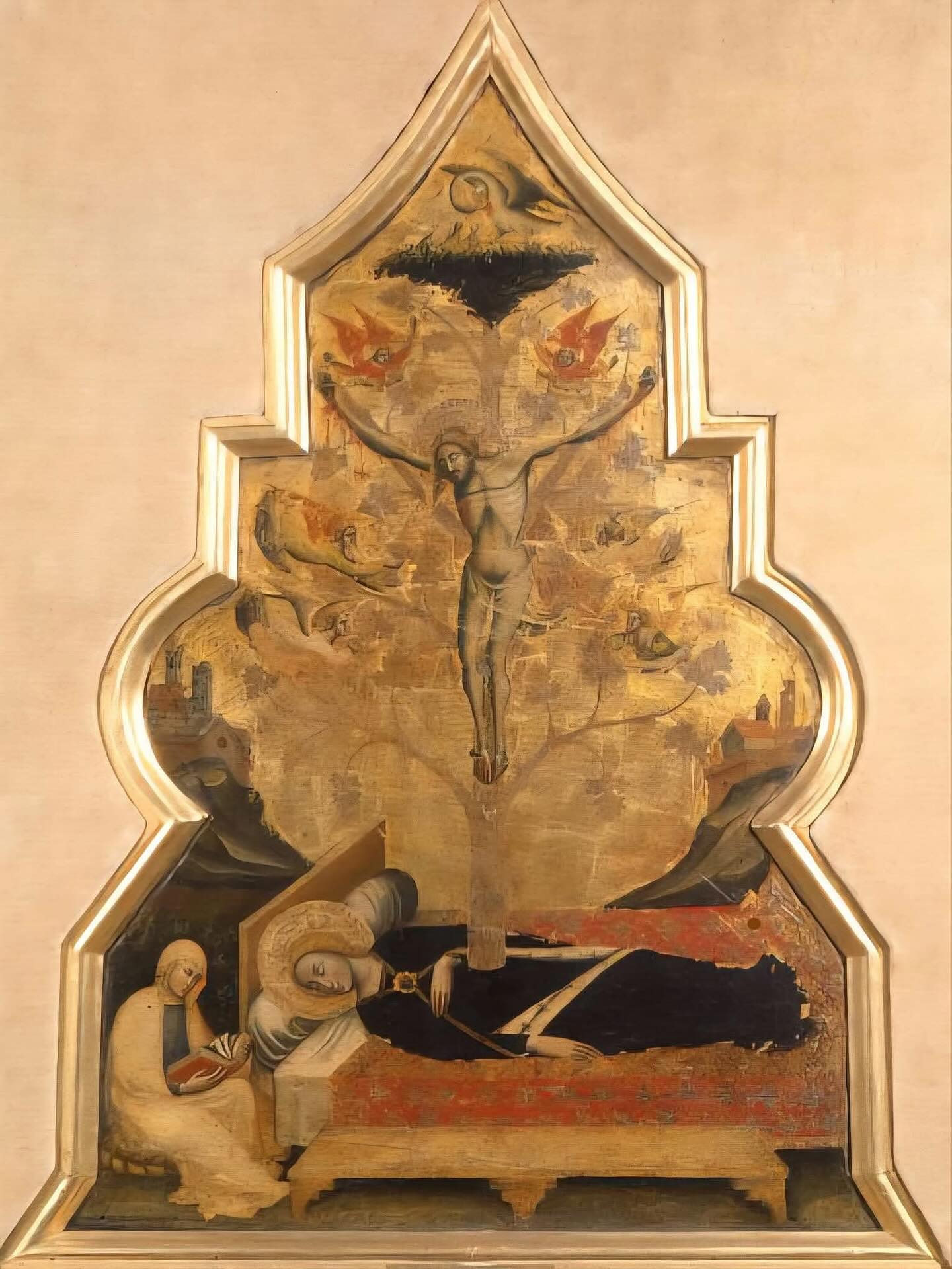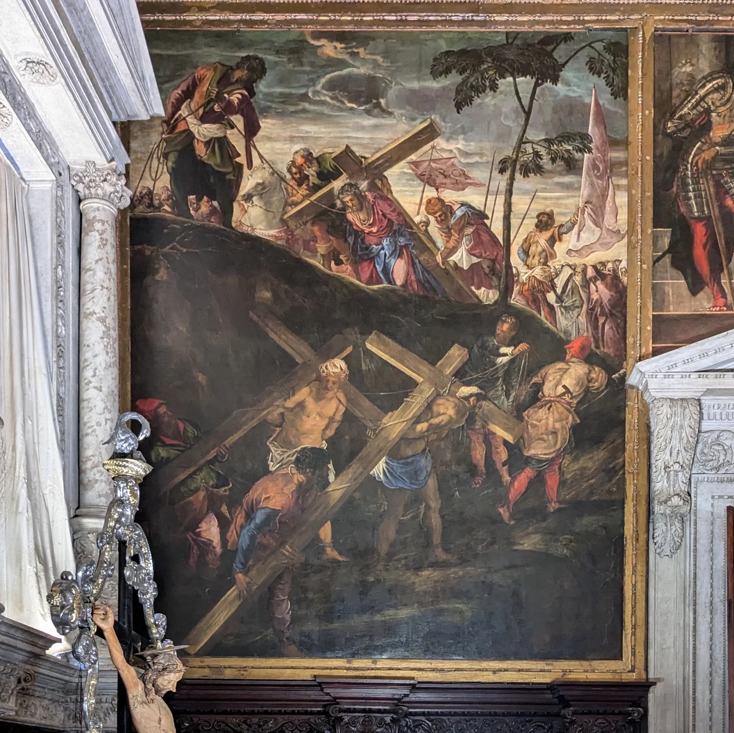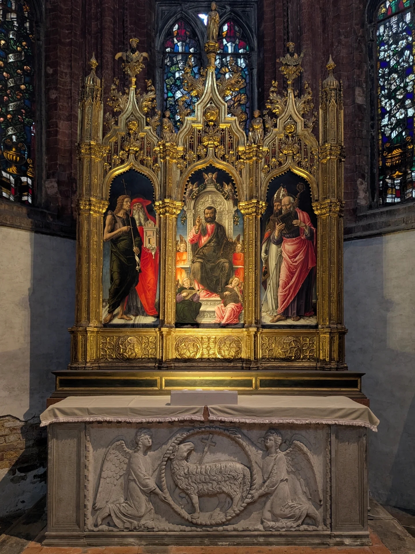 - Оригинальная рама: Одной из важнейших находок стало восстановление центральной рамы XV века. Физико-химический анализ выявил под поздними слоями оригинальный полихромный декор, который был бережно расчищен.