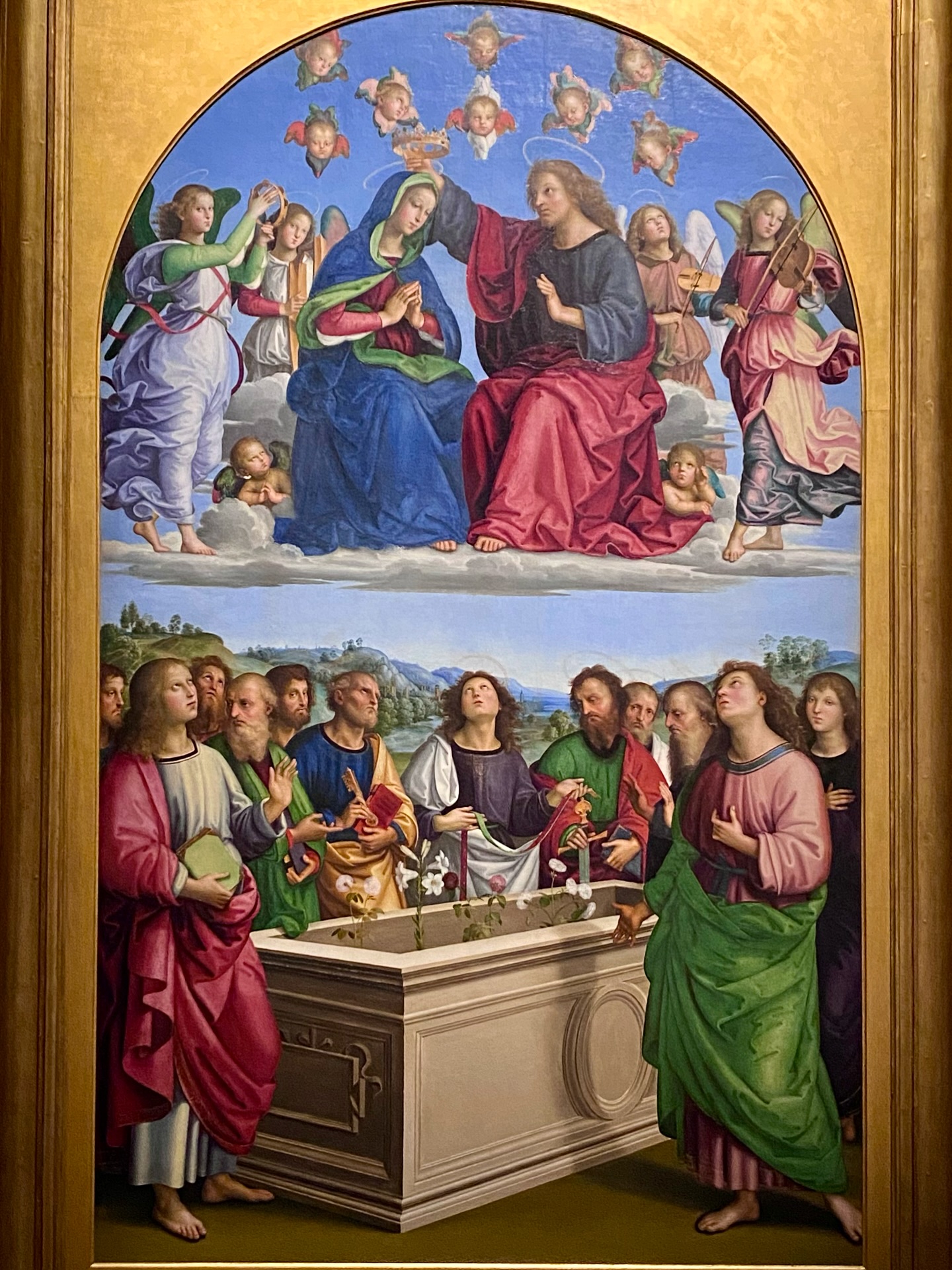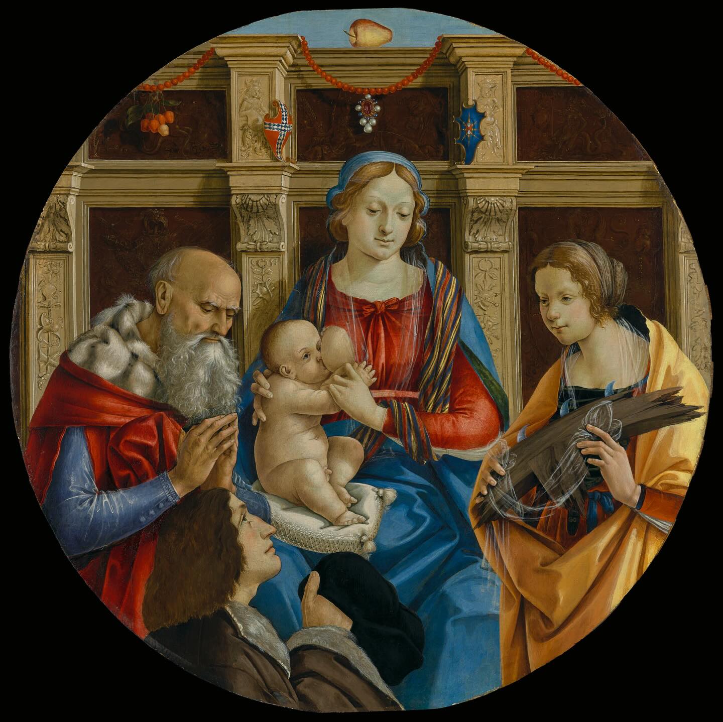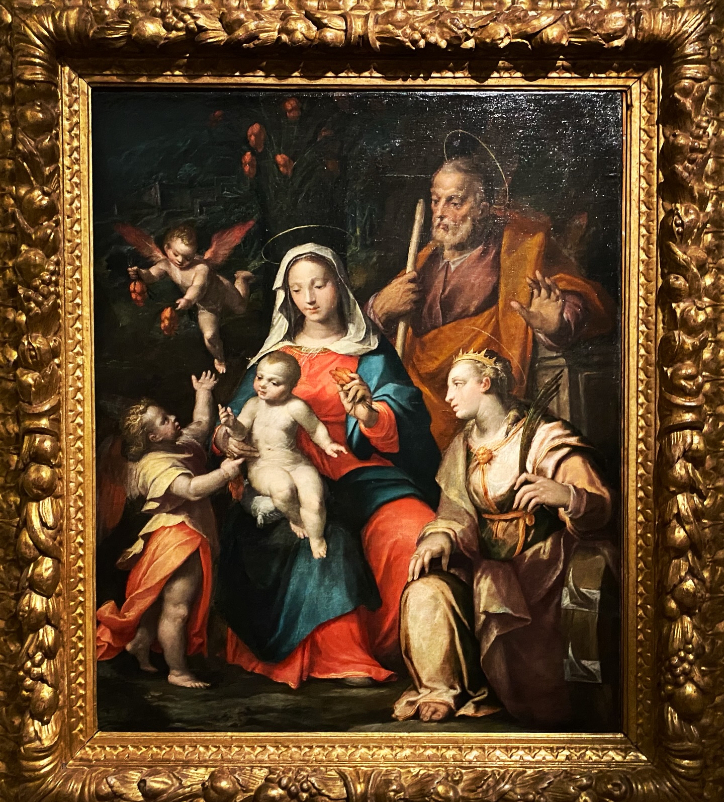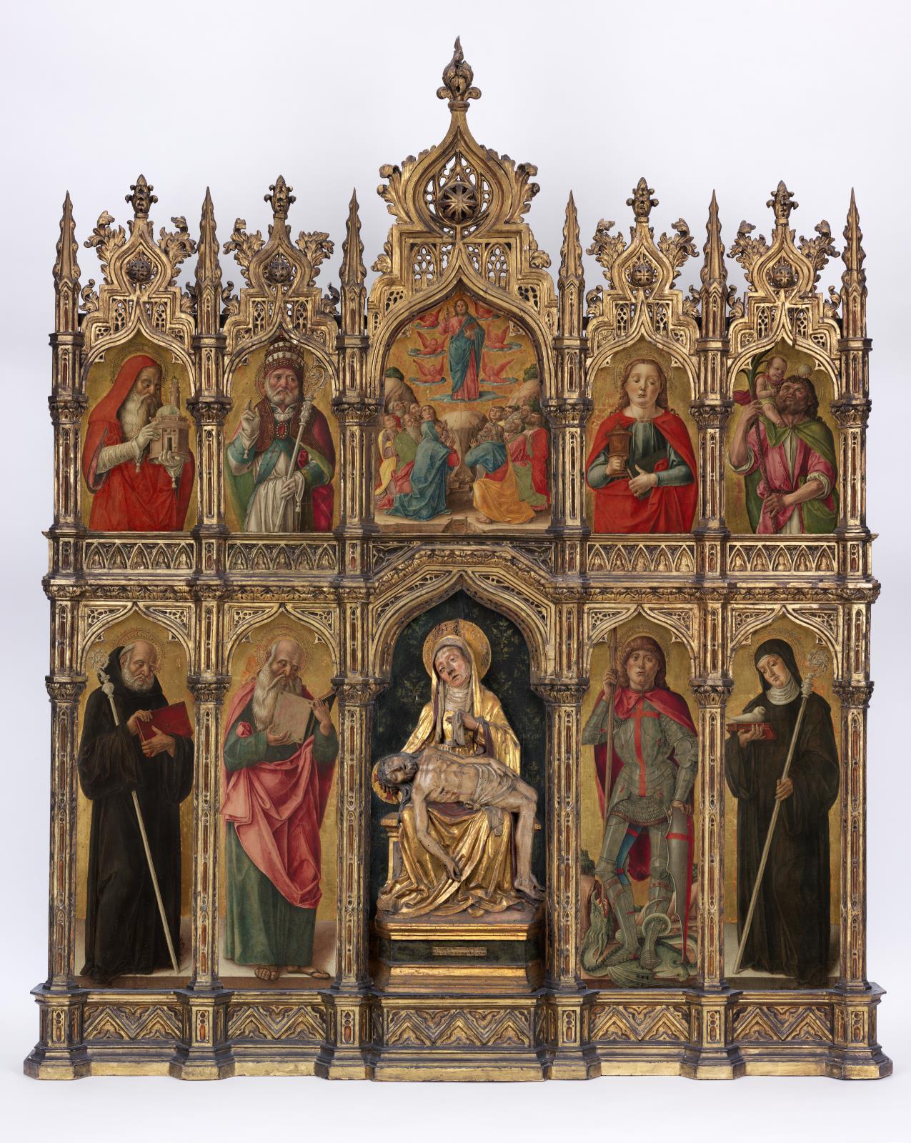 - Оригинальная рама: Одной из важнейших находок стало восстановление центральной рамы XV века. Физико-химический анализ выявил под поздними слоями оригинальный полихромный декор, который был бережно расчищен.