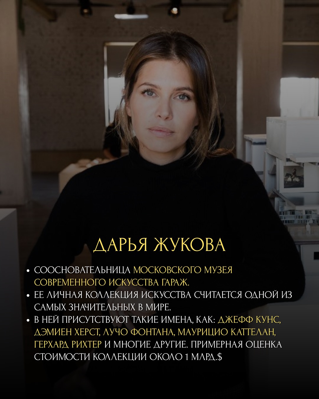 Россию в нем представляет Дарья Жукова. Список составлялся в период шаткого положения арт-рынка, когда определяющим при приобретении работы стало «инвестиционное мышление». Иными словами, наибольшее значение при покупке искусства обрел вопрос: «Насколько вероятно, что оно вырастет в цене?»