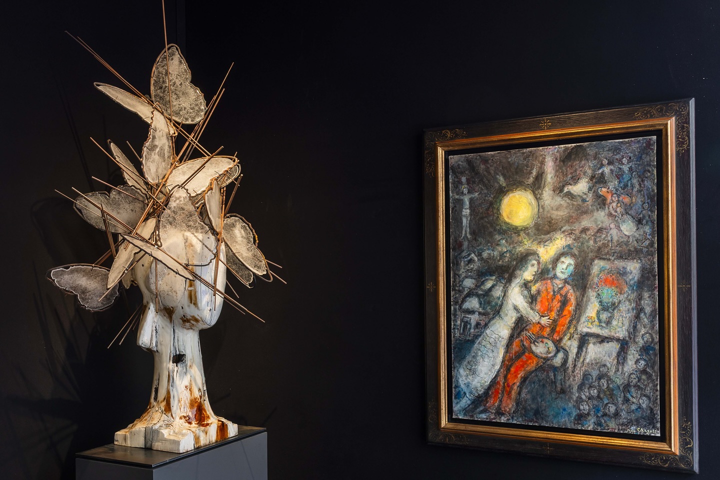 >>878001 Произведение "Paris par la fenêtre" представляет собой художественную композицию, воплощающую стиль художника, тесно связанный с сюрреализмом и кубизмом. Оно пронизано эмоциональной глубиной и лиричностью, выделяясь характерными чертами Шагаля, такими как изогнутые линии, яркие цвета и уникальное сочетание элементов и его магических персонажей.