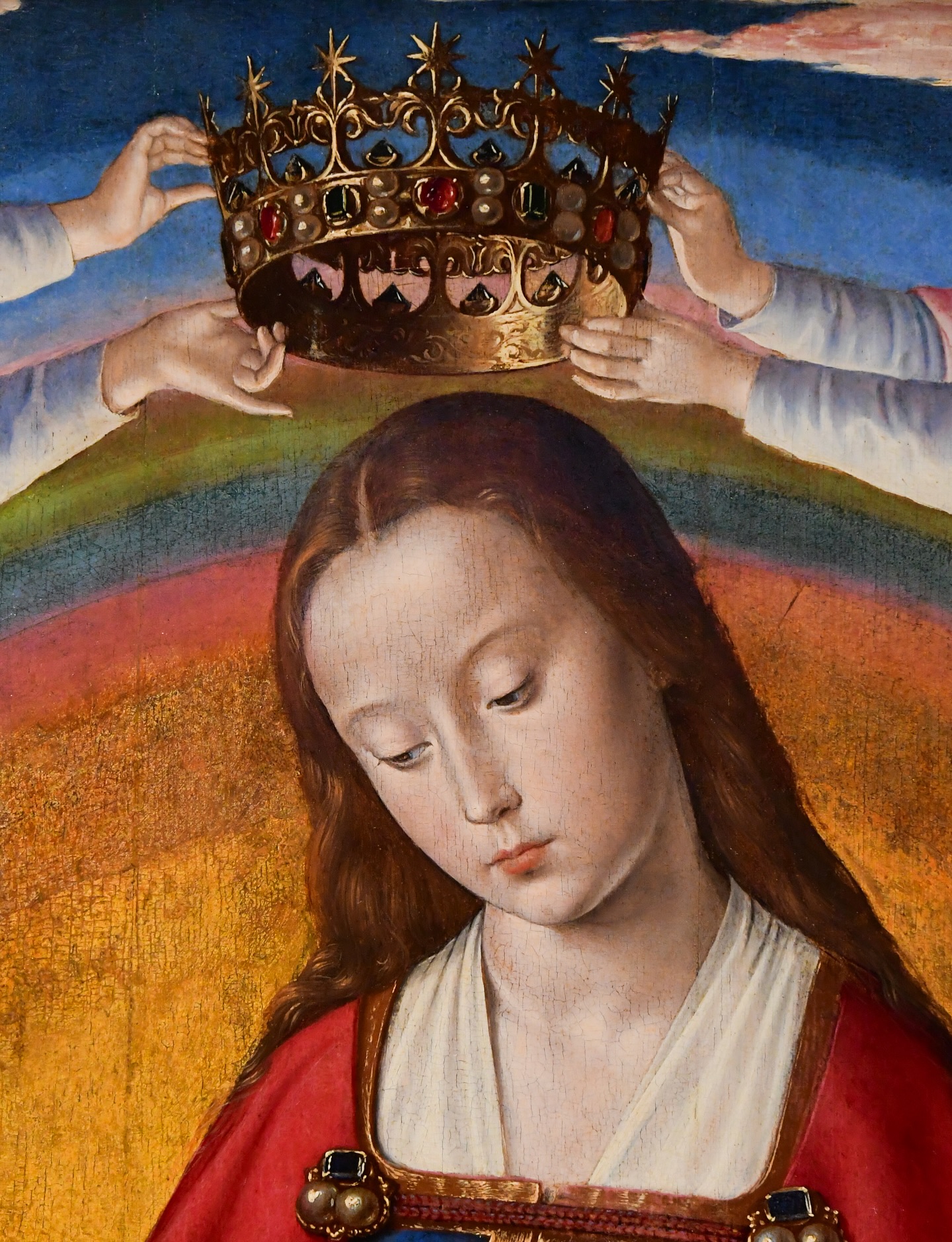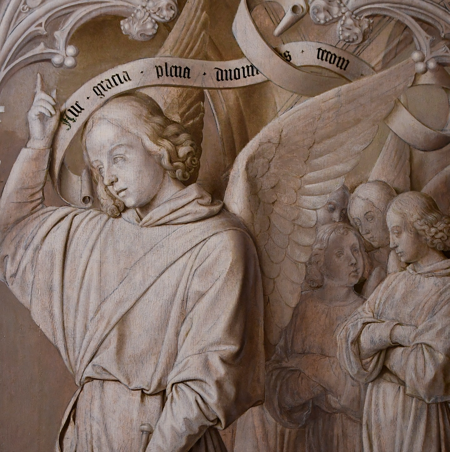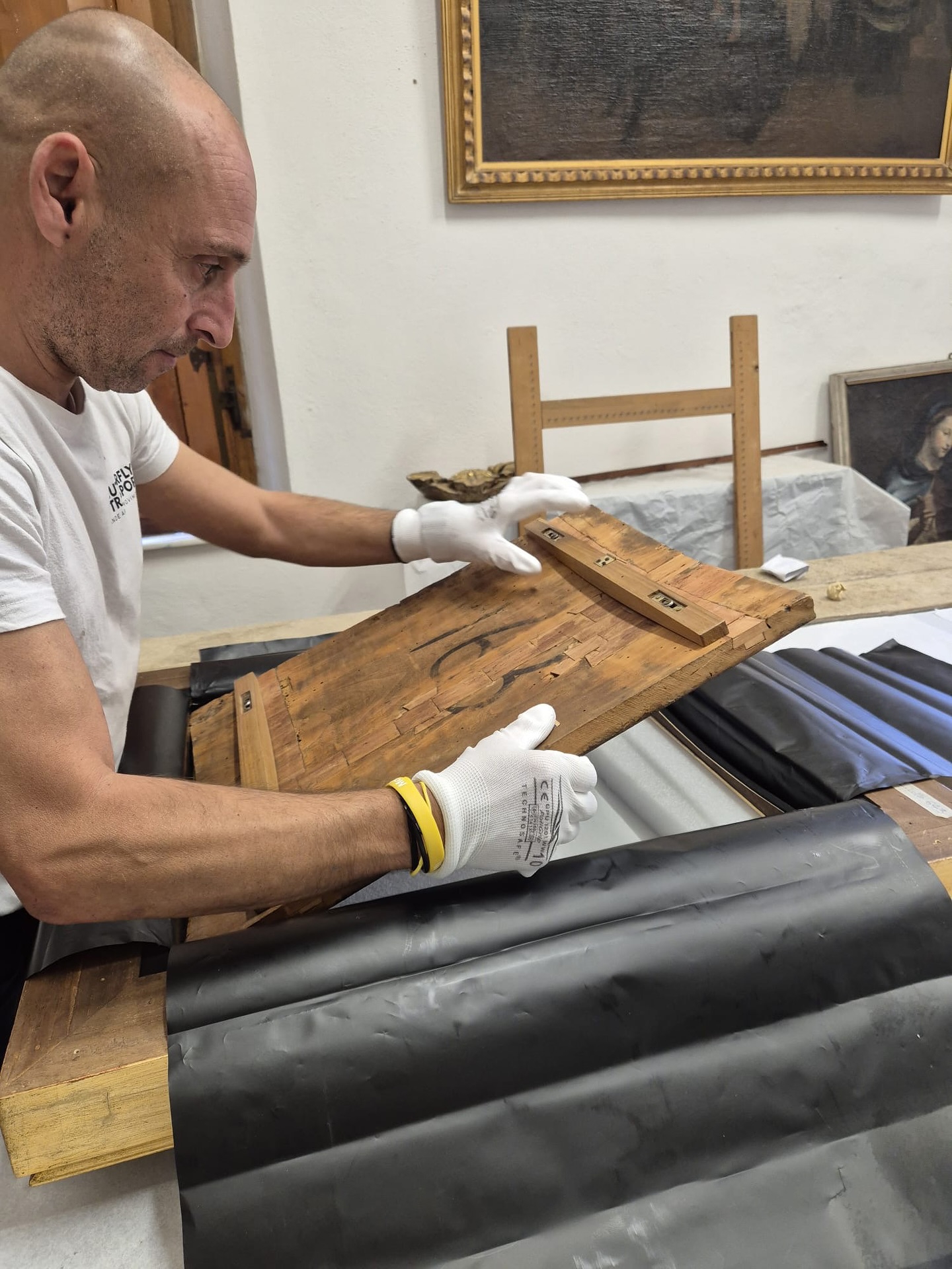 - Структурная консолидация: Специалисты укрепили деревянную основу и восстановили симметрию композиции, добавив недостающие фрагменты (около 5 см) на боковых створках, которые были обрезаны еще до Французской революции
