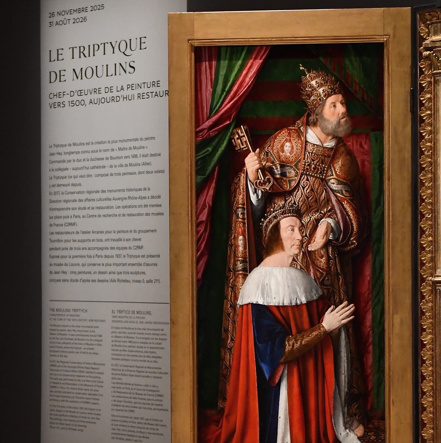 «Триптих Мулен», шедевр Жана Эйя (также известного как Муленский мастер), датируемый концом XV века, прошел масштабную реставрацию с 2022 по 2025 год и в настоящее время выставлен в Лувре с 26 ноября 2025 года