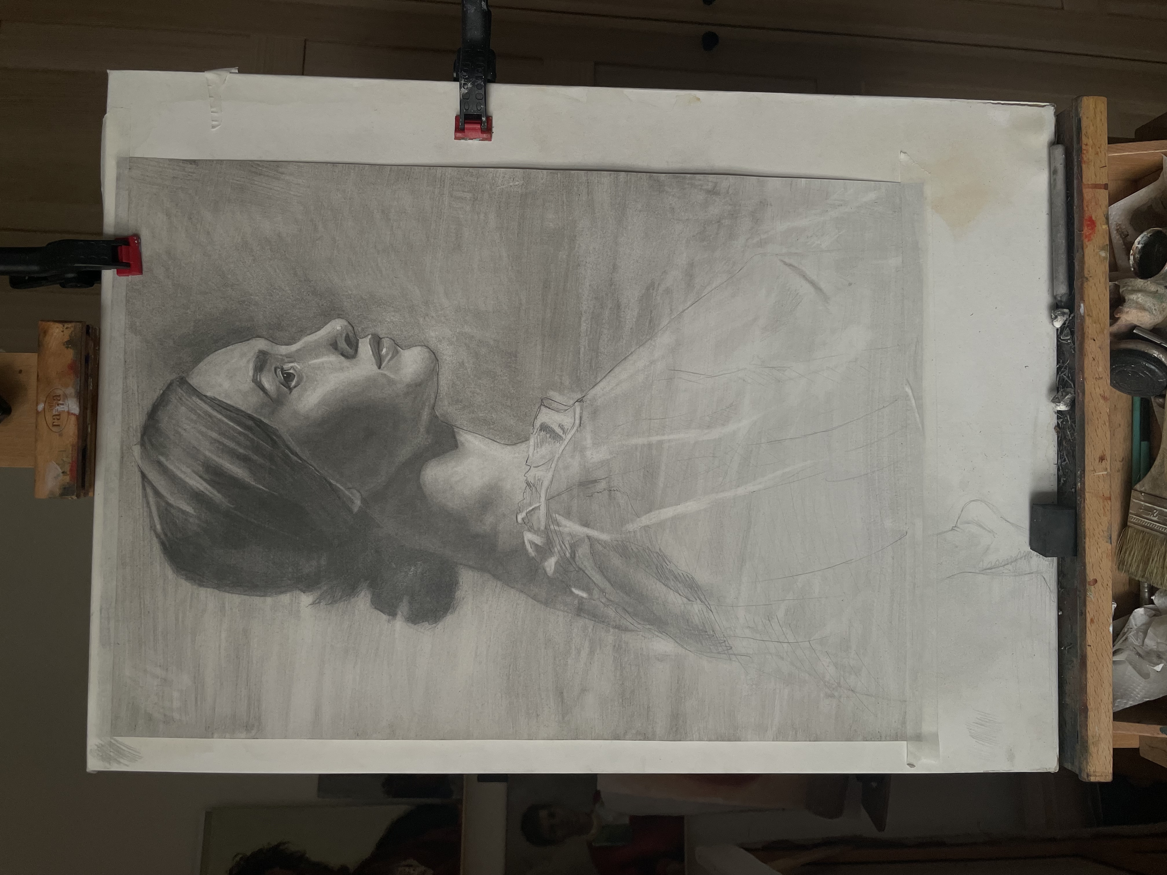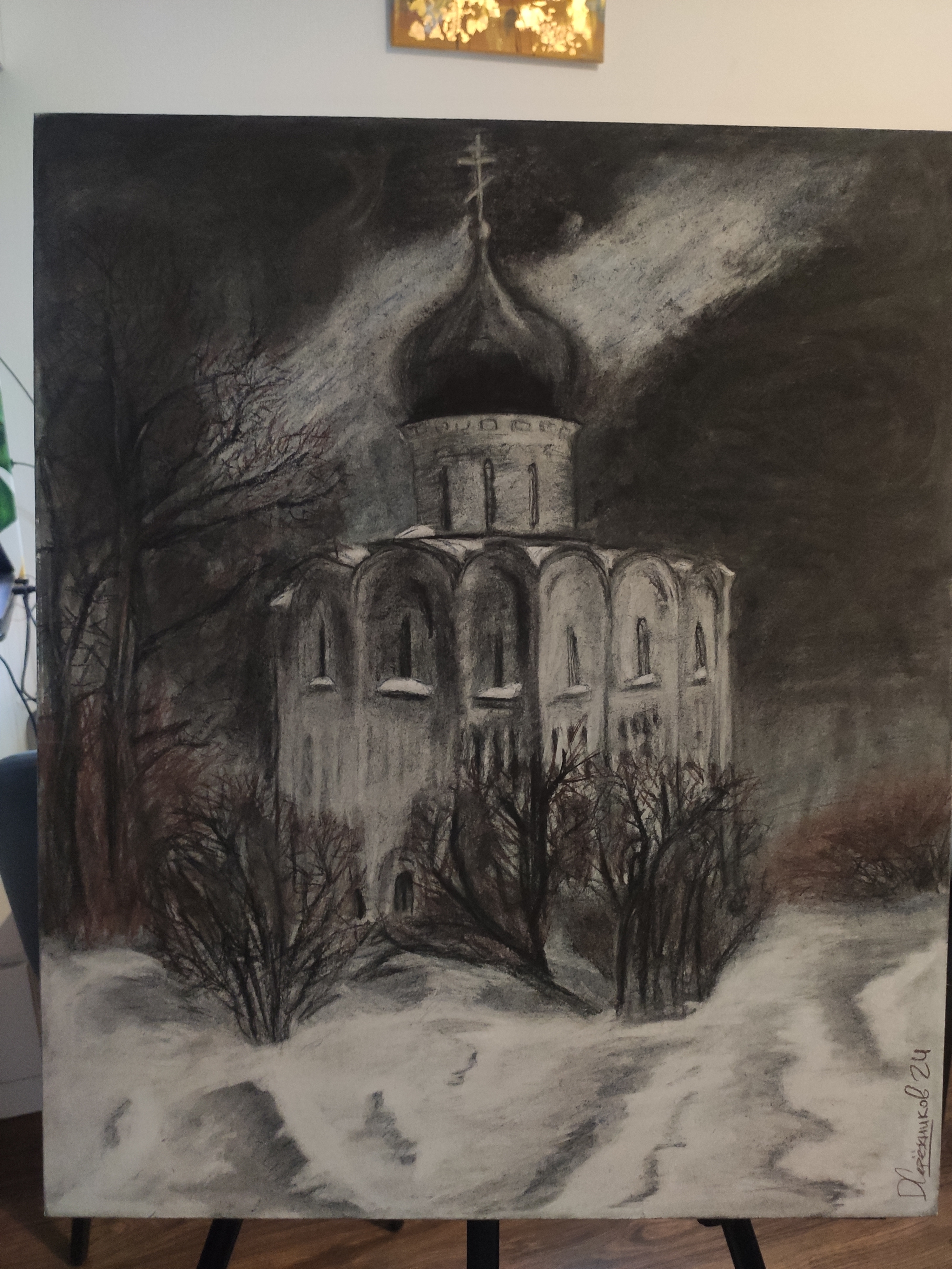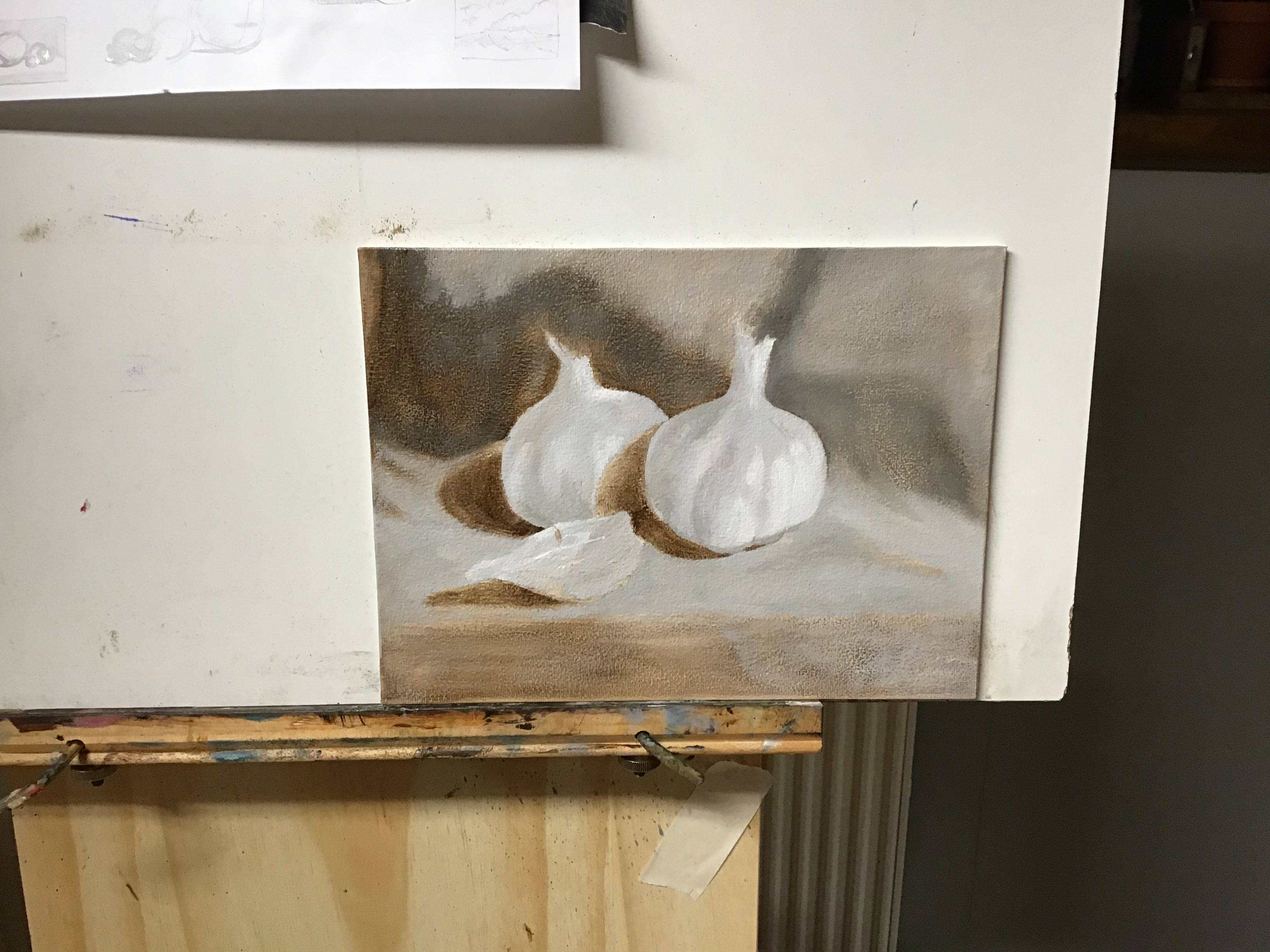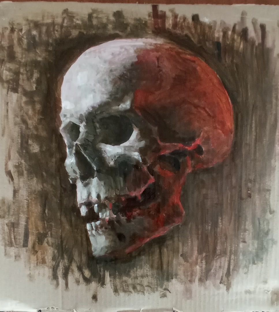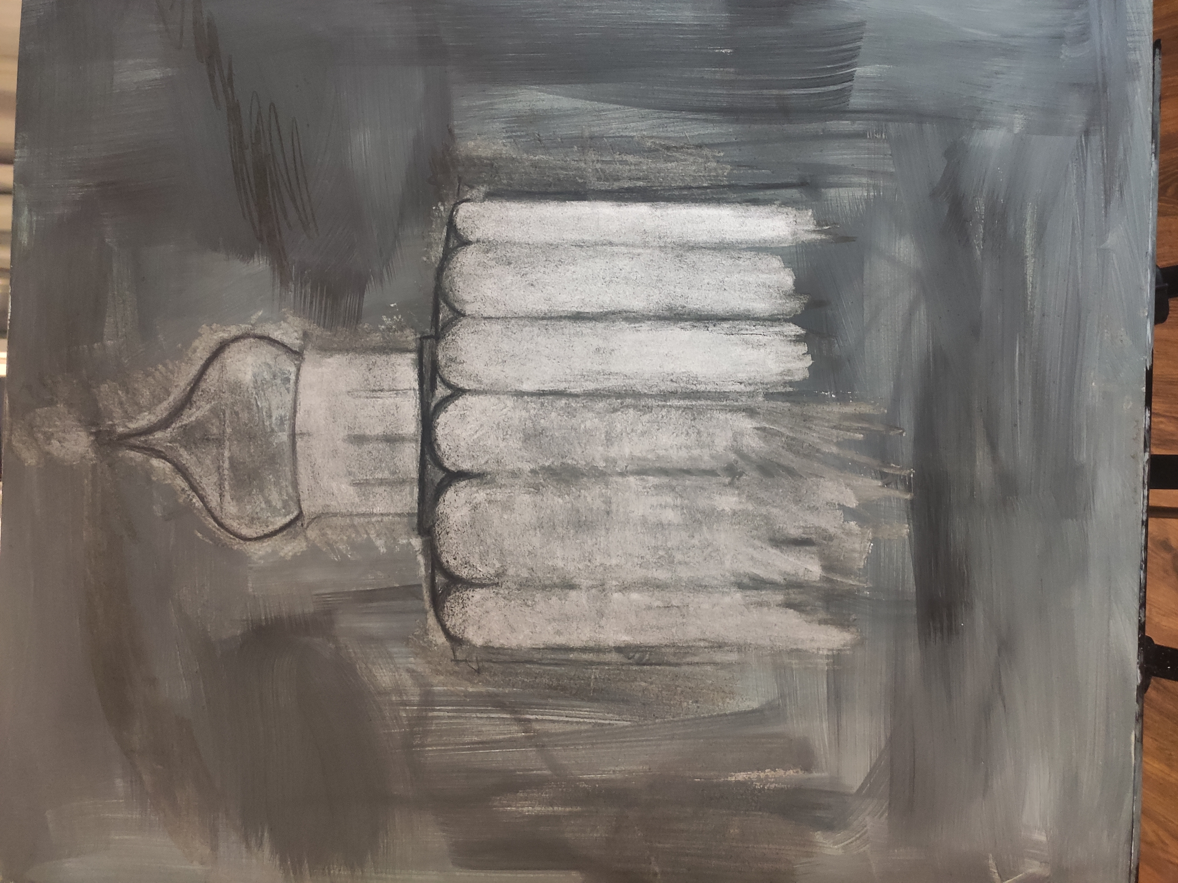 Сейчас задумался впервые делаю гризаиль. Я конечно рисил чб до этого, но именно мертвый свой для последующего покраса не делал ни разу. Раньше всегда красил по подбалевку на умбре. Немного обосрался. Хуже всего, что жженая умбра на терпентине нихуя не просохла за 24 часа. На ощупь была сухая, но как начал рисить, стала отваливаться. Сделал, что смог, но как все просохнет нужно будет еще на раз пройтись. На будущее подмалевок на терпентине тоже нужно писать с добавление сиккативов.