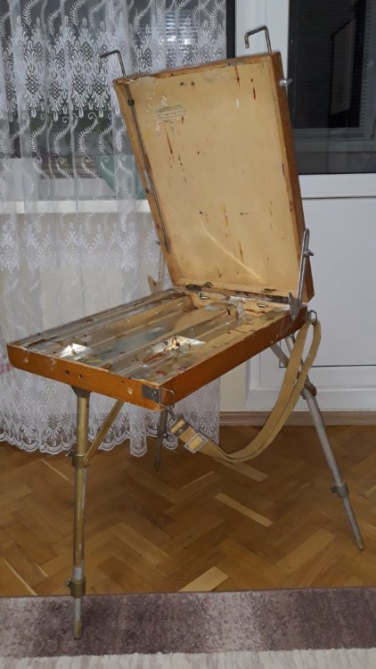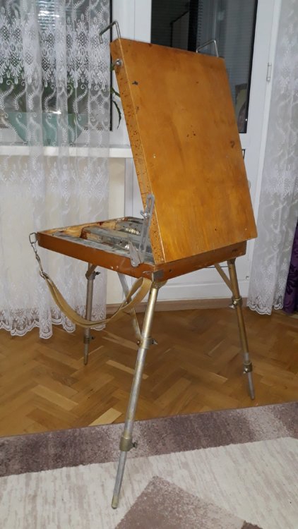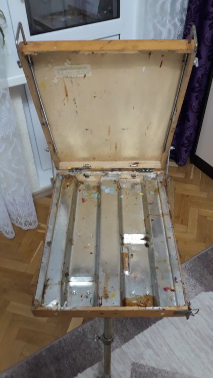 >>889328 Тоже собираюсь впервые выбраться с маслом на неделе. У меня крупноформатный совок тип 141188, вроде пикрила. Брал за 3500 с двумя десятками кисточек, ножом и фляжкой скипидара. Пока дальше балкона с ним не вылазил. Юзал тупо как бомж-вариант мольберта, который складывается до состояния столика и не воняет.