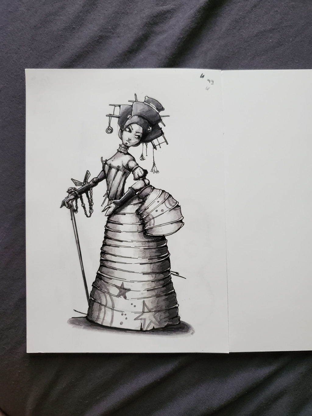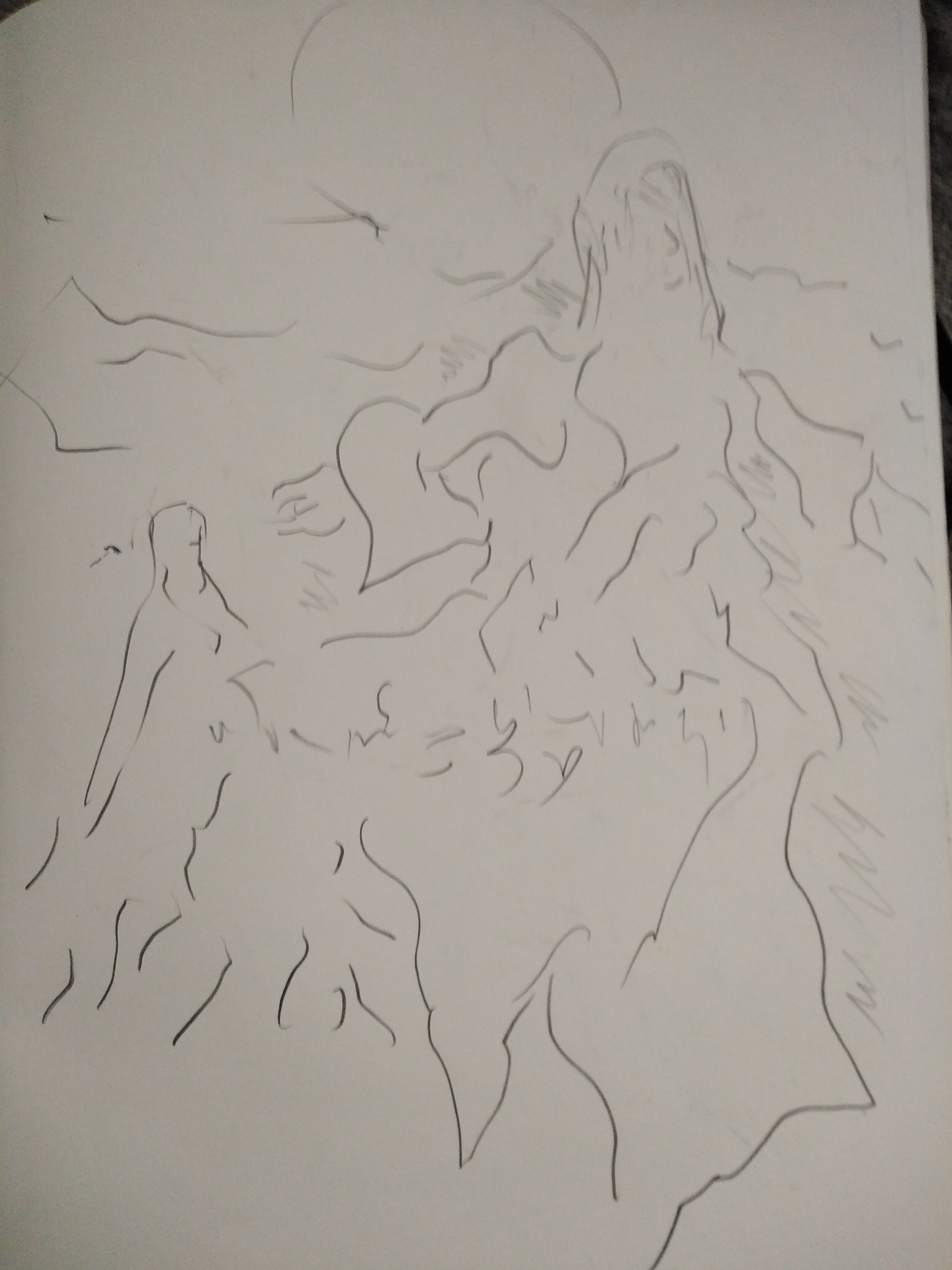 Немного заморочился и отрисовал эскиз на бумаге, потом на холст перенес, чтобы не тратить время на построение. Надо будет голову немного поправить и плечо