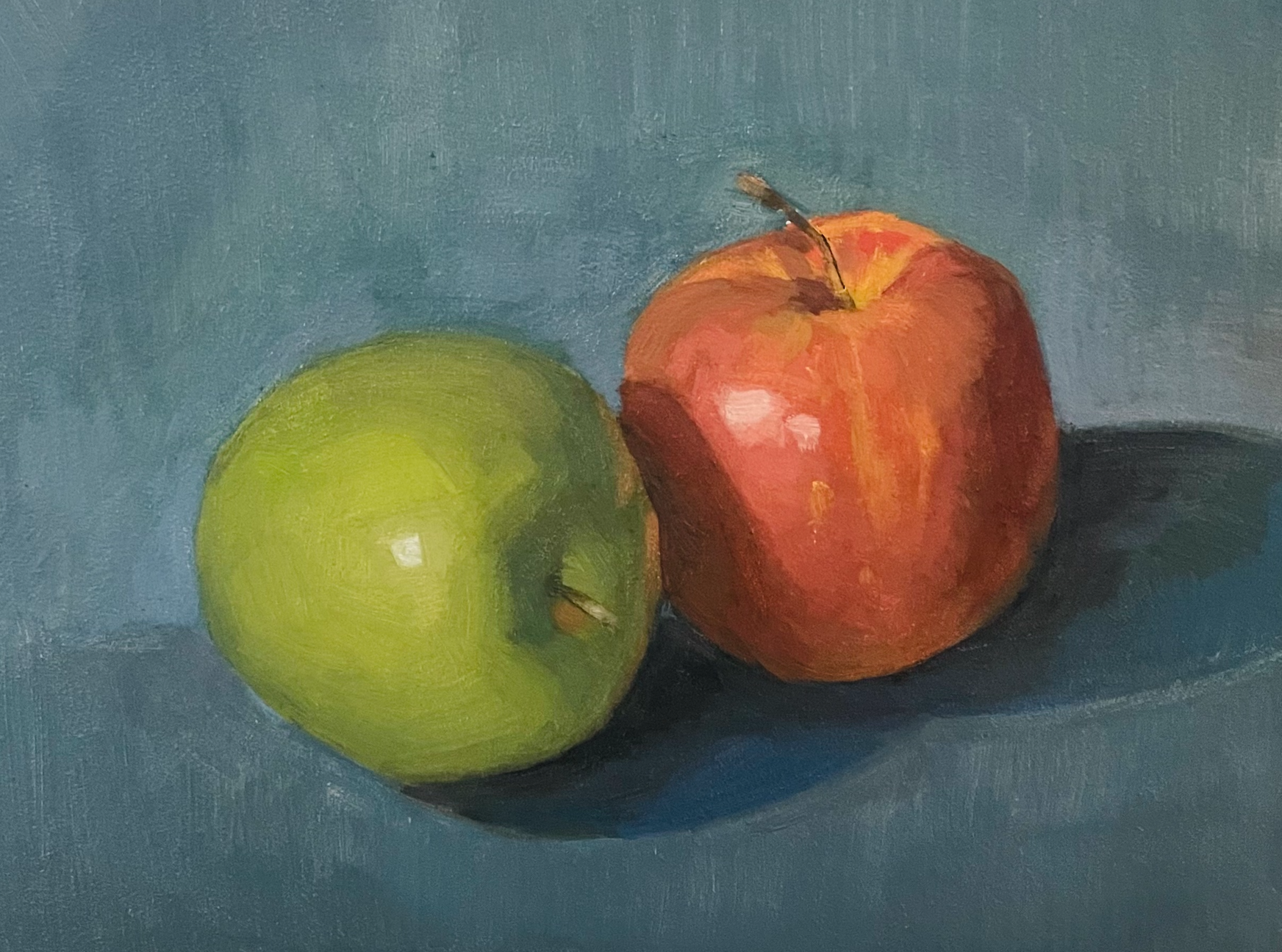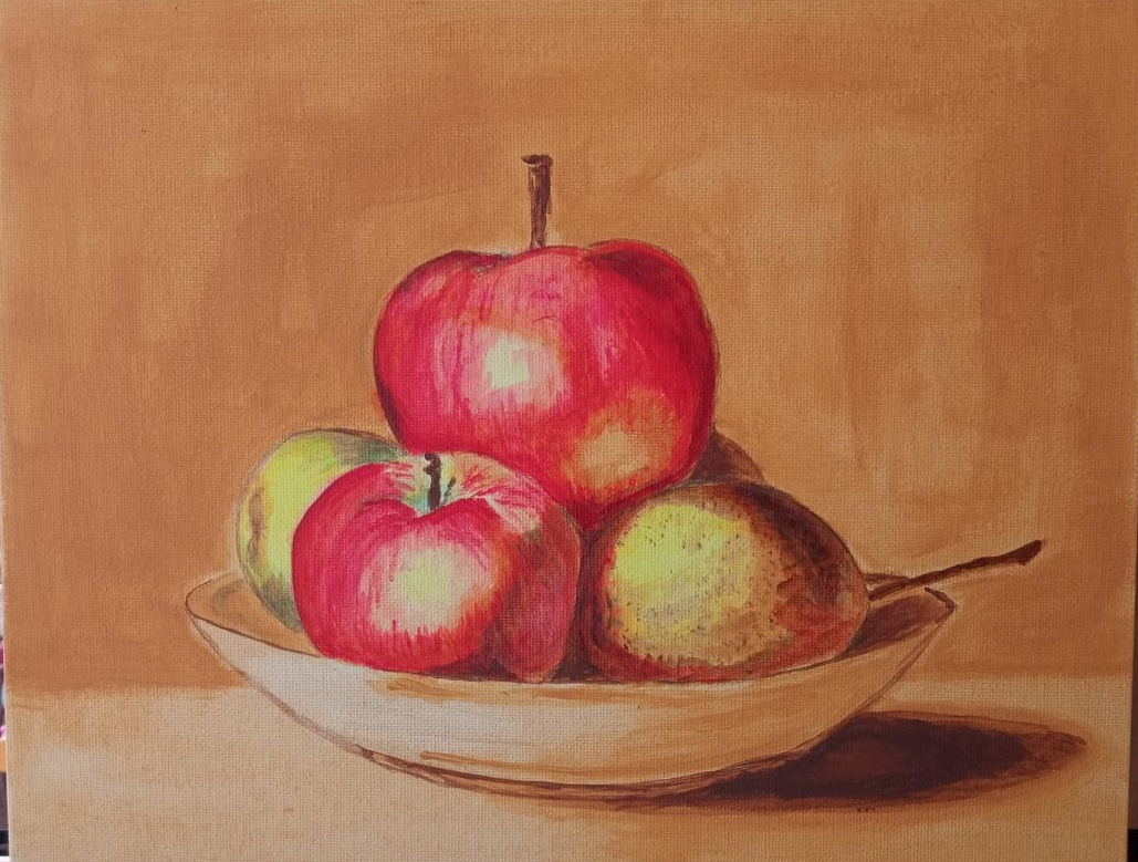 Раз уж пошла такая пьянка, скину то с чего начинал. пик1. Увидел на ютубе, понравилось. Самый первый мой холст на мдф и первая мазня акрилом. пик2. Взял картину по номерам. пик3. 50х70 акрил. Продолжал попытки понять как он ложится, сохнет и как им вообще работать. пик4. А во на яблоках уже впервые взял масло. Хотя грунтовал акрилом. Ну а дальше был кувшин, фезалис и вот гранаты начал.