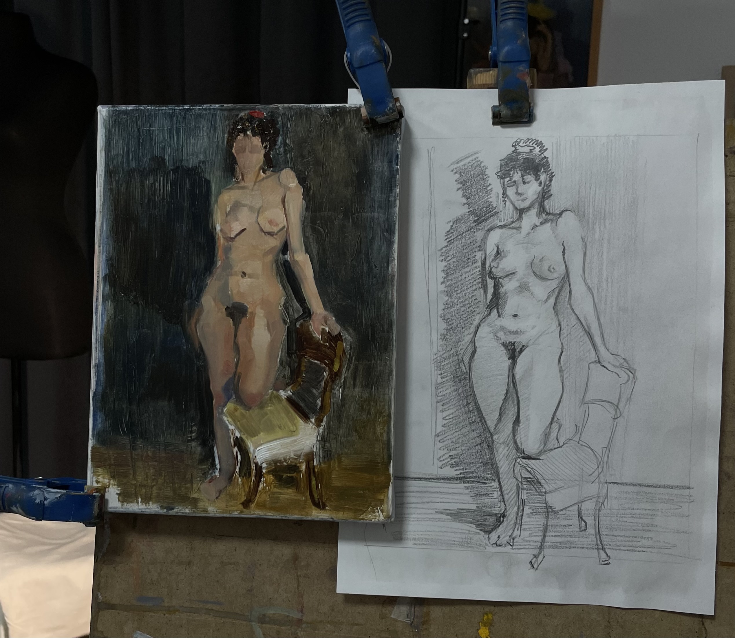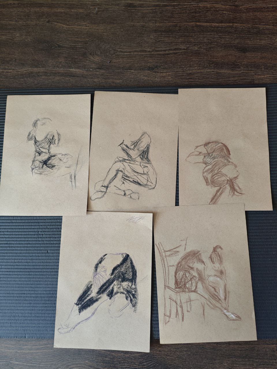 Сегодня пришел на новую постановку, сделал два эскиза. Одно занятие в неделю, итого к концу июня закончу. Сложно передать всю динамику позы, буду делиться результатами
