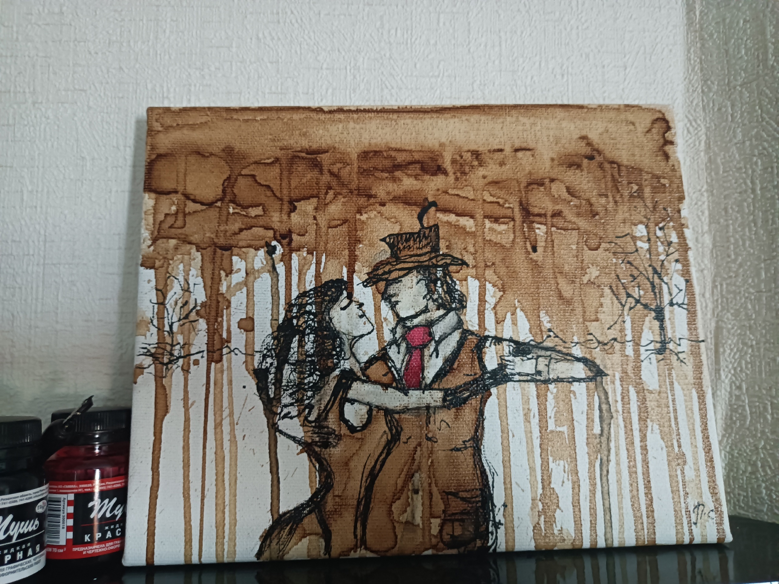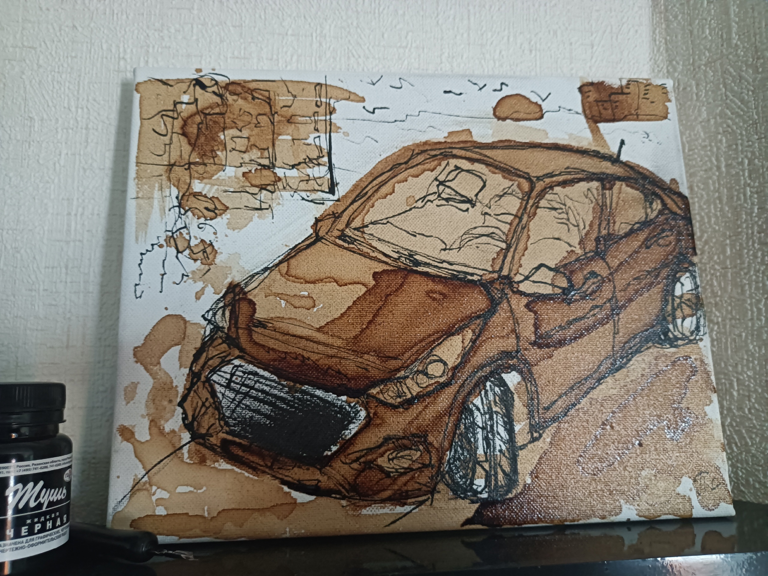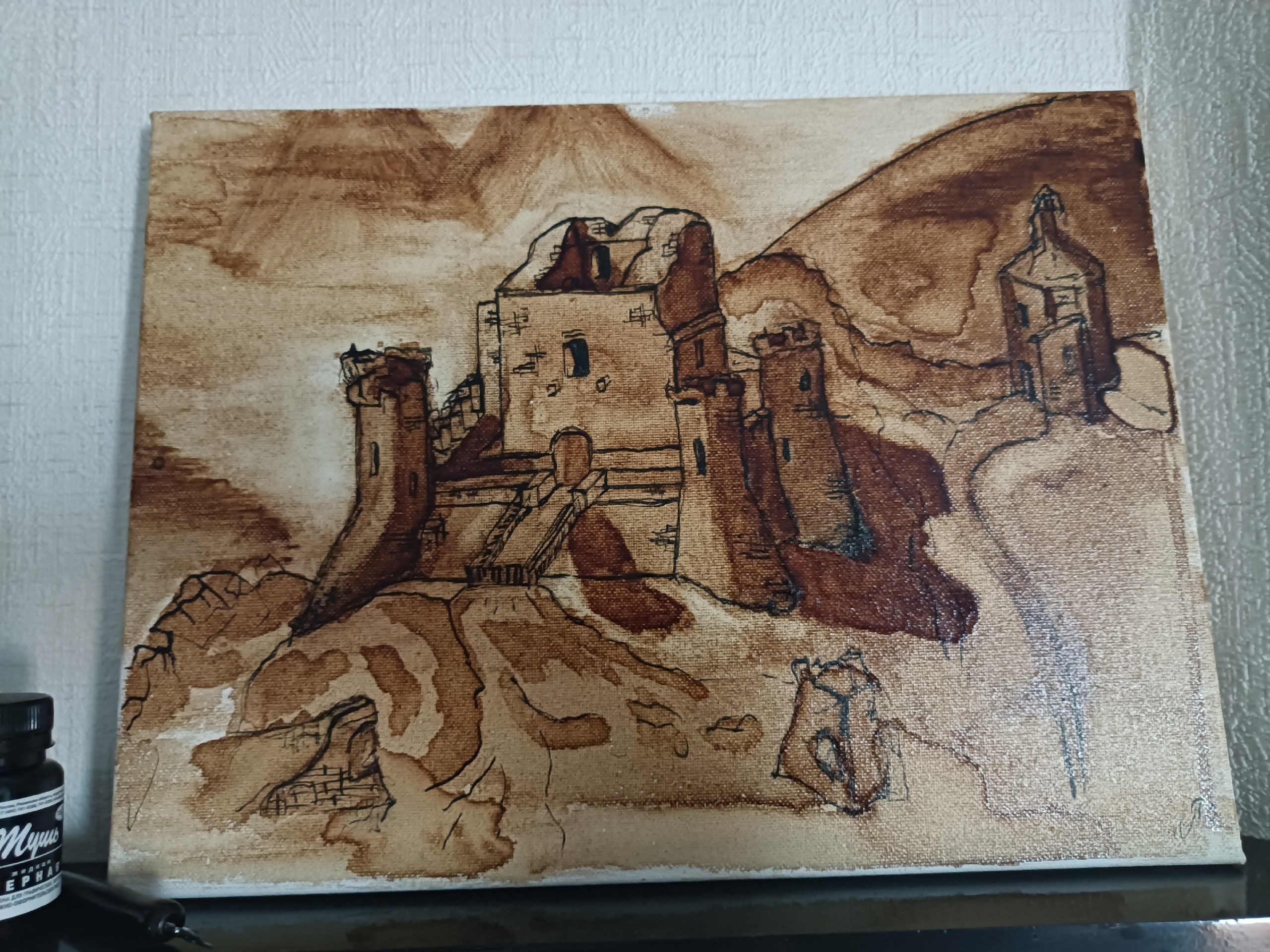 Использую только кофе и тушь черную, царапаю пером, рисовать начал около 2 недель назад, холсты разные 30х40 25х30. Хочу критики, или от тех кто шарит, что я делаю не так, что так? Какая по вашему топ из того что имеем, а какая полный кал?