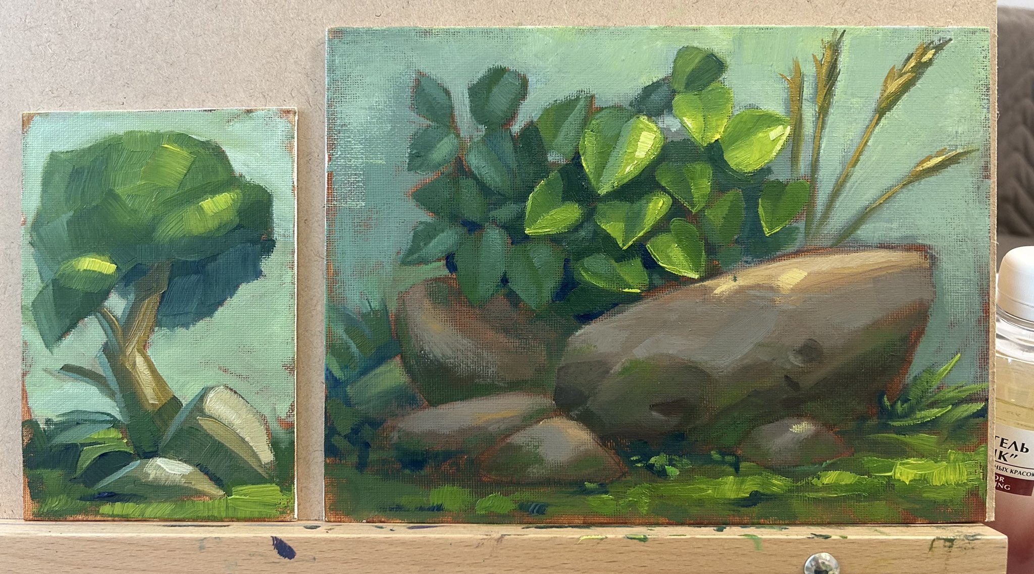 >>917003 Привет >>917017 Я маслом почти не пишу. В основном сиджы. Было трудновато все это намешивать плюс еще в голове сидит дед-препод который мандит на то, что неправильно намешиваю краплаки и кобальты >Как долго работаешь над одной картинкой? Точно не могу сказать, но камни с листьями заняли чуть больше времени мб 2-3 захода по паре часов каждый