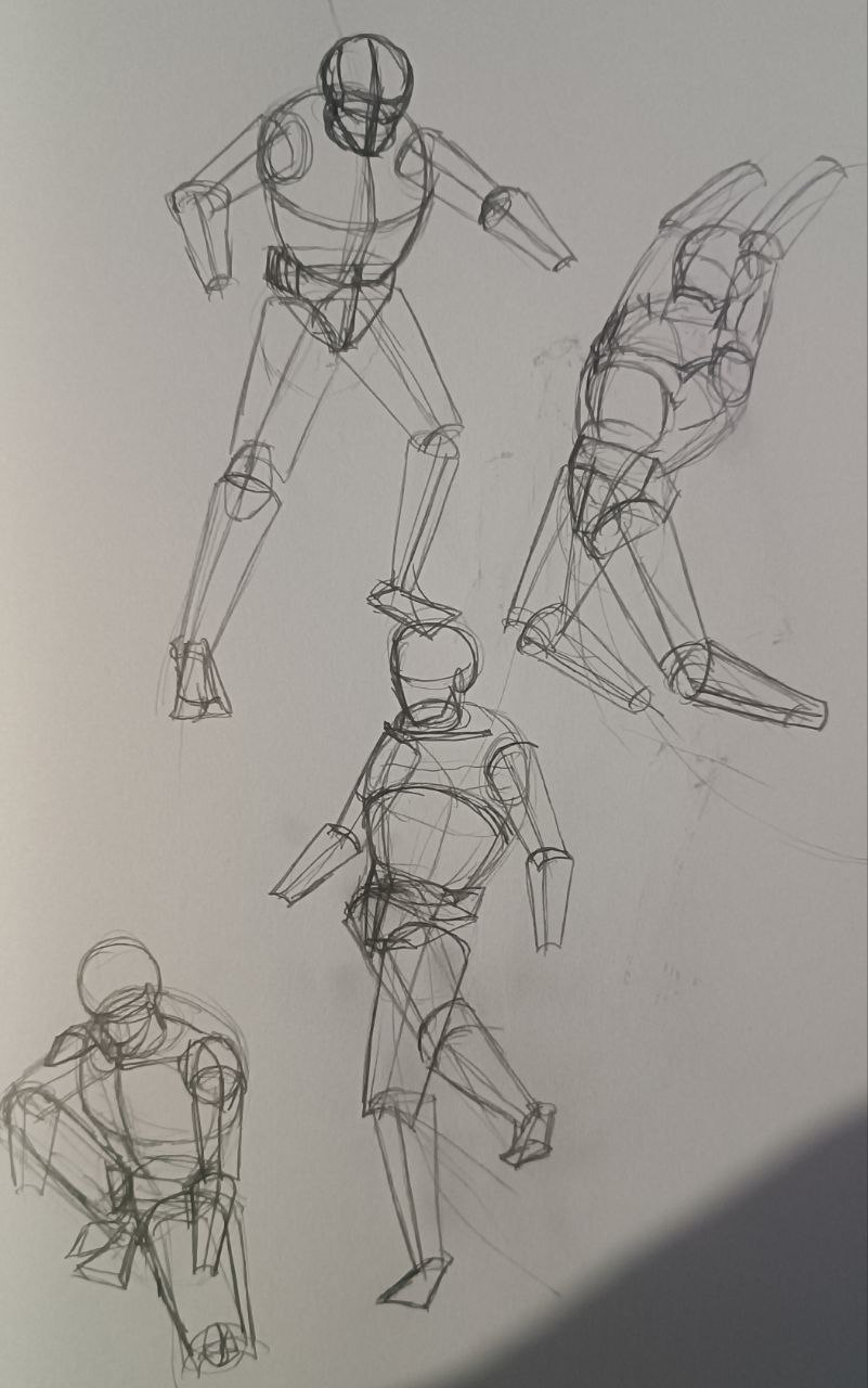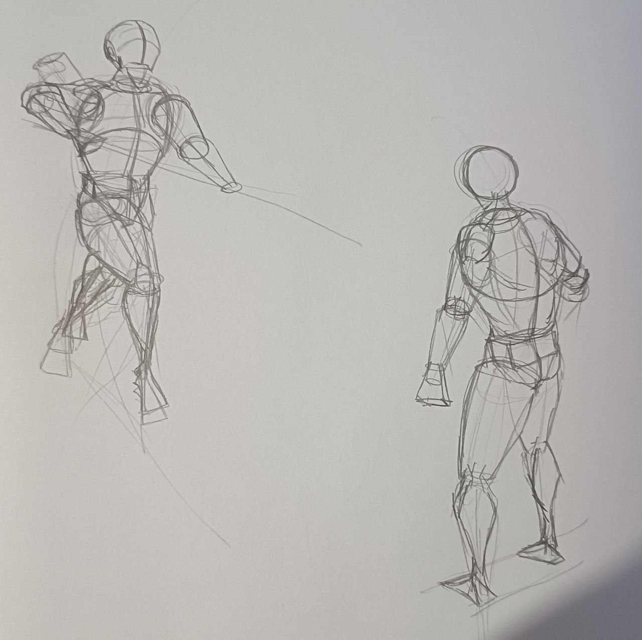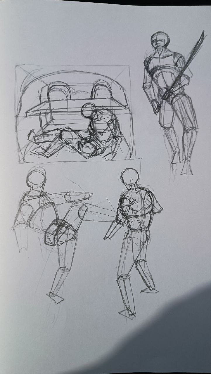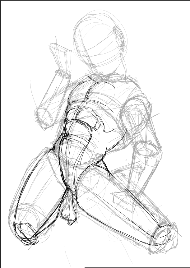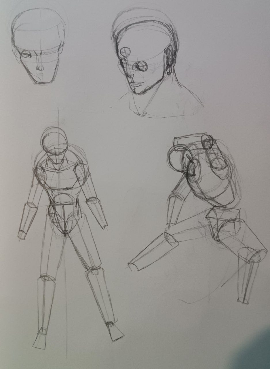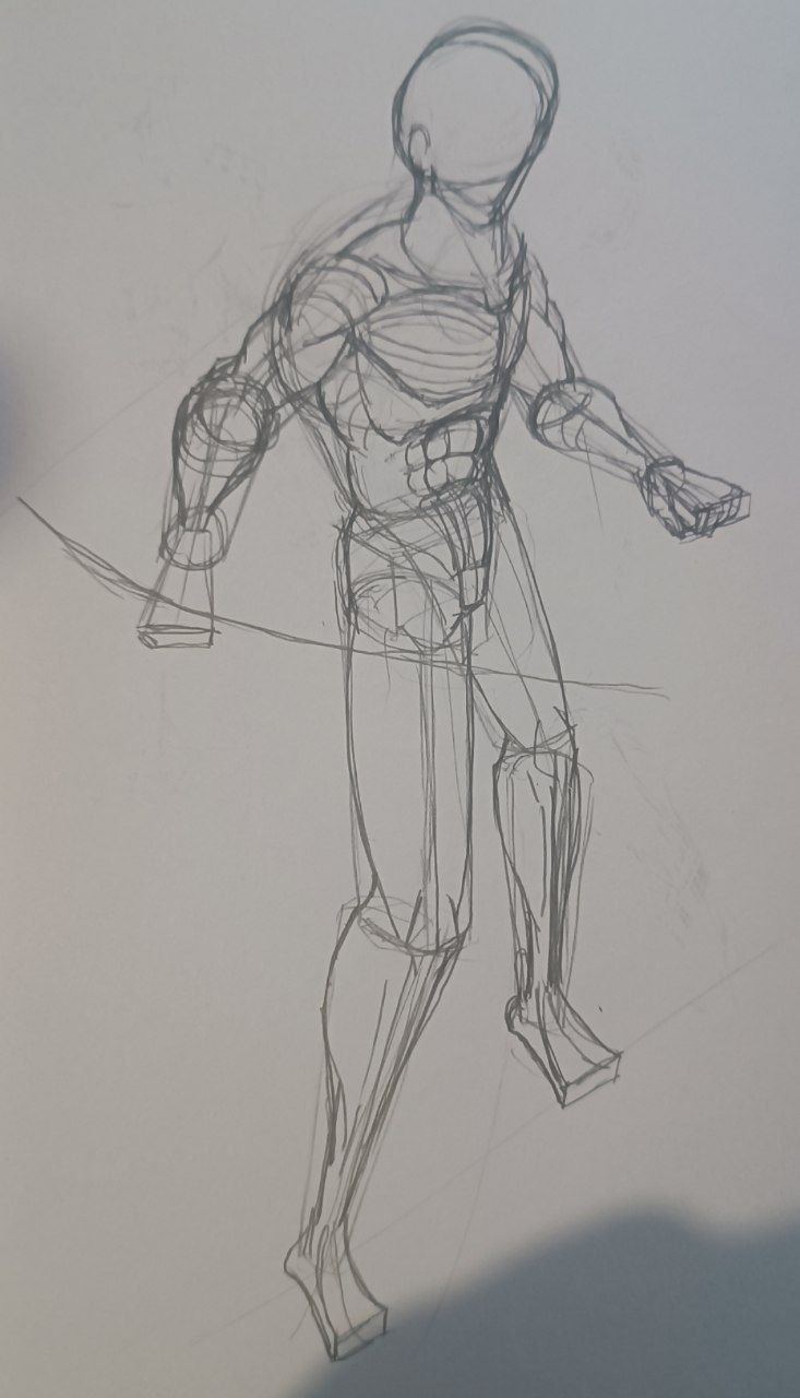 вечером: надо повторить принцип построения из книги Дэвида Росса. надо обратить внимание на пропорции манекенов. надо обратить внимание на поворот манекена в пространстве. мышцы пока не прорисовывать.