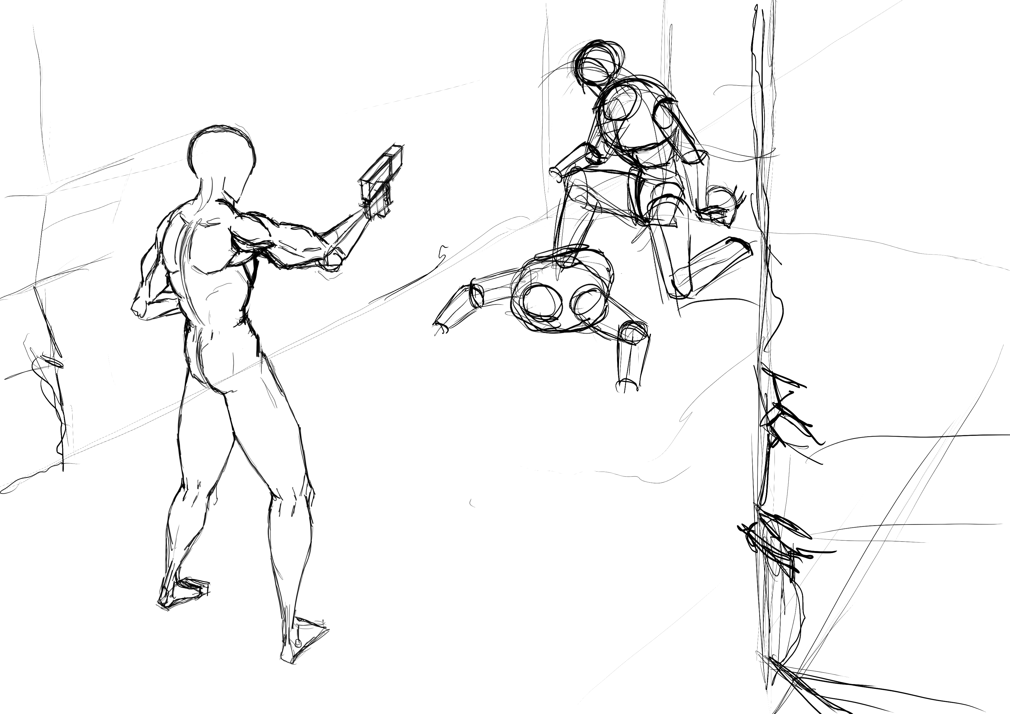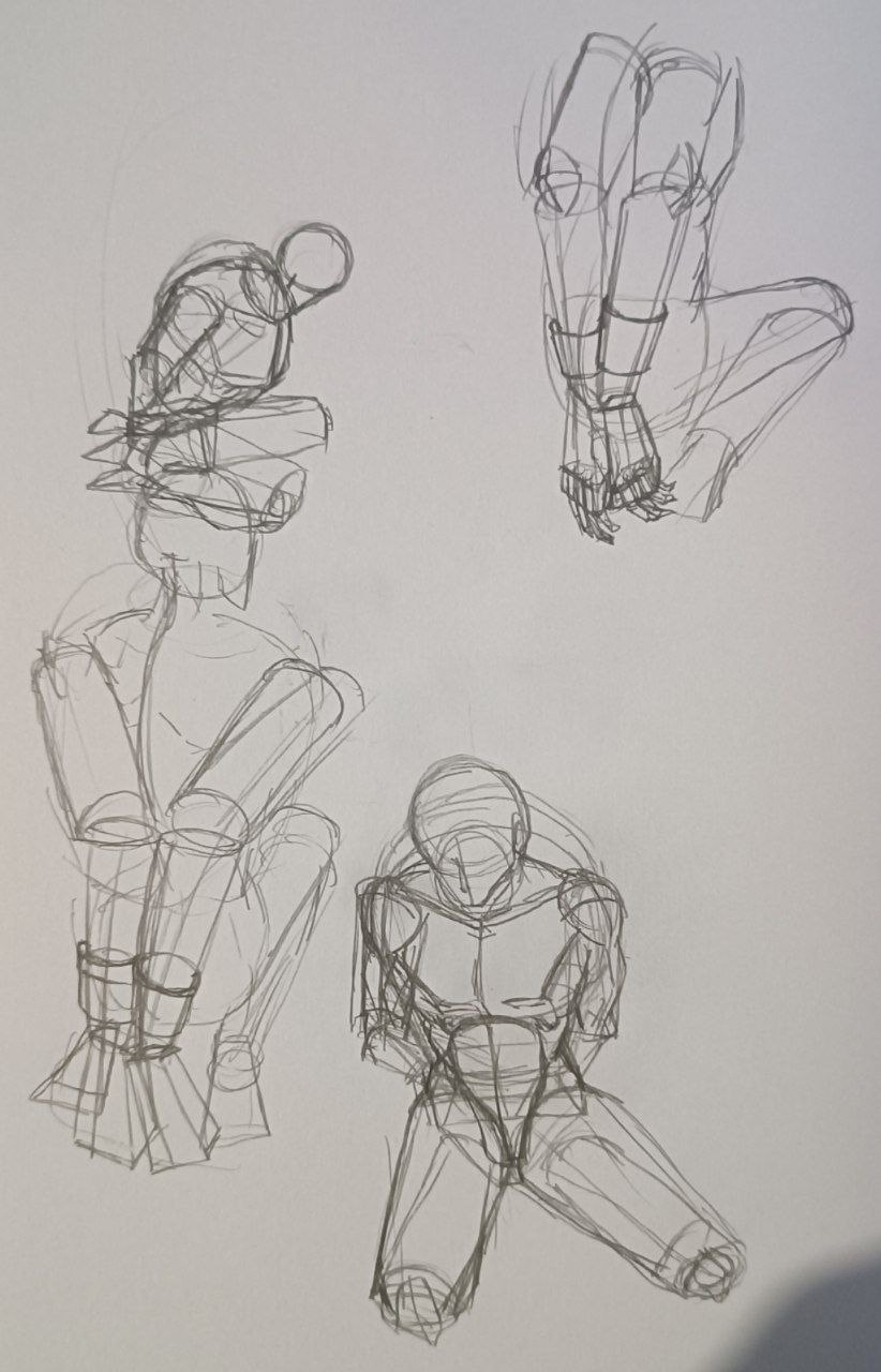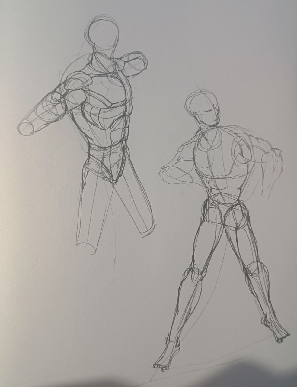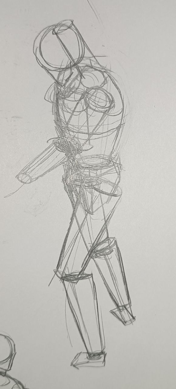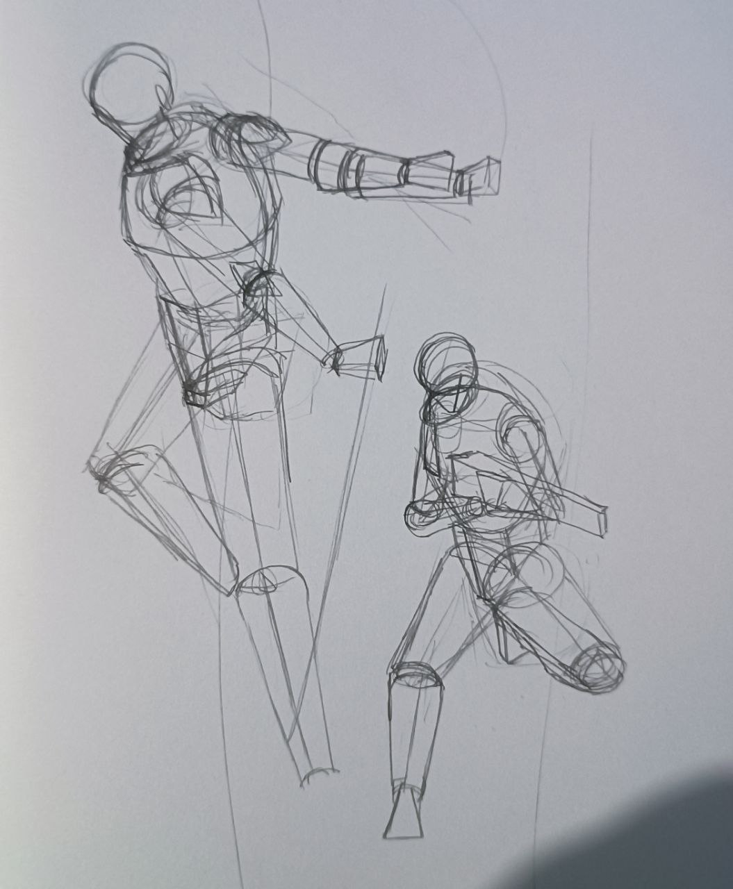 вечером: надо повторить принцип построения из книги Дэвида Росса. надо обратить внимание на пропорции манекенов. надо обратить внимание на поворот манекена в пространстве. мышцы пока не прорисовывать.
