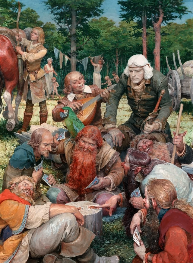 >>931706 Неестественно выгнутый указательный палец у бородатого мужика, держащего палку, на первой иллюстрации, длиннющие стопы у бомжа на третьей, неестественно согнутая в колене нога у лежащего мужика на последней, будто у него колени горизонтально гнутся, а не по вертикали (хотя тут можно отбрехаться и сказать, что сапоги и широки штаны такой эффект создают).