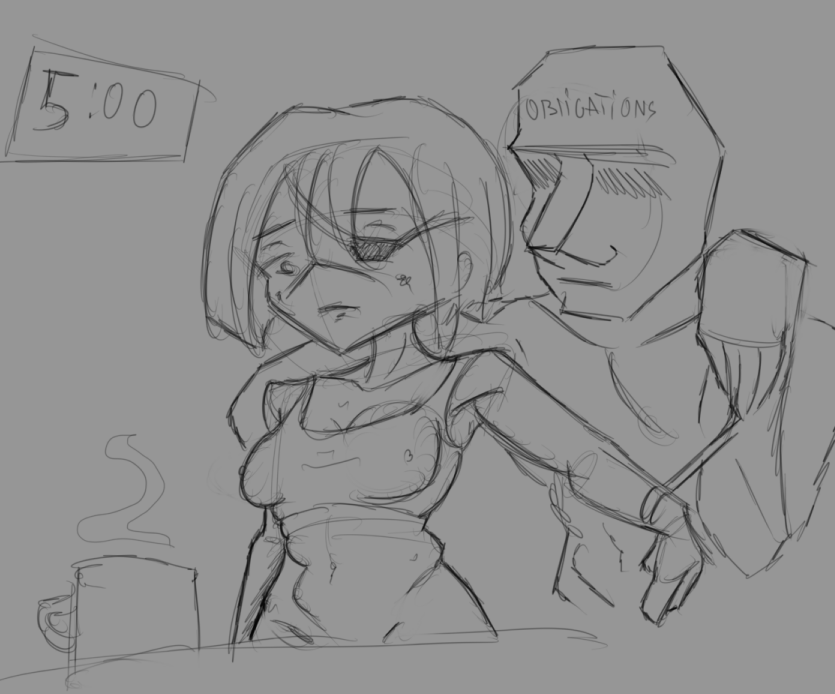 Решил замерить сколько я на самом деле часов рисую за месяц. Думал что по часу в день, а оказалось меньше - всего 24, и даже столько только из-за того что я видел реальную цифру и старался рисовать больше. Сегодня вот 3 часа 48 мин вазюкал. 6 часов не хватает чтобы было 1 час в день в среднем