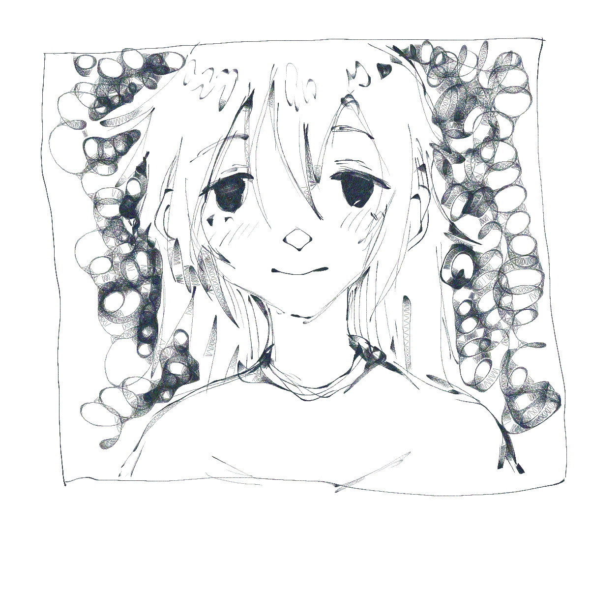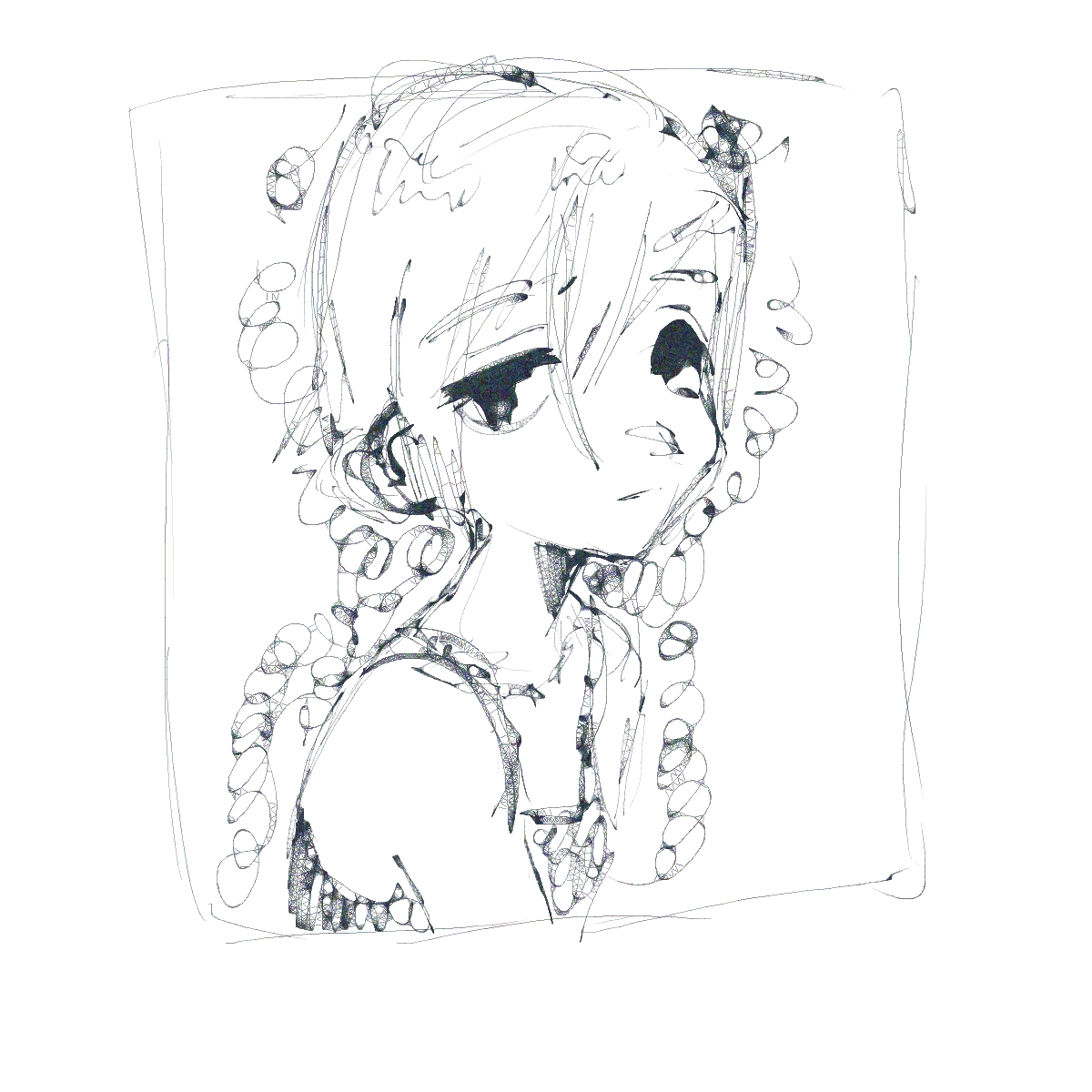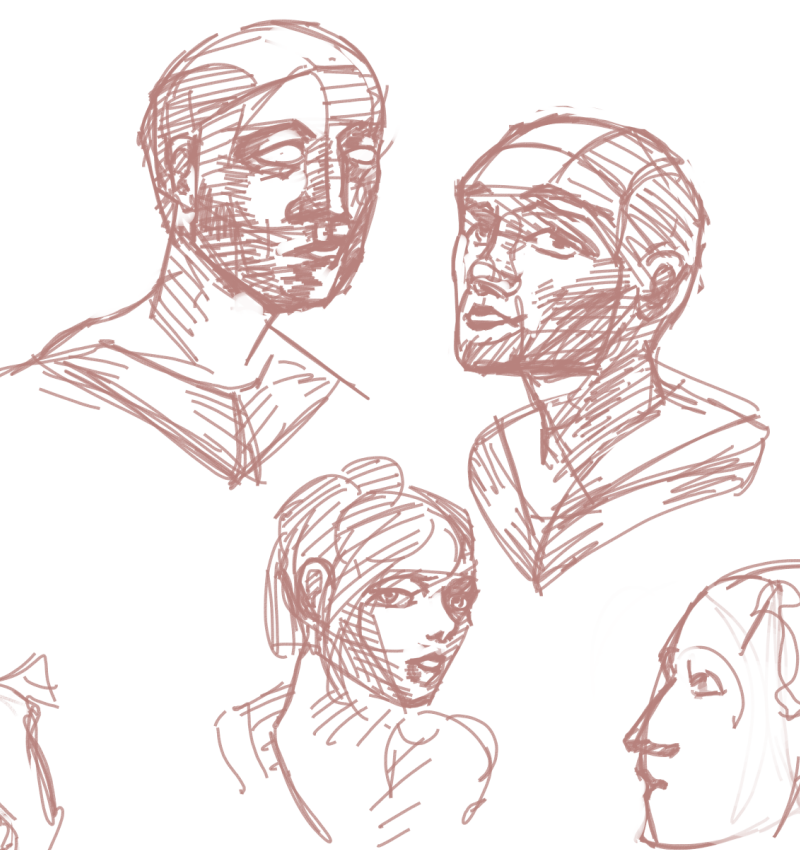 Отчитывается анон с челленджем. День 2. Нашел время и сегодня порисовать в диджитале. Сделал набросок под интересным углом. По задумке она должна была удивится смотря чуть выше. Сразу учитывал перспективу, линии и помнил что волосы должны быть объёмнее. Вроде делал по пропорциям и учитывал плоскость черепа и тд. На выходе получился какой-то пиздец с лопатой вместо лица. Подумал что можно это исправить уменьшив челюсть. Пришлось еще и с кругами немного покопаться.