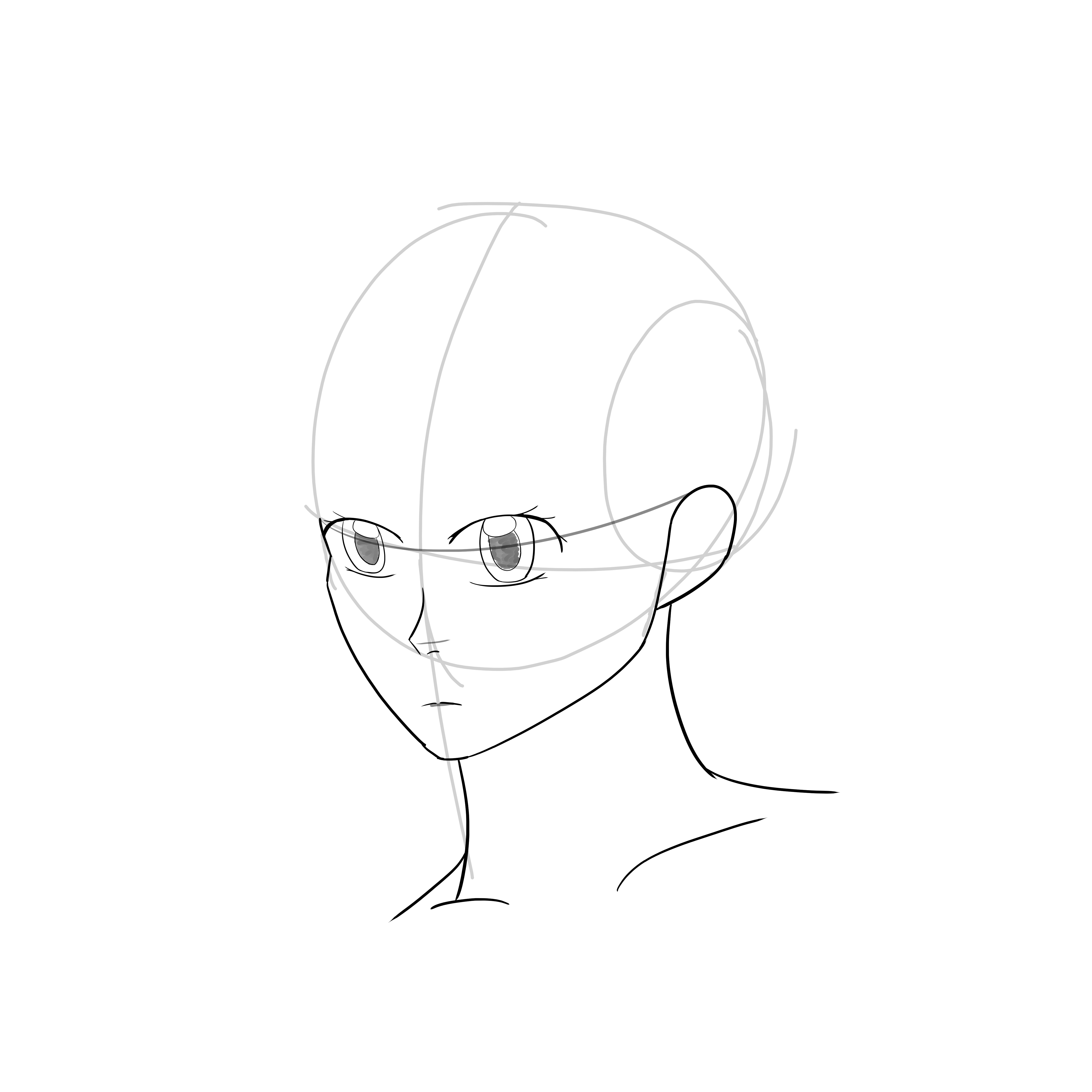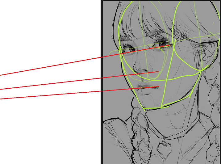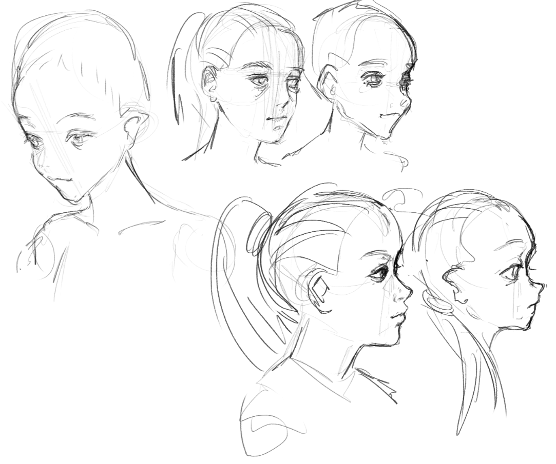 >>906742 Twintails очень плотно на черепе сидят. И направляющие по глазам и бровям изгибаюсь только если рисуем персонажа с поднятой/опущенной головой. Тут на рисунке она держит голову строго прямо