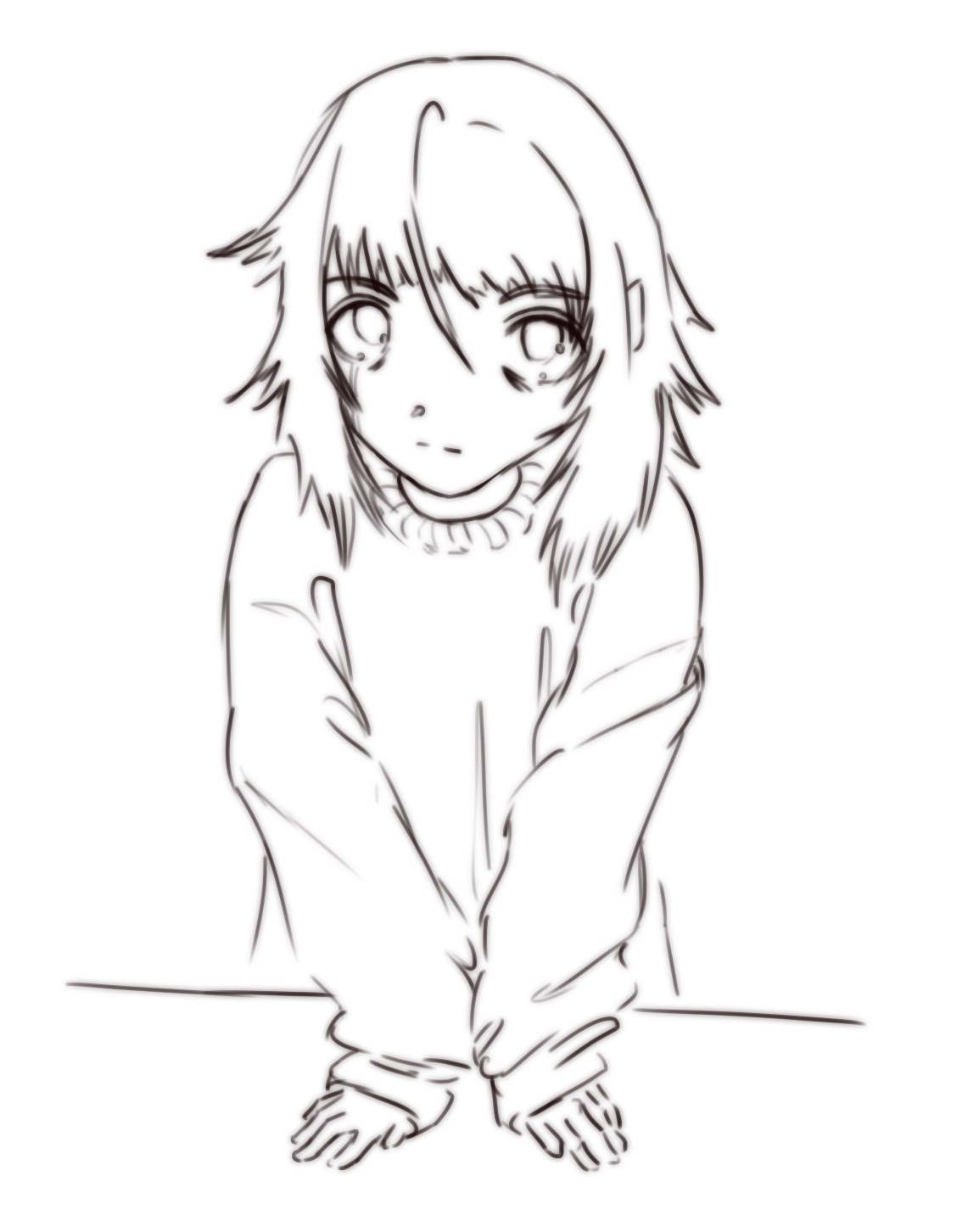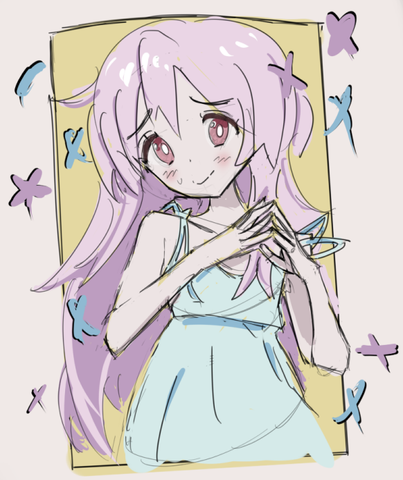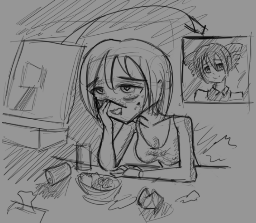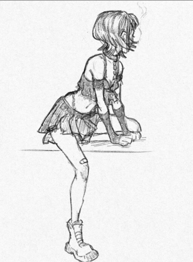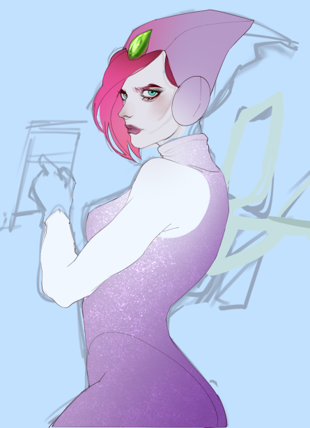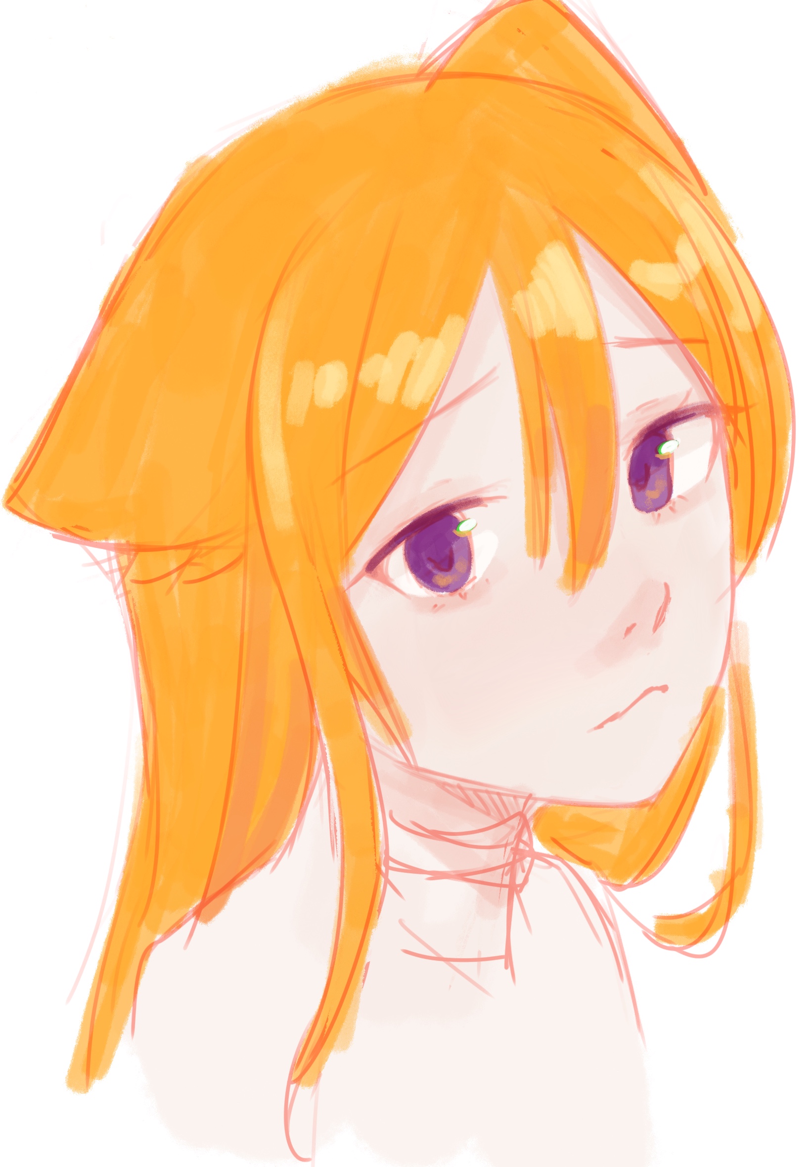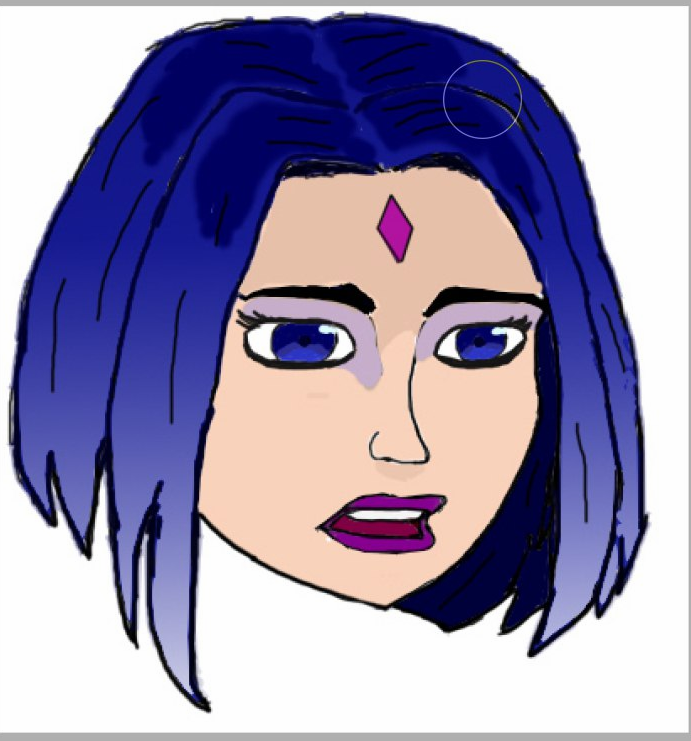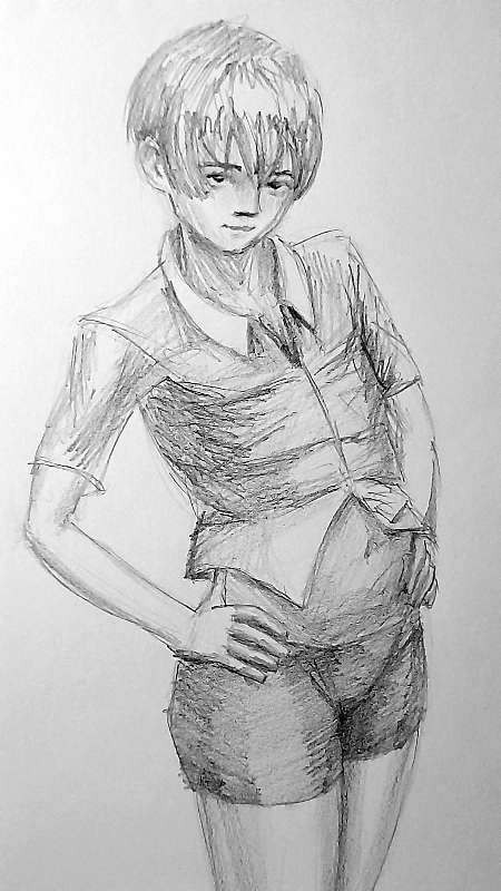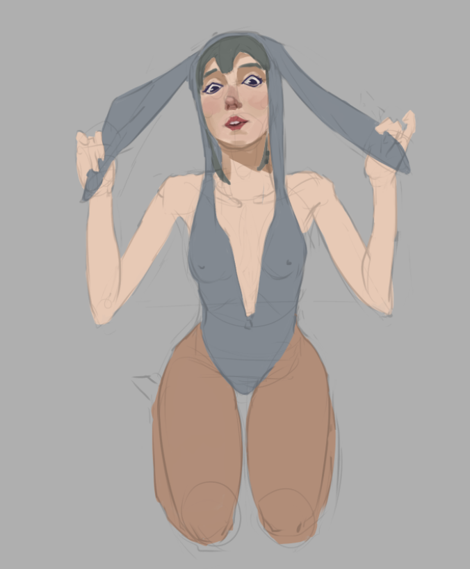 Короче под конец она действительно стала напоминать аниме тянку, но теперь даже я запутался в какой позе она сейчас вообще находится. Толи она смотрит направо чуток наклонясь, толи она просто стоит прямо, но под углом. Челка в этот раз решил нарисовать новую, но и в этот раз она выглядит неправильно.