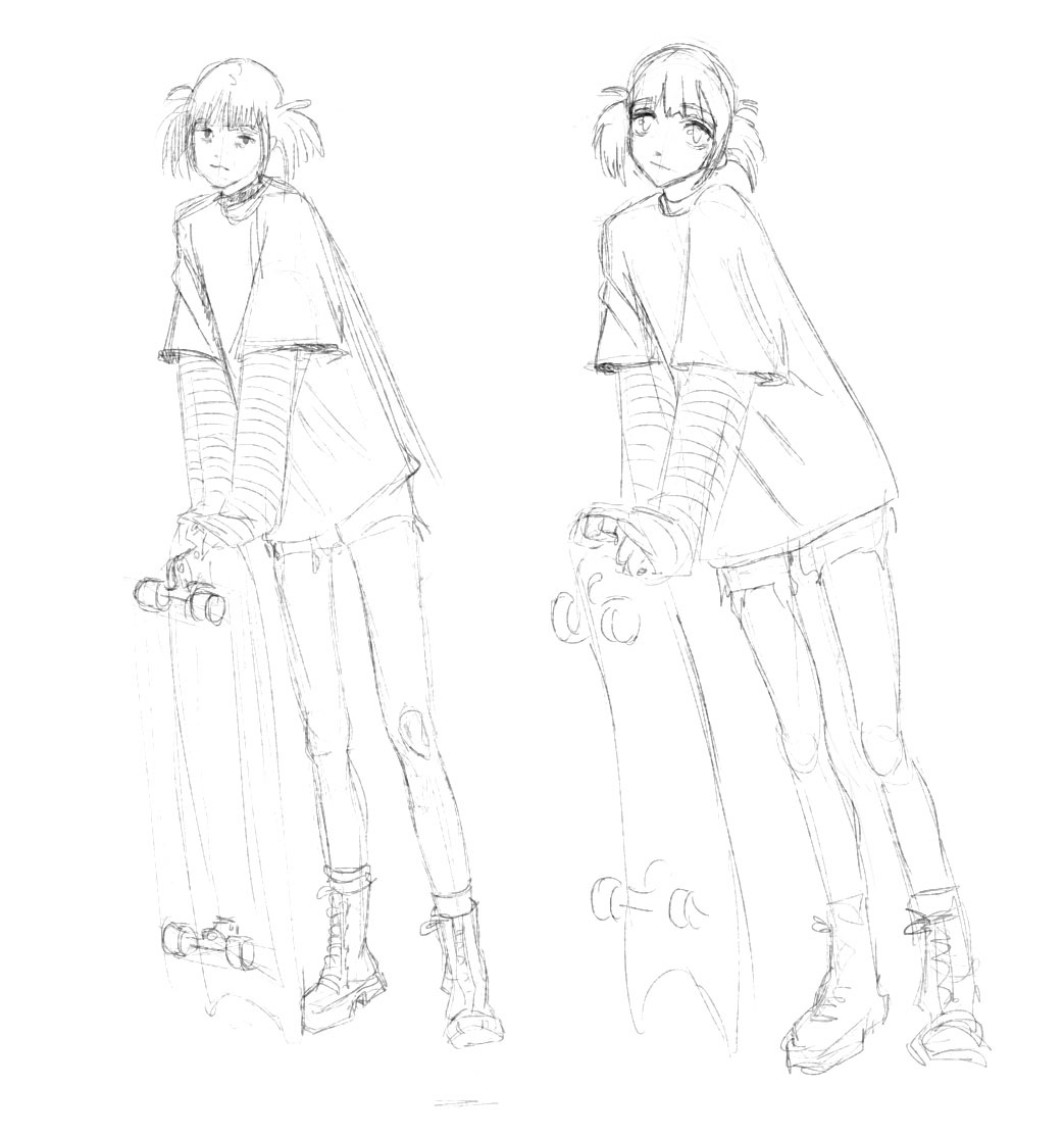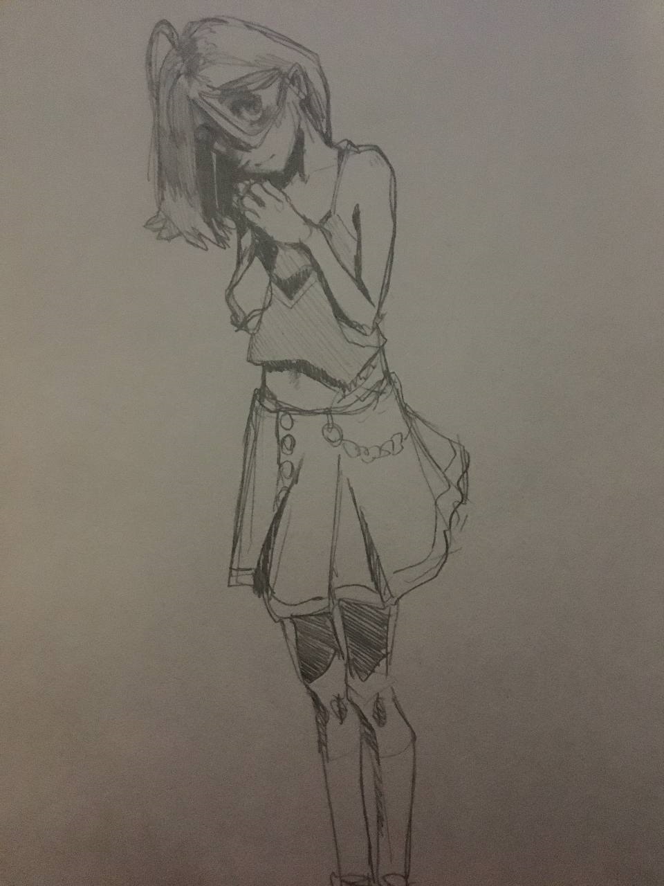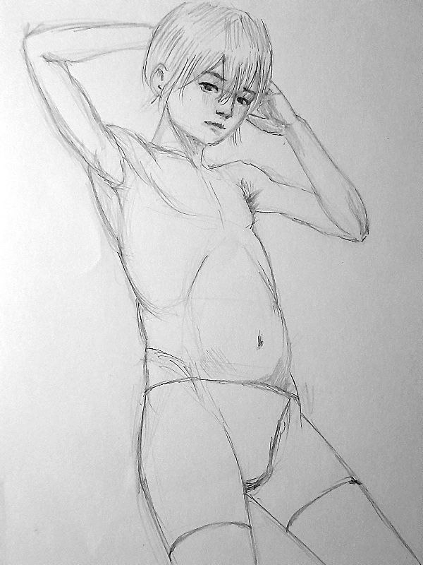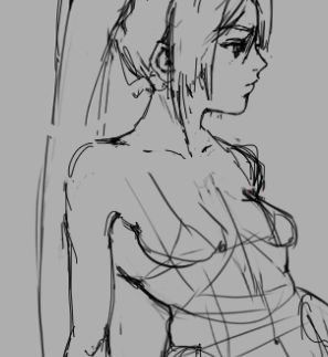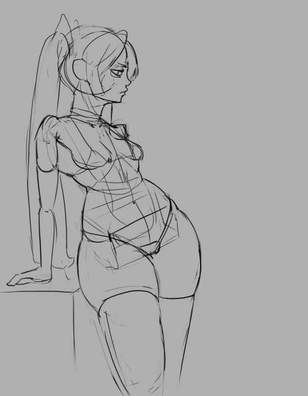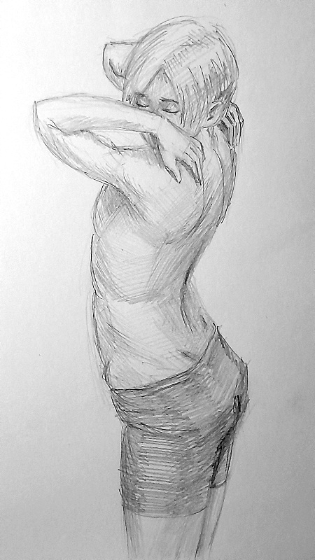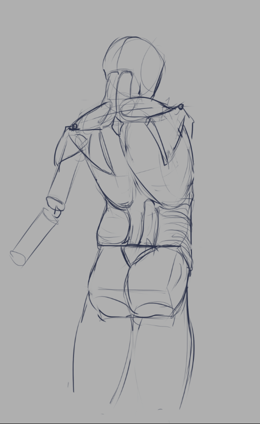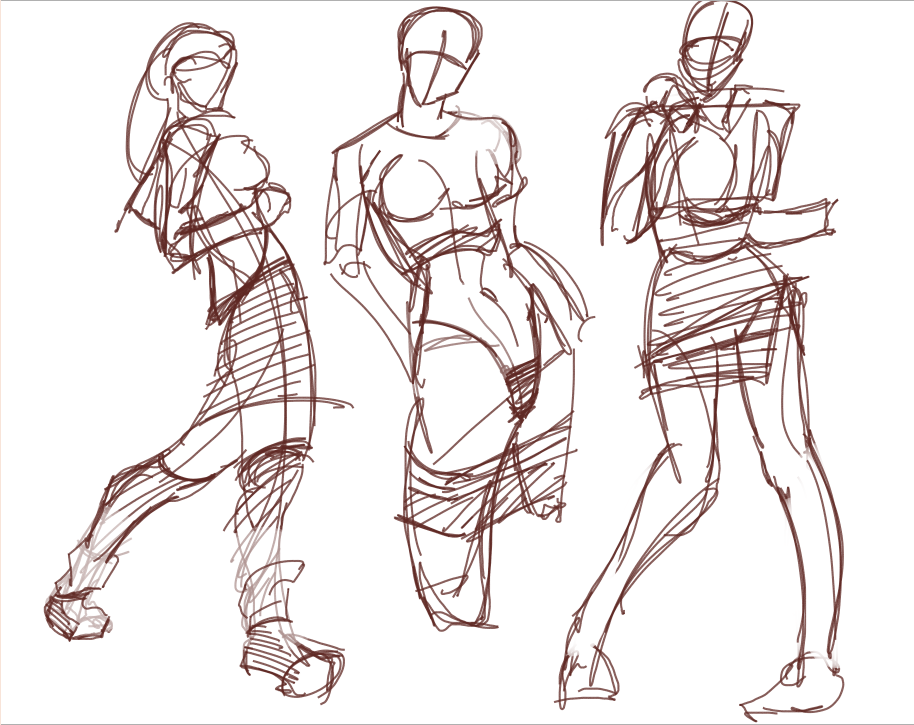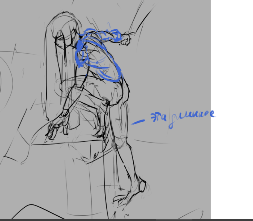 Во-вторых, постарайся всегда на скетче рисовать манекен, а не человека с еблом и прорисованными волосами. Если ты уже умеешь рисовать манекен, покажи как ты это делаешь, не стирай линии.