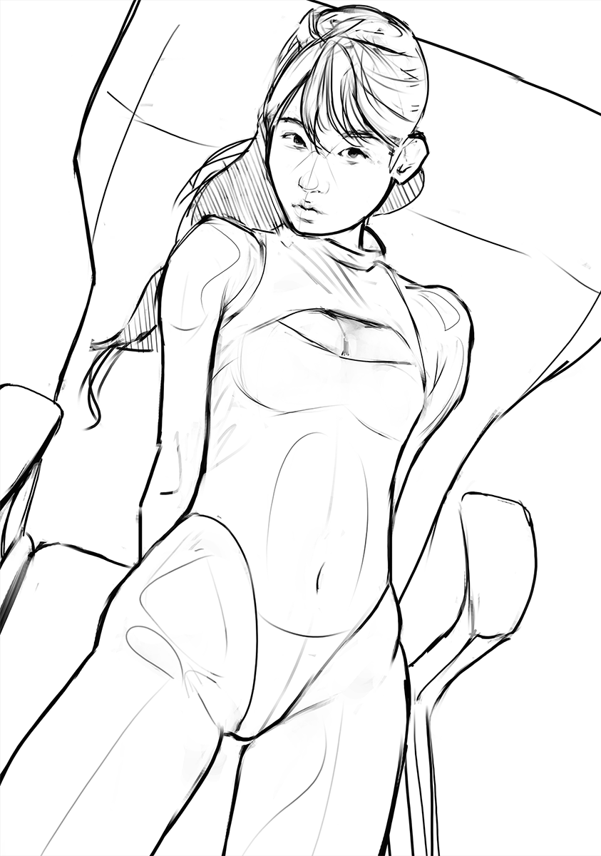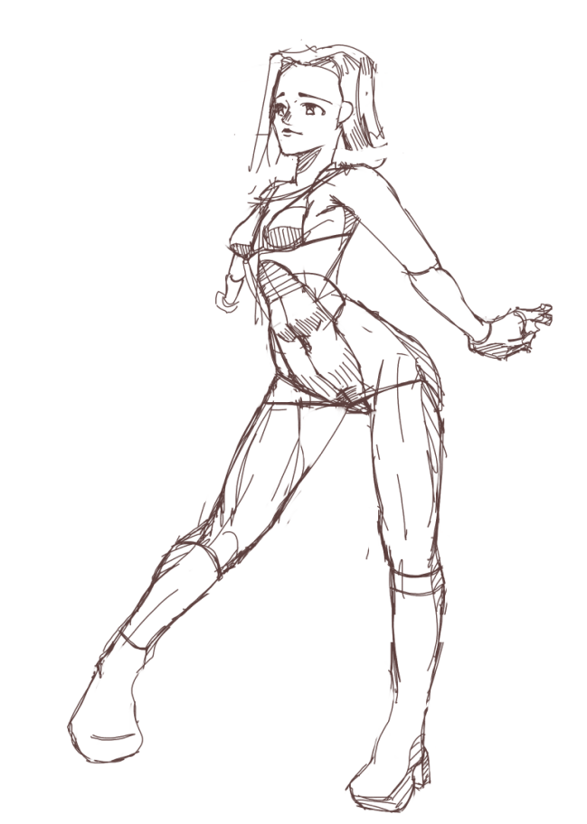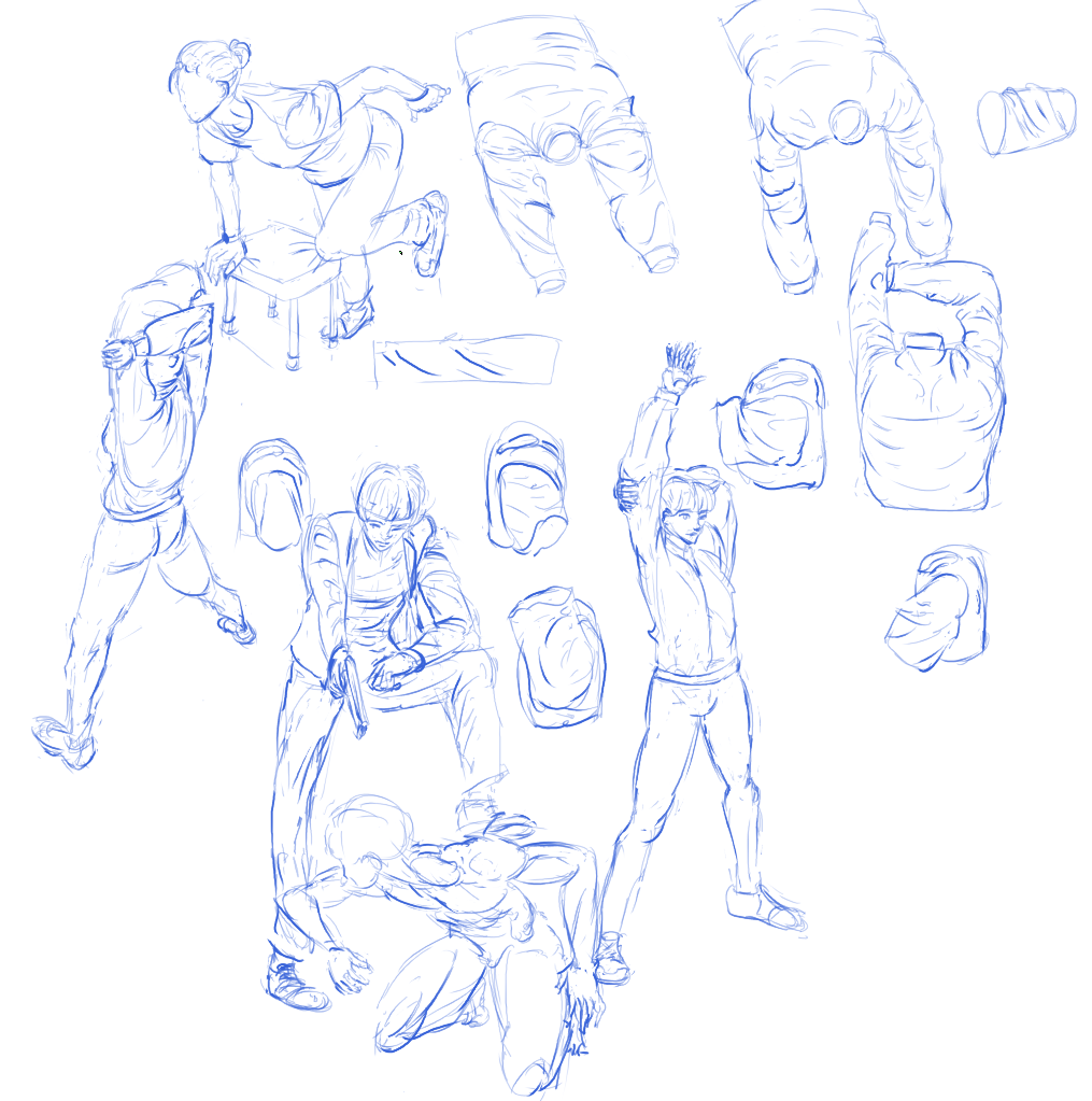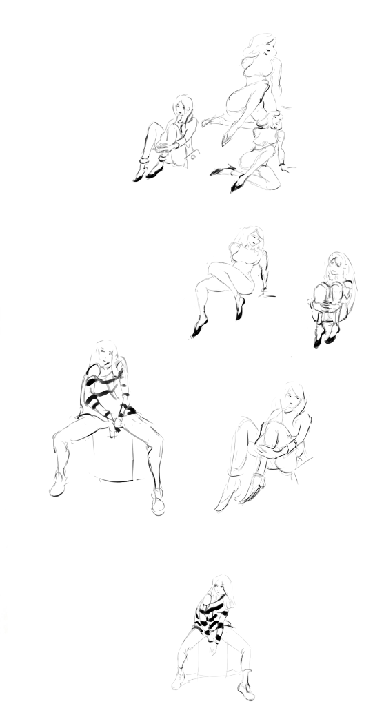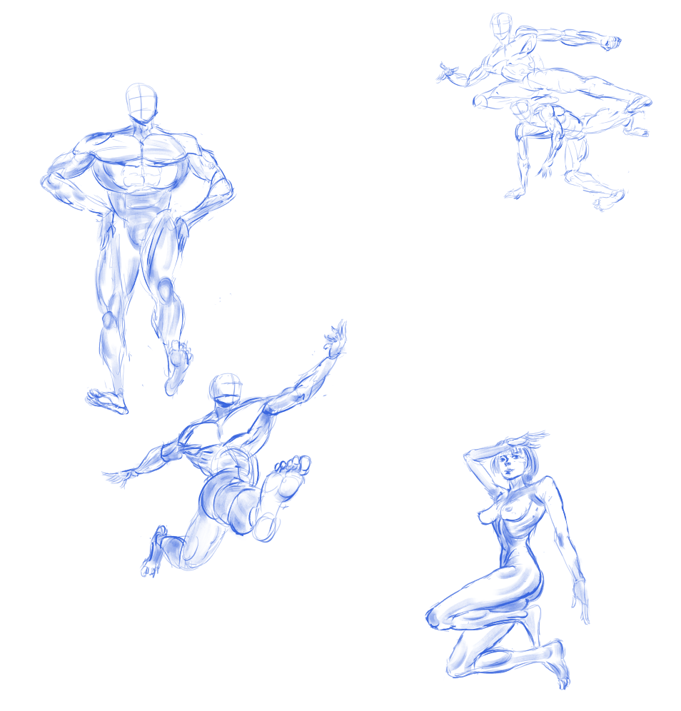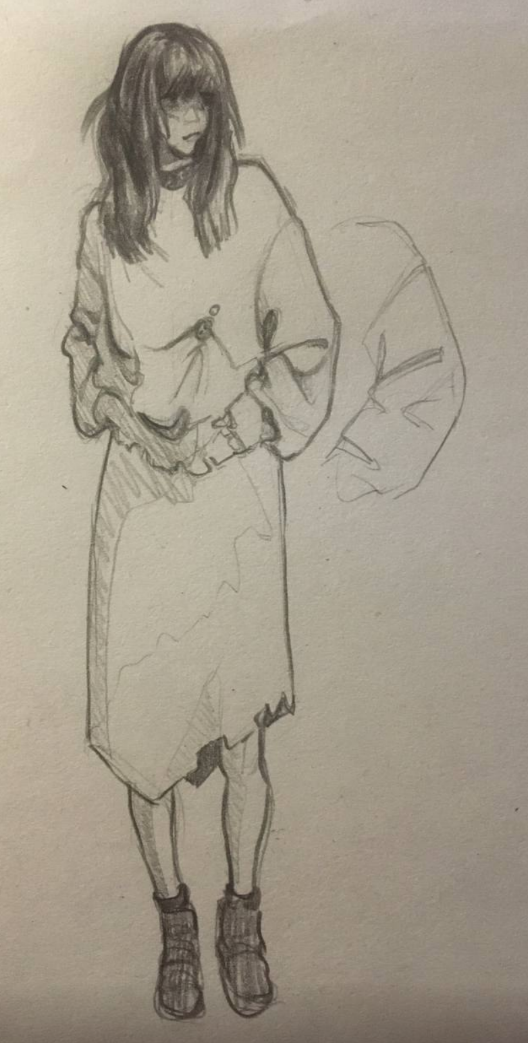 Во-вторых, постарайся всегда на скетче рисовать манекен, а не человека с еблом и прорисованными волосами. Если ты уже умеешь рисовать манекен, покажи как ты это делаешь, не стирай линии.