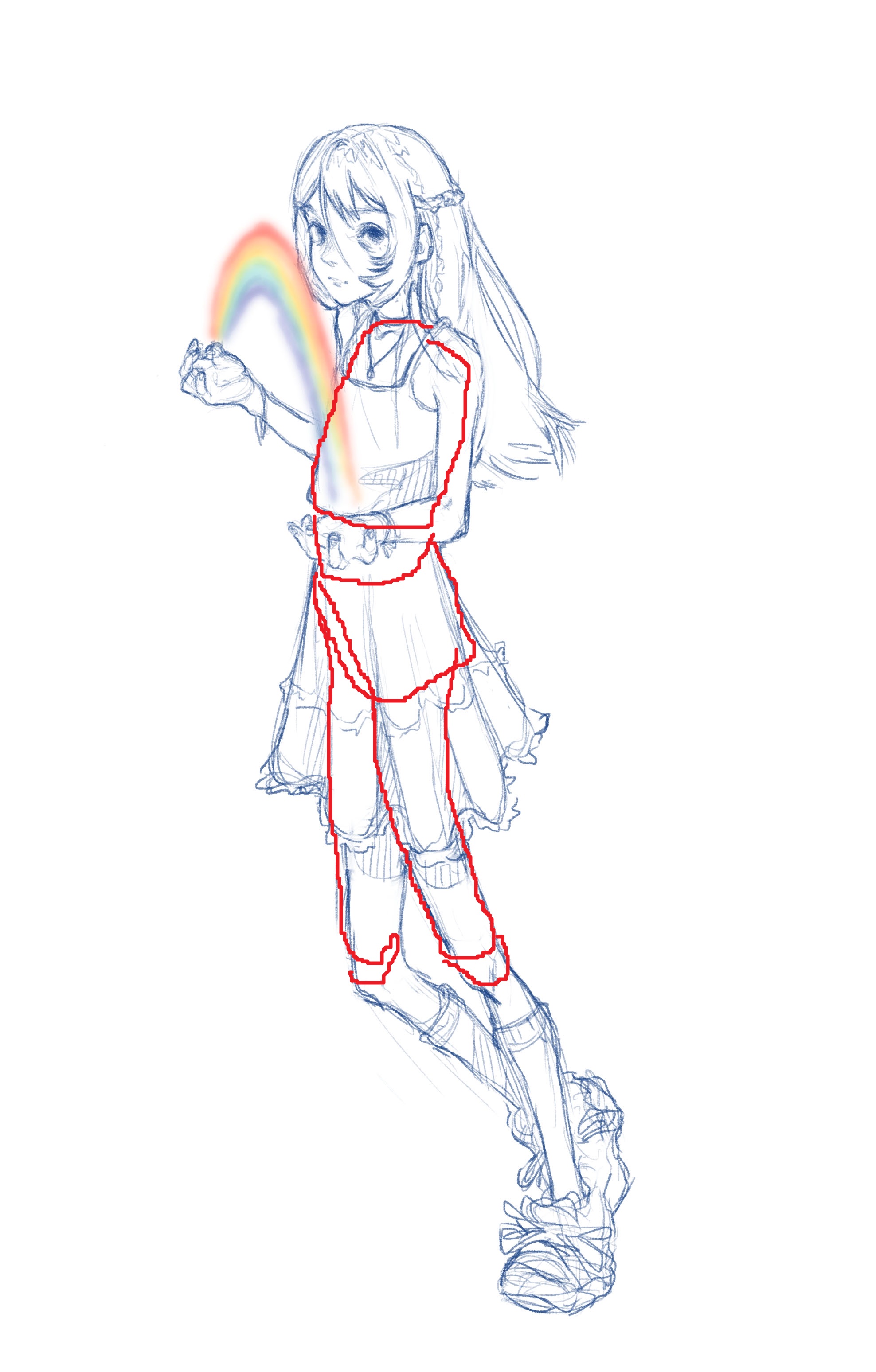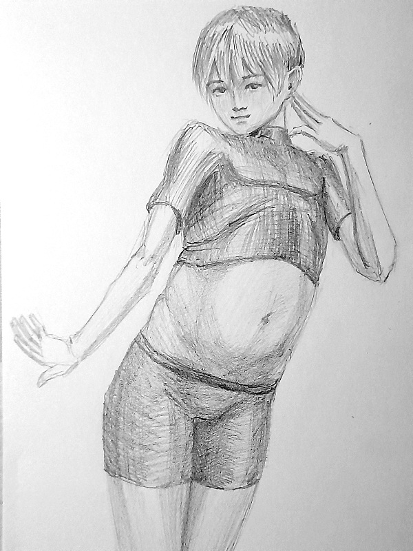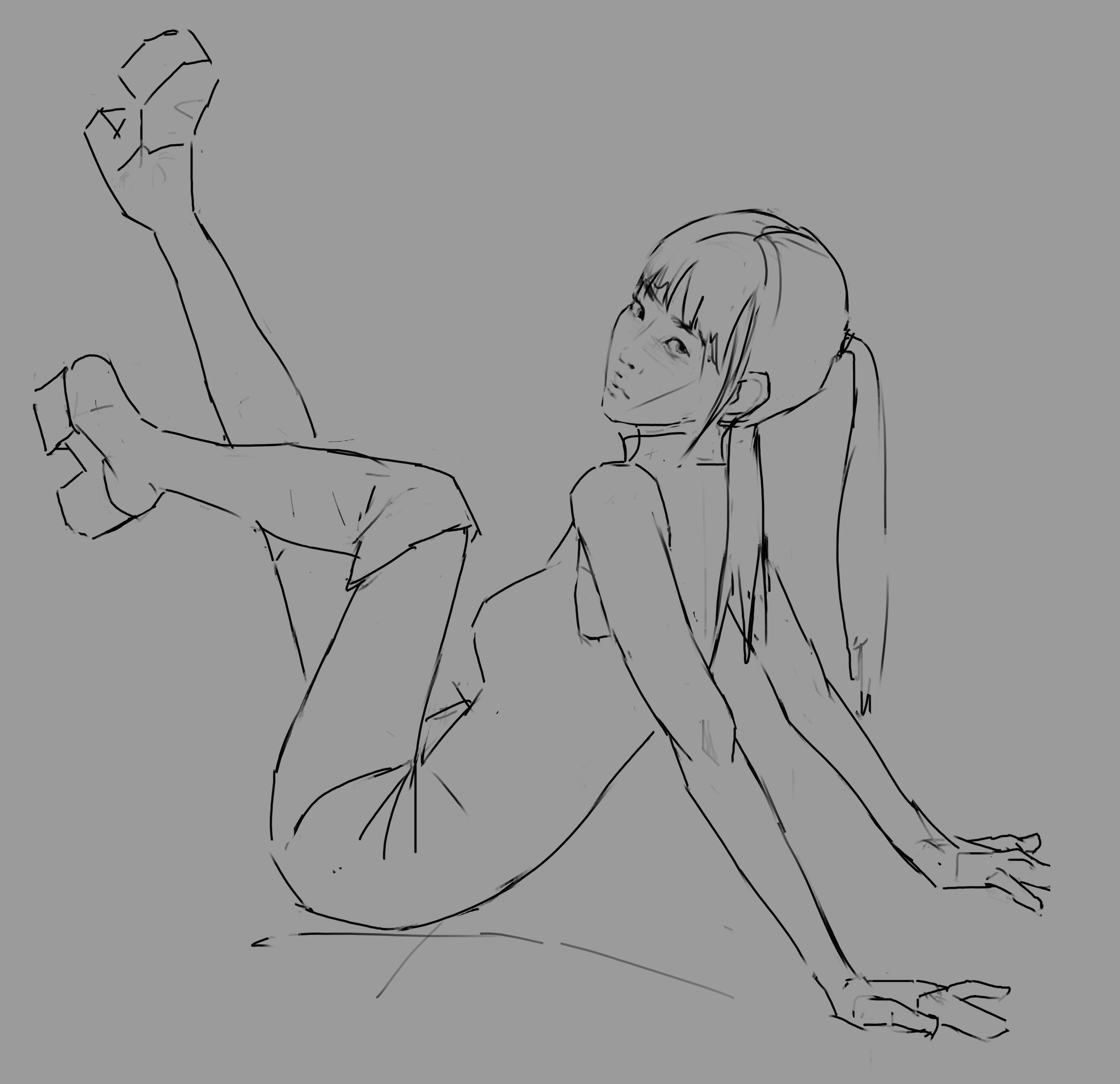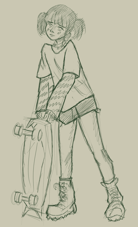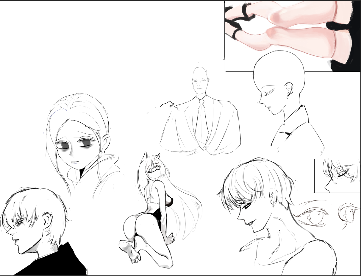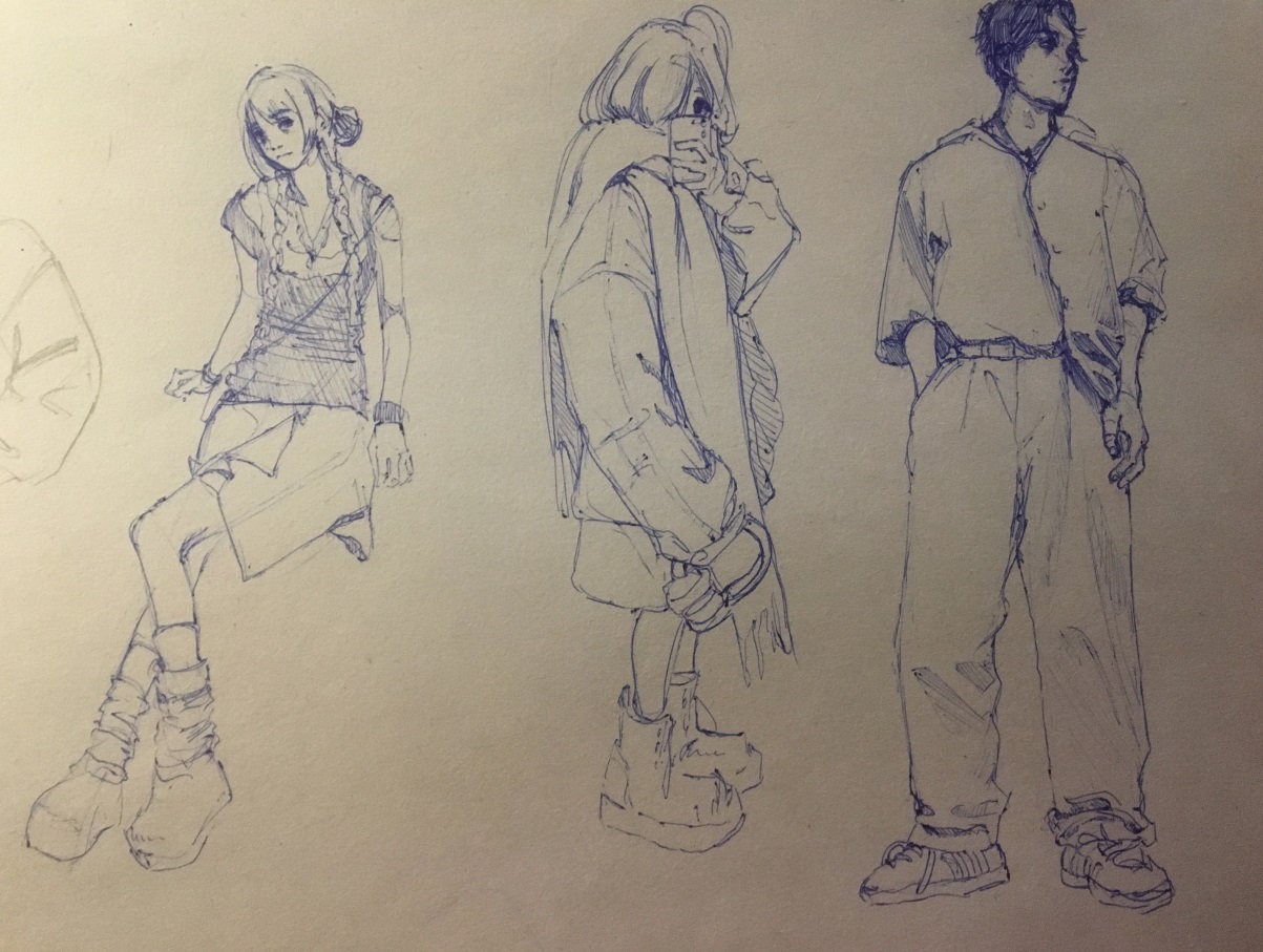 Во-вторых, постарайся всегда на скетче рисовать манекен, а не человека с еблом и прорисованными волосами. Если ты уже умеешь рисовать манекен, покажи как ты это делаешь, не стирай линии.